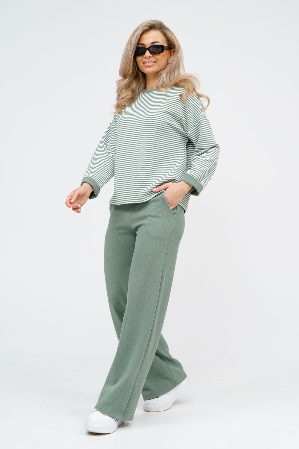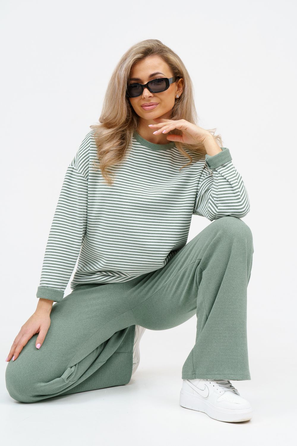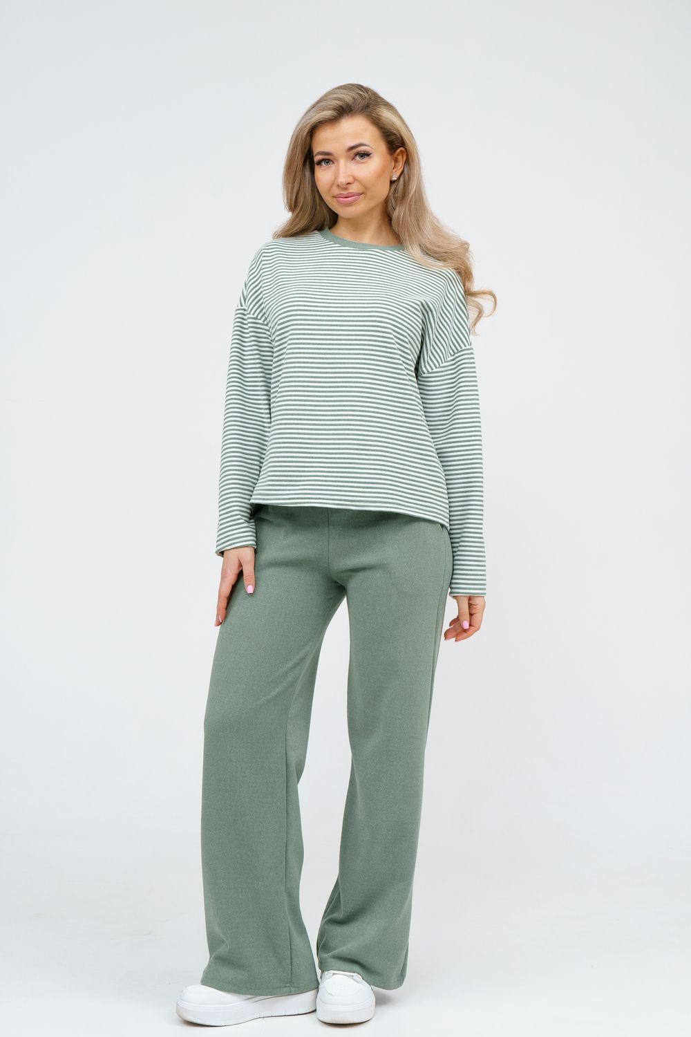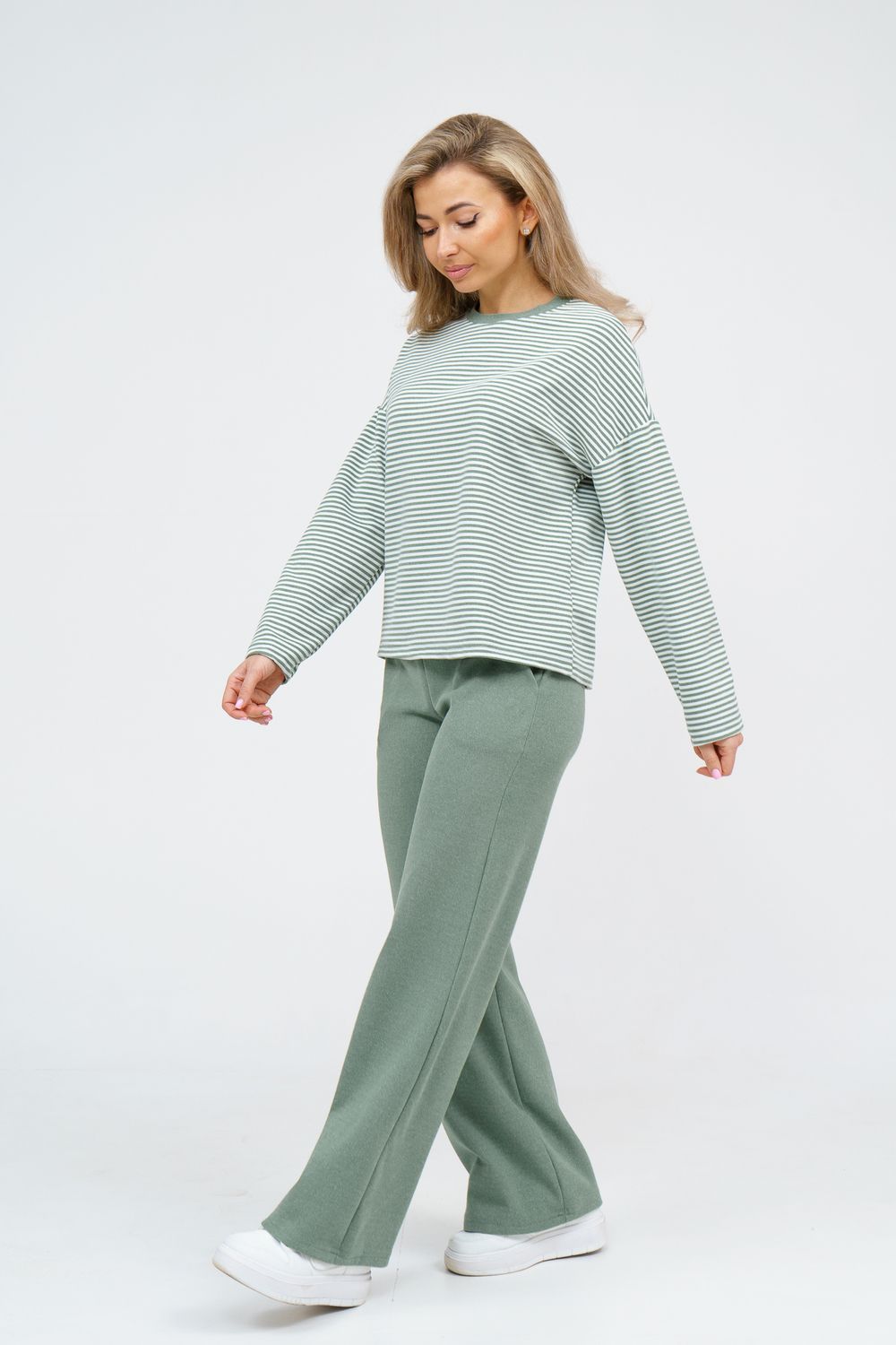 Женский костюм выполнен из двухстороннего флис полара высокого качества. Флис полар - высокотехнологичный материал, прошедшей особую обработку. Ткань отличается высокими теплозащитными свойствами, при этом является дышащей. По своим характеристикам она не уступает шерстяным полотнам. И даже в сыром состоянии удерживает тепло у тела. Материал прочный, эластичный, влагостойкий. Воздухопроницаемая гигроскопичная ткань создает для тела комфортный микроклимат. Материал гипоаллергенный, подходит для изготовления одежды детям, в том числе новорожденным. Изделия из флиса легкие, не мнутся, не деформируются, не вытягиваються.В такой одежде удобно и комфортно. Эластичность материала позволяет легко двигаться. Костюм состоит из лонгслива и брюк. Лонг в стиле OVERSIZE ( одежда свободного кроя ) - это свобода самовыражения, позволяющая чувствовать себя комфортно и стильно одновременно. Горловина футболки выполнена с обтачкой. Линия плеча спущена, длинный рукав. Женские стильные брюки - трубы представлены с вместительными боковыми карманами. Пояс выполнен на специализированной круговой поясной машине, что делает швы ровными и качественными. А профессиональные закрепки на поясе, придают изделию законченный вид и качество. Свободный крой прекрасно будет смотреться на дамах с любыми формами. Костюм такого плана представлен в широкой размерной сетке, что позволяет выбрать его как девушке, так и женщине. Костюм модных расцветок с полосой, будет удачным выбором для поездок в отпуск, на пикник, для школы, для активного отдыха и прогулок по городу. Будет гармонично сочетаться как с кроссовками, так и с ботинками. Используя эту модель в качестве домашнего костюма, Вы поймёте, что это именно тот самый идеальный вариант, в котором будете себя чувствовать удобно, комфортно и современно. Костюм с брюками - это настоящая находка для тех, кто ценит свою индивидуальность!