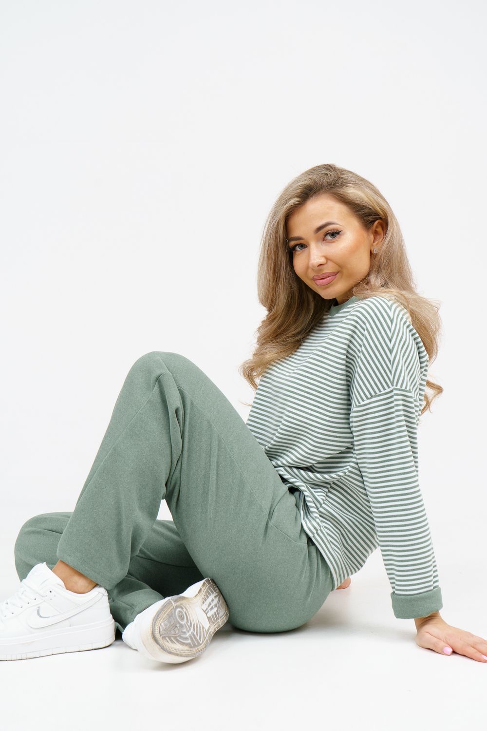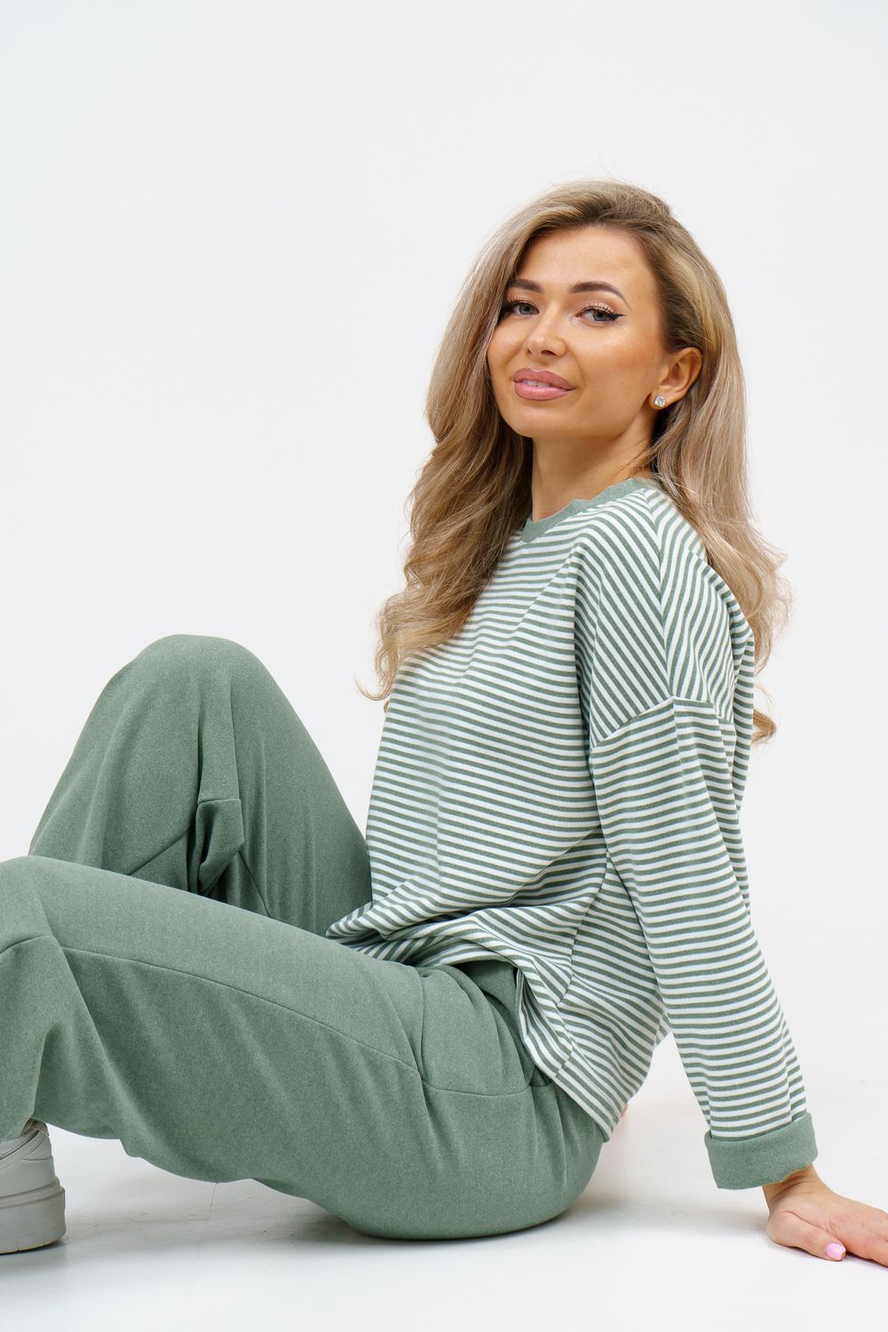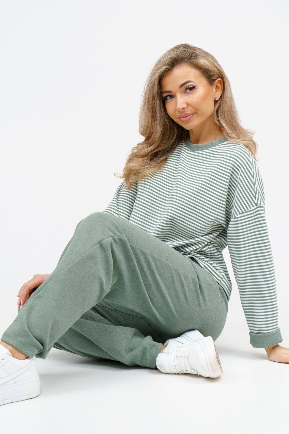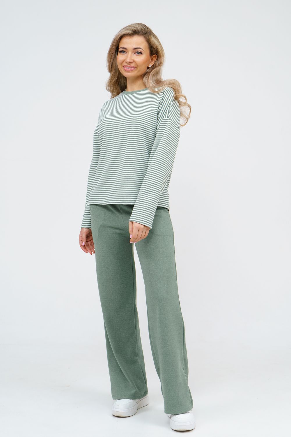 Женский костюм выполнен из двухстороннего флис полара высокого качества. Флис полар - высокотехнологичный материал, прошедшей особую обработку. Ткань отличается высокими теплозащитными свойствами, при этом является дышащей. По своим характеристикам она не уступает шерстяным полотнам. И даже в сыром состоянии удерживает тепло у тела. Материал прочный, эластичный, влагостойкий. Воздухопроницаемая гигроскопичная ткань создает для тела комфортный микроклимат. Материал гипоаллергенный, подходит для изготовления одежды детям, в том числе новорожденным. Изделия из флиса легкие, не мнутся, не деформируются, не вытягиваються.В такой одежде удобно и комфортно. Эластичность материала позволяет легко двигаться. Костюм состоит из лонгслива и брюк. Лонг в стиле OVERSIZE ( одежда свободного кроя ) - это свобода самовыражения, позволяющая чувствовать себя комфортно и стильно одновременно. Горловина футболки выполнена с обтачкой. Линия плеча спущена, длинный рукав. Женские стильные брюки - трубы представлены с вместительными боковыми карманами. Пояс выполнен на специализированной круговой поясной машине, что делает швы ровными и качественными. А профессиональные закрепки на поясе, придают изделию законченный вид и качество. Свободный крой прекрасно будет смотреться на дамах с любыми формами. Костюм такого плана представлен в широкой размерной сетке, что позволяет выбрать его как девушке, так и женщине. Костюм модных расцветок с полосой, будет удачным выбором для поездок в отпуск, на пикник, для школы, для активного отдыха и прогулок по городу. Будет гармонично сочетаться как с кроссовками, так и с ботинками. Используя эту модель в качестве домашнего костюма, Вы поймёте, что это именно тот самый идеальный вариант, в котором будете себя чувствовать удобно, комфортно и современно. Костюм с брюками - это настоящая находка для тех, кто ценит свою индивидуальность!