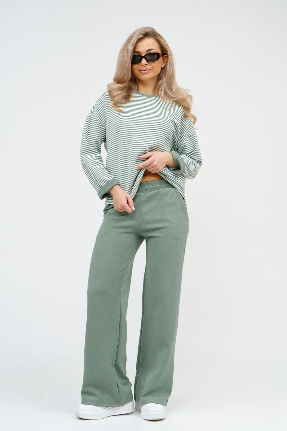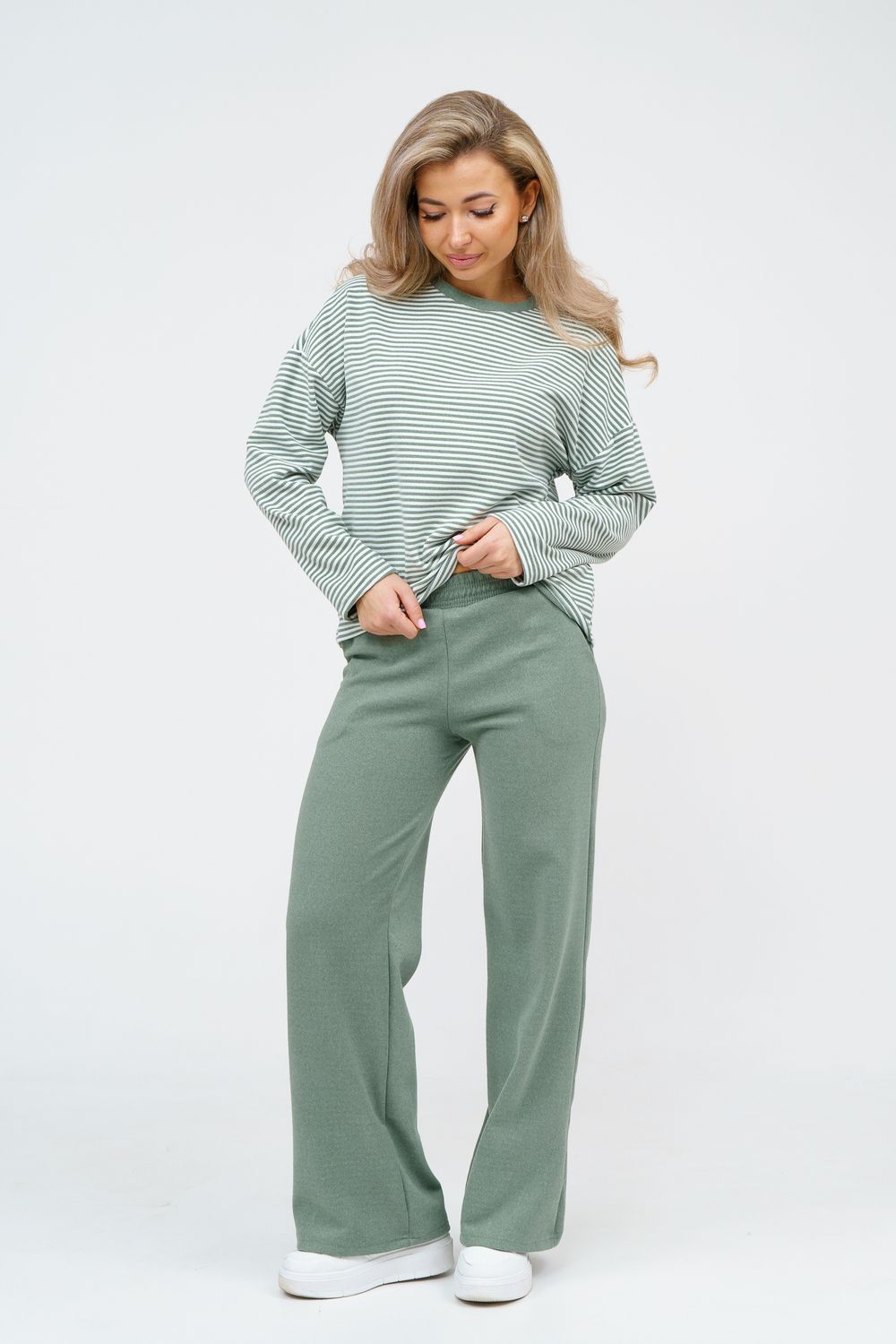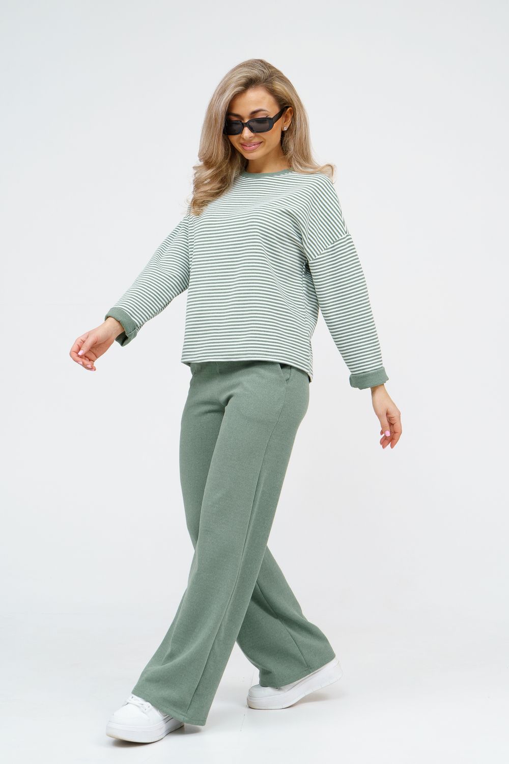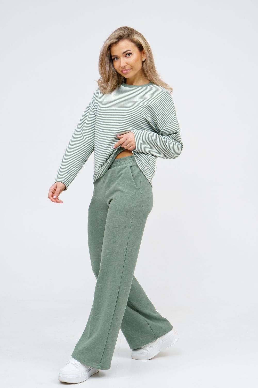 Женский костюм выполнен из двухстороннего флис полара высокого качества. Флис полар - высокотехнологичный материал, прошедшей особую обработку. Ткань отличается высокими теплозащитными свойствами, при этом является дышащей. По своим характеристикам она не уступает шерстяным полотнам. И даже в сыром состоянии удерживает тепло у тела. Материал прочный, эластичный, влагостойкий. Воздухопроницаемая гигроскопичная ткань создает для тела комфортный микроклимат. Материал гипоаллергенный, подходит для изготовления одежды детям, в том числе новорожденным. Изделия из флиса легкие, не мнутся, не деформируются, не вытягиваються.В такой одежде удобно и комфортно. Эластичность материала позволяет легко двигаться. Костюм состоит из лонгслива и брюк. Лонг в стиле OVERSIZE ( одежда свободного кроя ) - это свобода самовыражения, позволяющая чувствовать себя комфортно и стильно одновременно. Горловина футболки выполнена с обтачкой. Линия плеча спущена, длинный рукав. Женские стильные брюки - трубы представлены с вместительными боковыми карманами. Пояс выполнен на специализированной круговой поясной машине, что делает швы ровными и качественными. А профессиональные закрепки на поясе, придают изделию законченный вид и качество. Свободный крой прекрасно будет смотреться на дамах с любыми формами. Костюм такого плана представлен в широкой размерной сетке, что позволяет выбрать его как девушке, так и женщине. Костюм модных расцветок с полосой, будет удачным выбором для поездок в отпуск, на пикник, для школы, для активного отдыха и прогулок по городу. Будет гармонично сочетаться как с кроссовками, так и с ботинками. Используя эту модель в качестве домашнего костюма, Вы поймёте, что это именно тот самый идеальный вариант, в котором будете себя чувствовать удобно, комфортно и современно. Костюм с брюками - это настоящая находка для тех, кто ценит свою индивидуальность!