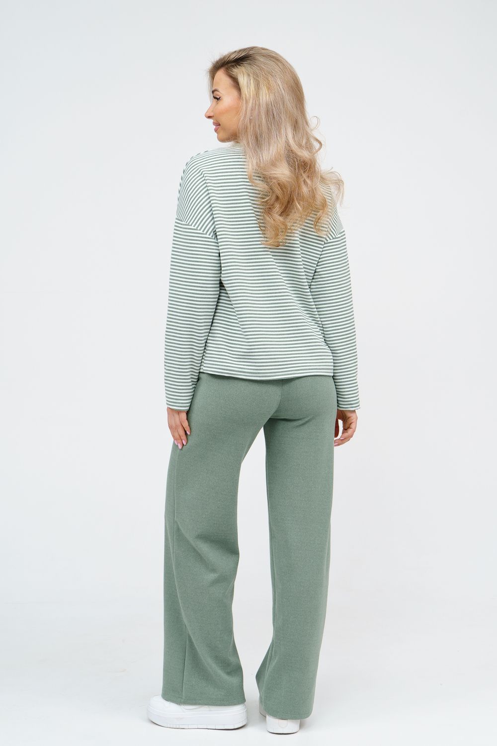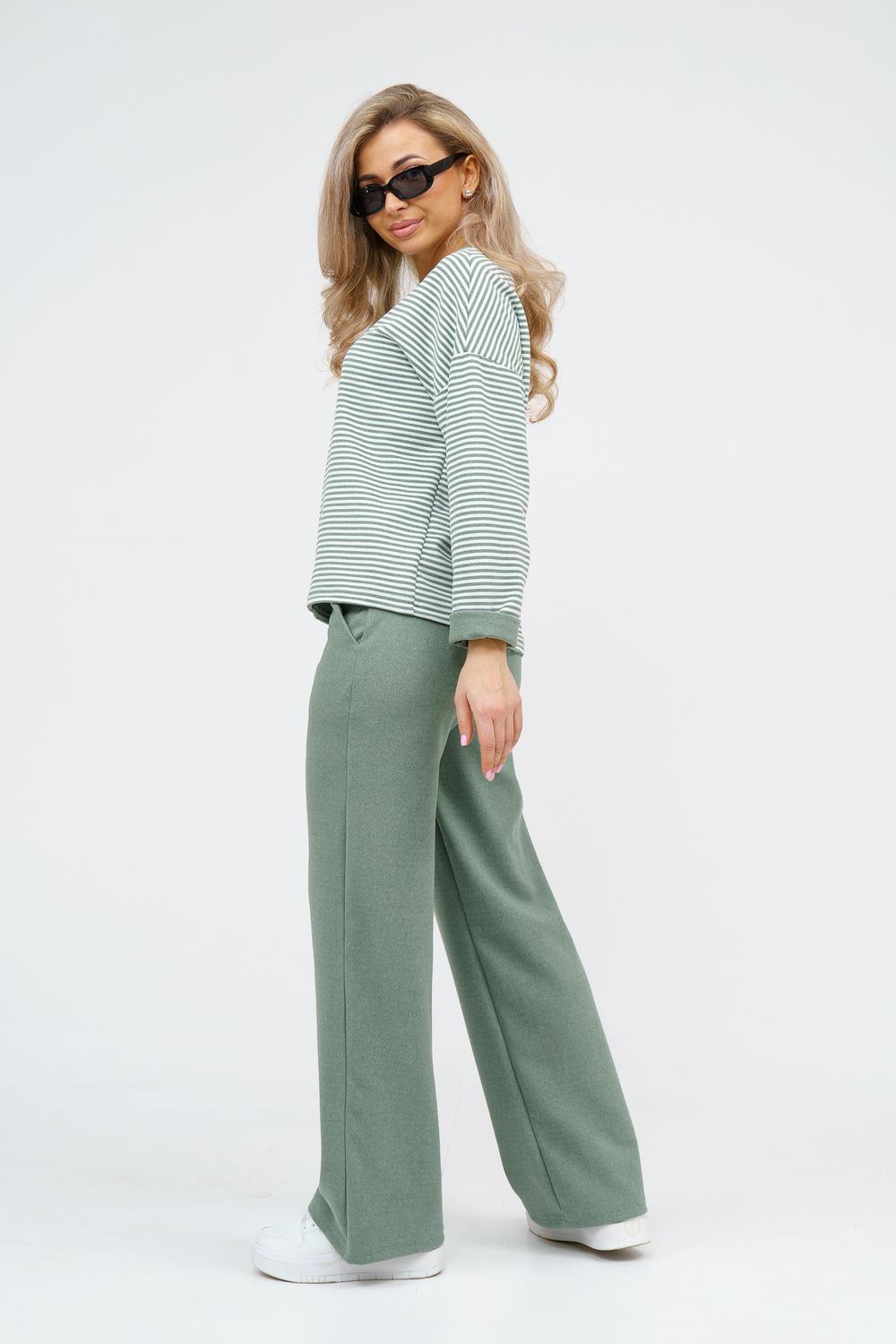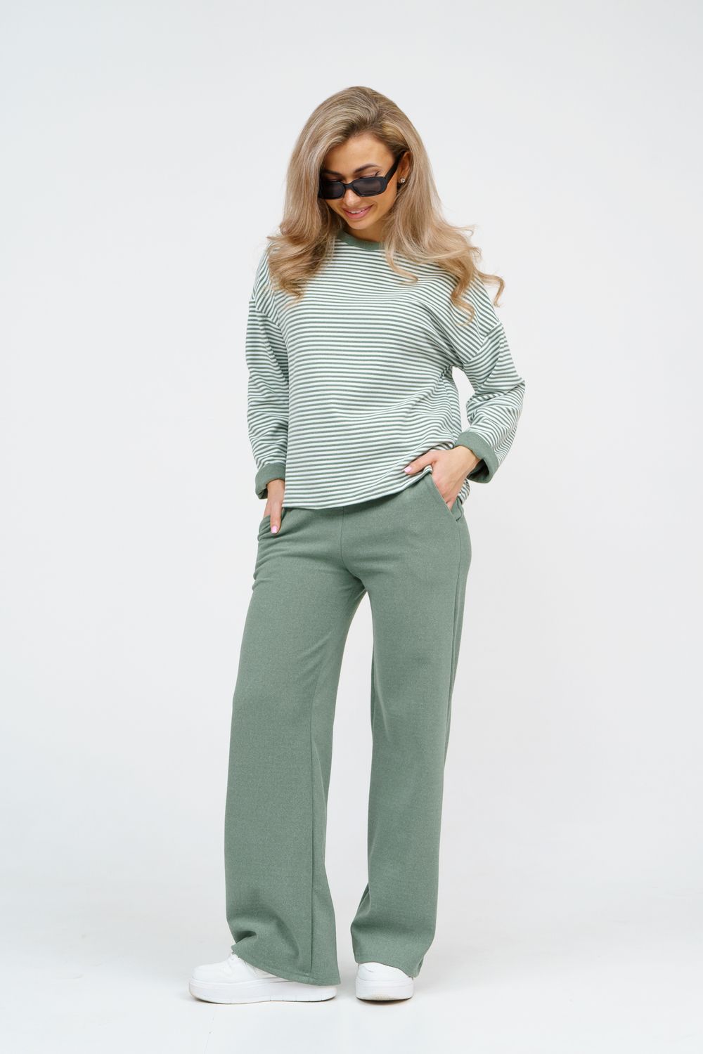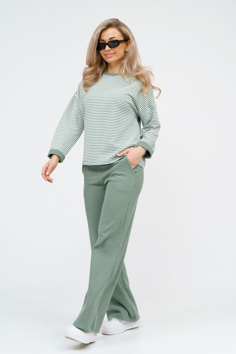 Женский костюм выполнен из двухстороннего флис полара высокого качества. Флис полар - высокотехнологичный материал, прошедшей особую обработку. Ткань отличается высокими теплозащитными свойствами, при этом является дышащей. По своим характеристикам она не уступает шерстяным полотнам. И даже в сыром состоянии удерживает тепло у тела. Материал прочный, эластичный, влагостойкий. Воздухопроницаемая гигроскопичная ткань создает для тела комфортный микроклимат. Материал гипоаллергенный, подходит для изготовления одежды детям, в том числе новорожденным. Изделия из флиса легкие, не мнутся, не деформируются, не вытягиваються.В такой одежде удобно и комфортно. Эластичность материала позволяет легко двигаться. Костюм состоит из лонгслива и брюк. Лонг в стиле OVERSIZE ( одежда свободного кроя ) - это свобода самовыражения, позволяющая чувствовать себя комфортно и стильно одновременно. Горловина футболки выполнена с обтачкой. Линия плеча спущена, длинный рукав. Женские стильные брюки - трубы представлены с вместительными боковыми карманами. Пояс выполнен на специализированной круговой поясной машине, что делает швы ровными и качественными. А профессиональные закрепки на поясе, придают изделию законченный вид и качество. Свободный крой прекрасно будет смотреться на дамах с любыми формами. Костюм такого плана представлен в широкой размерной сетке, что позволяет выбрать его как девушке, так и женщине. Костюм модных расцветок с полосой, будет удачным выбором для поездок в отпуск, на пикник, для школы, для активного отдыха и прогулок по городу. Будет гармонично сочетаться как с кроссовками, так и с ботинками. Используя эту модель в качестве домашнего костюма, Вы поймёте, что это именно тот самый идеальный вариант, в котором будете себя чувствовать удобно, комфортно и современно. Костюм с брюками - это настоящая находка для тех, кто ценит свою индивидуальность!