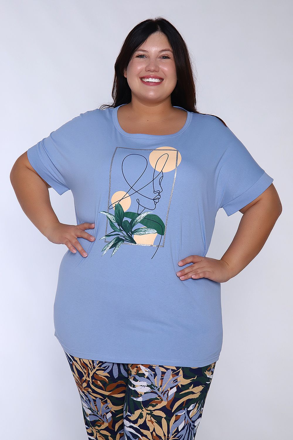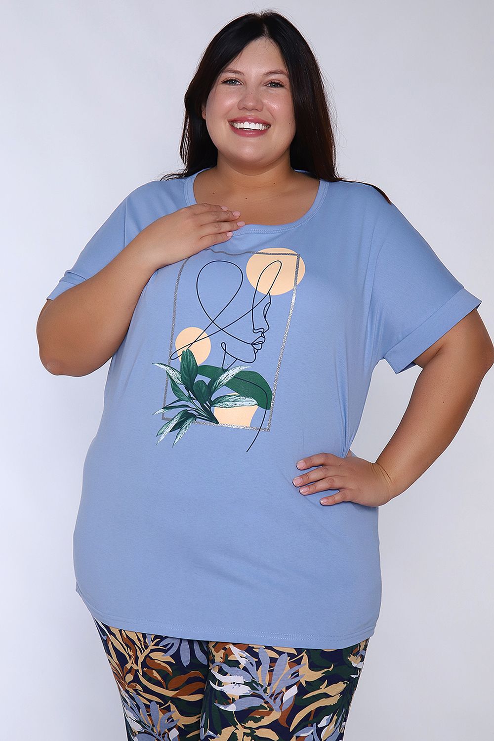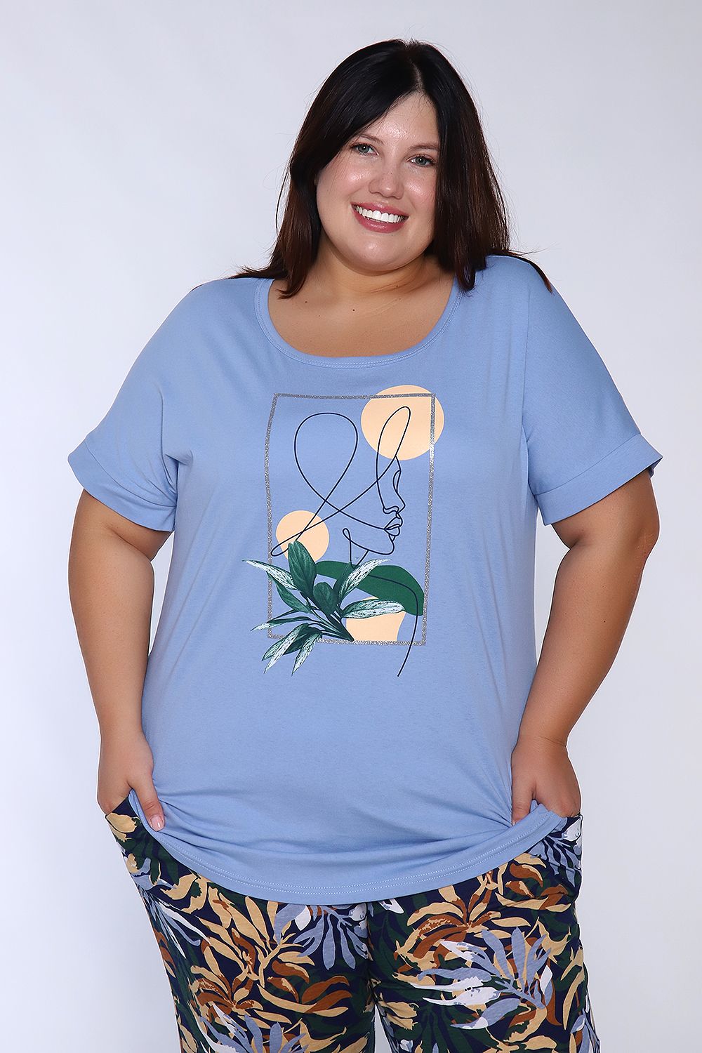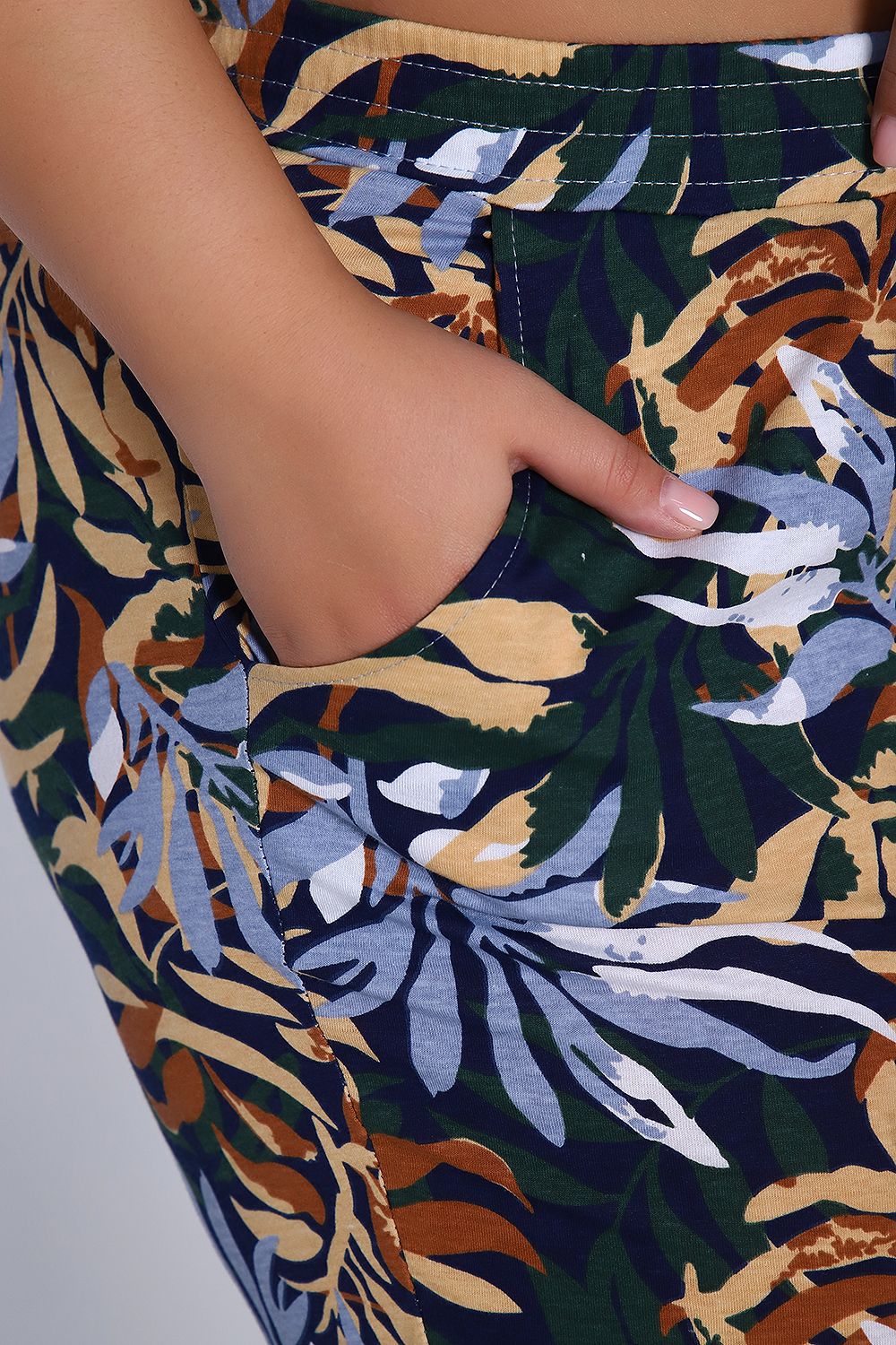 Женский костюм состоит из брюк и футболки полуприлегающего силуэта. Костюм выполнен из мягкого трикотажа (100% хлопок). Брюки свободные с двумя боковыми карманами, на широком поясе с резинкой.