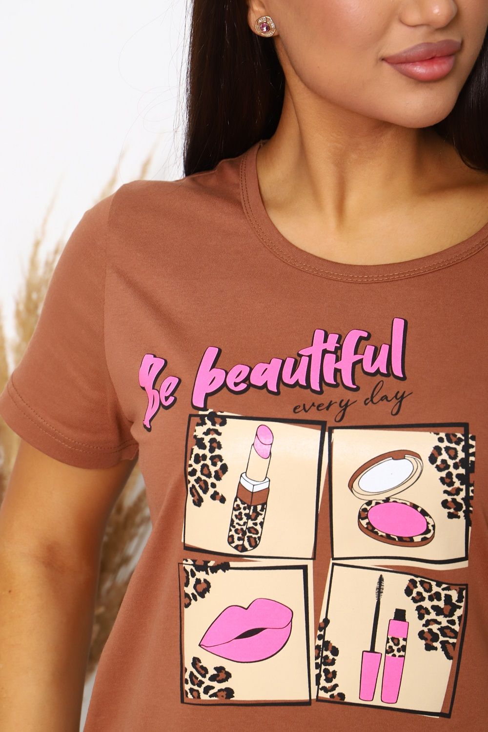 Костюм женский Леопард состоит из брюк кроя бананы с карманами в боках, футболка классическая с короткими рукавами и с принтом на полочке.