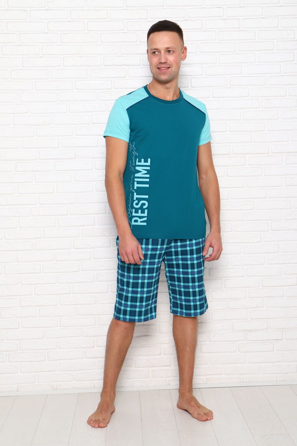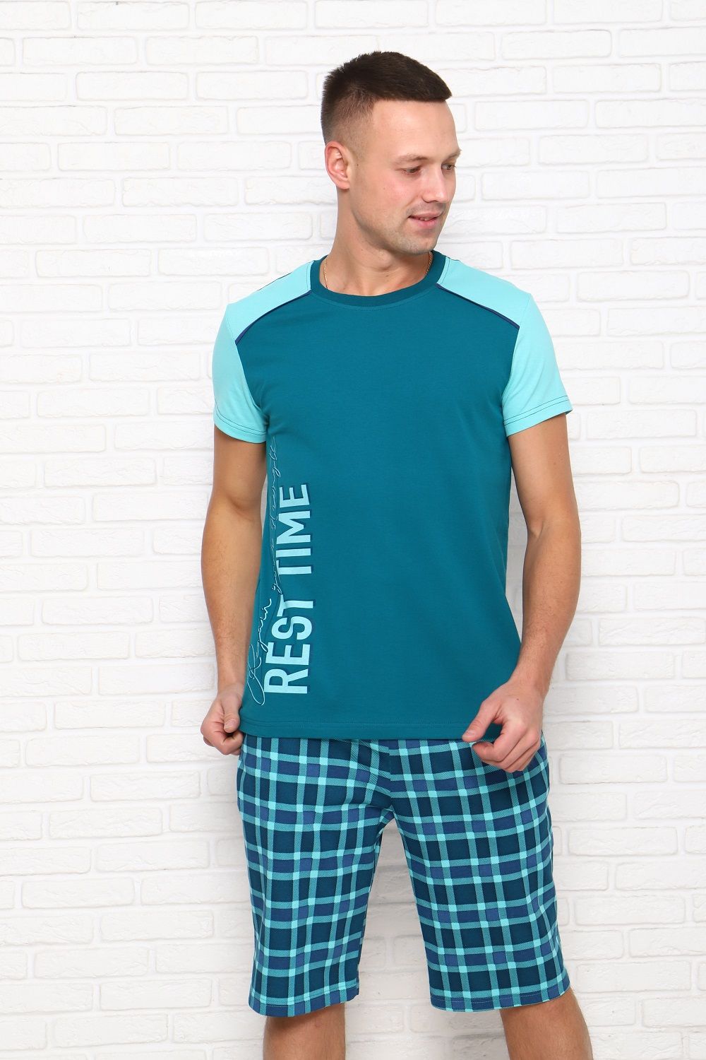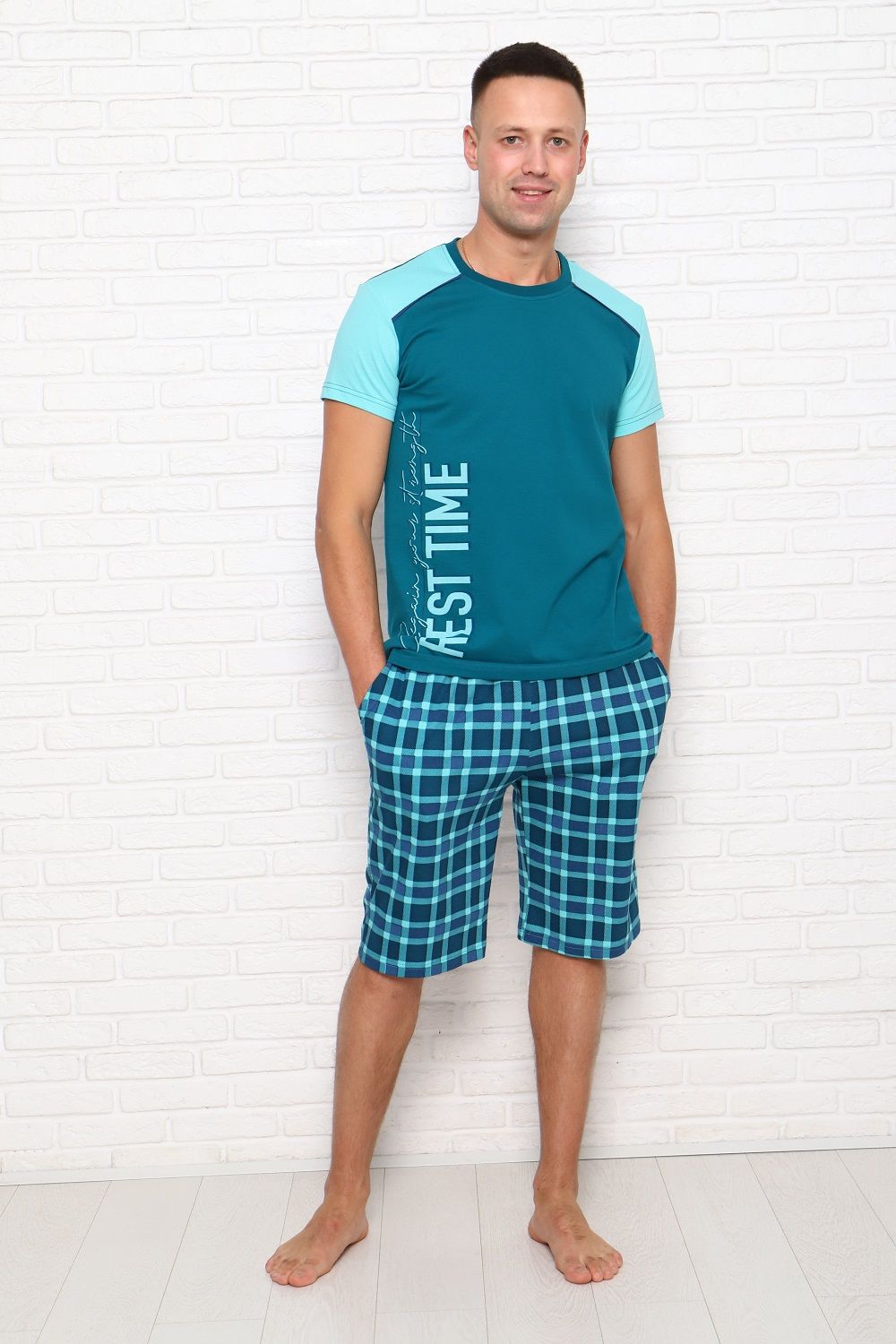 Костюм летний, мужской: футболка с короткими рукавами, с принтом на груди, шорты с карманами в боковых швах, с комфортным эластичным поясом. 100% хлопок обеспечит комфорт.