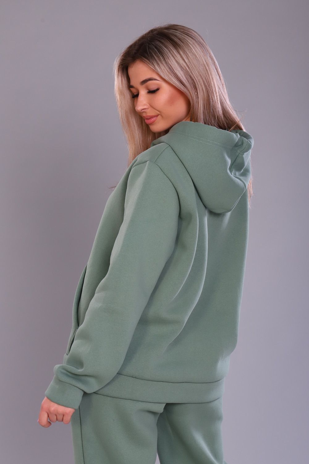 Теплый женский костюм толстовка + брюки. Толстовка с капюшоном, на животе карманы, рукава и низ отделаны манжетами. Брюки с карманами, внизу манжеты. Несколько вариантов расцветки. Размеры от 44 до 58.