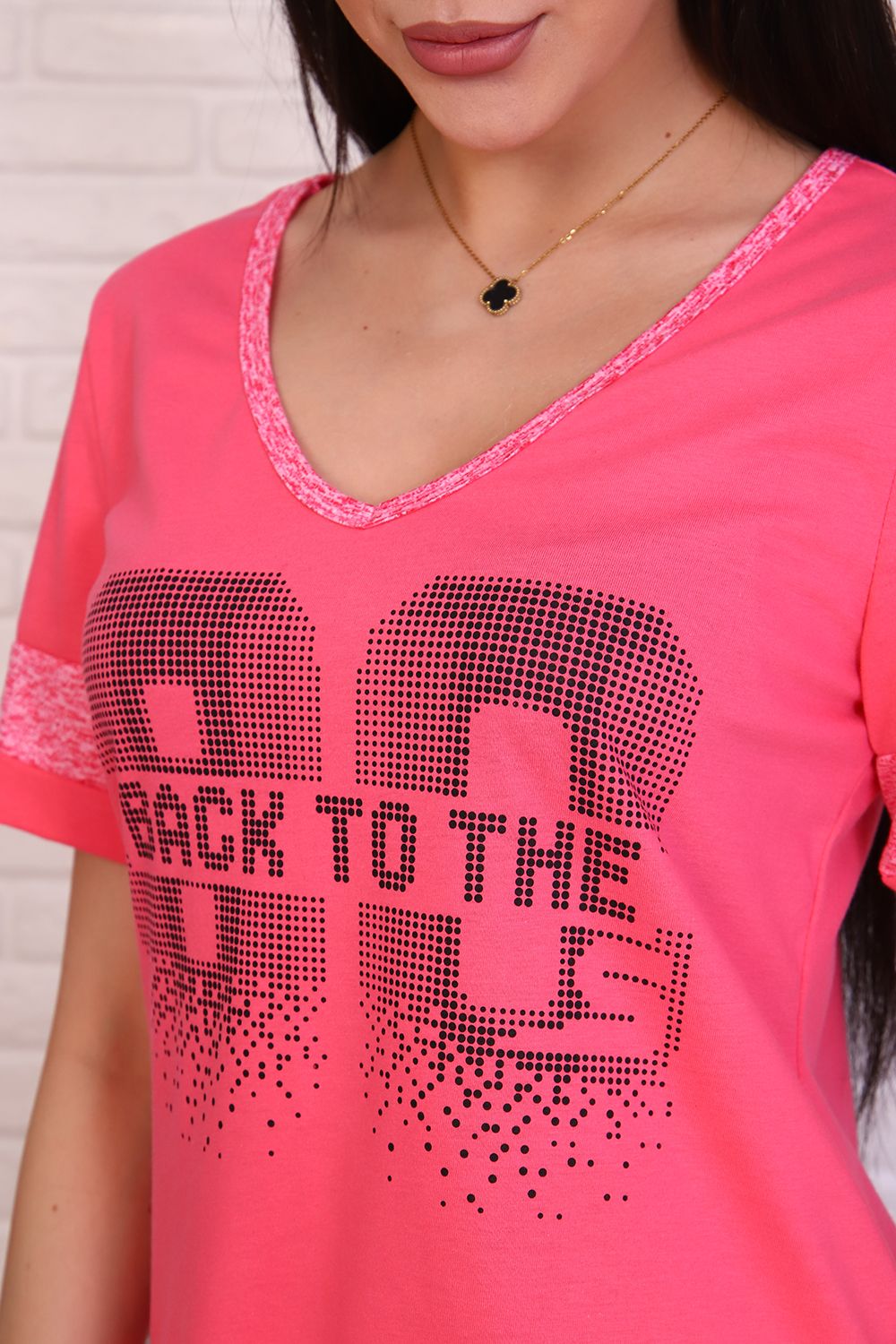 Молодежный яркий костюм из кулирки футболка + брюки. Футболка из однотонной ткани с печатью, рукава которые, горловина V-образная брюки из набивной ткани, с карманами