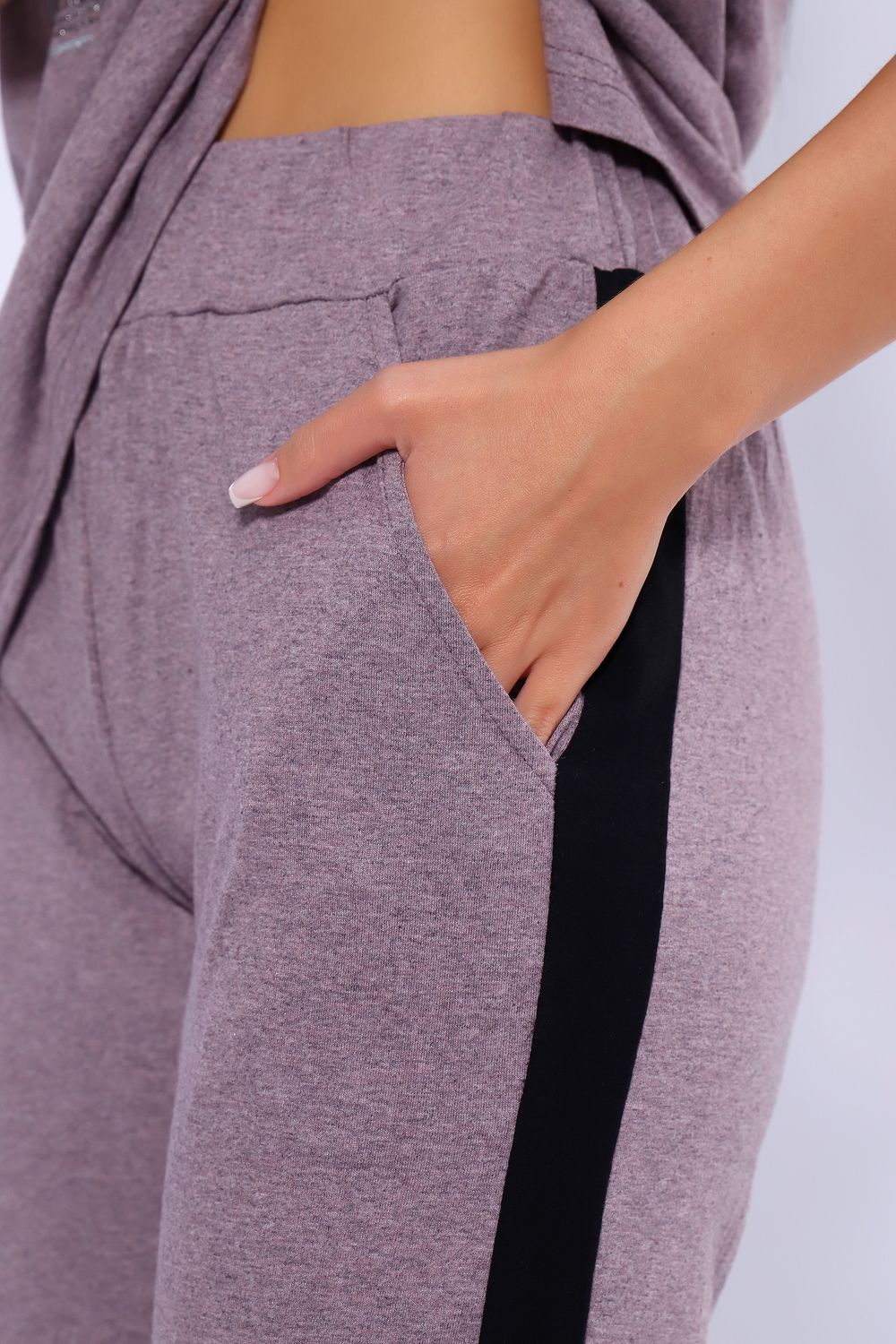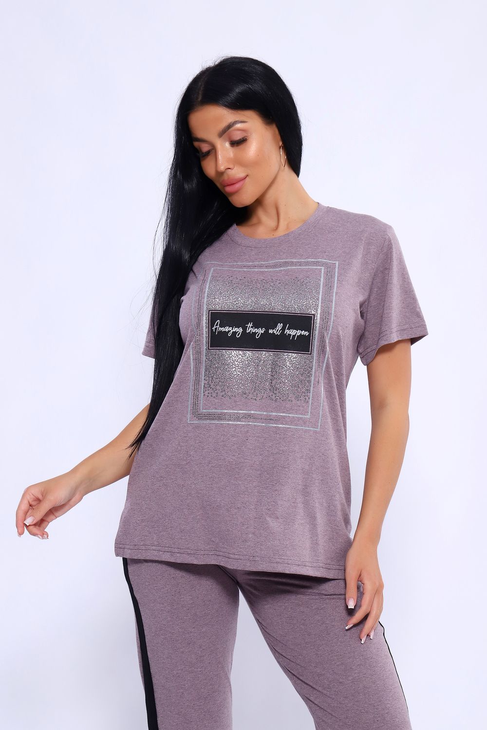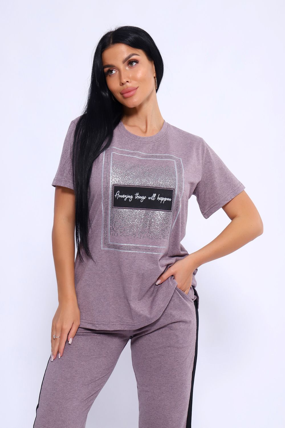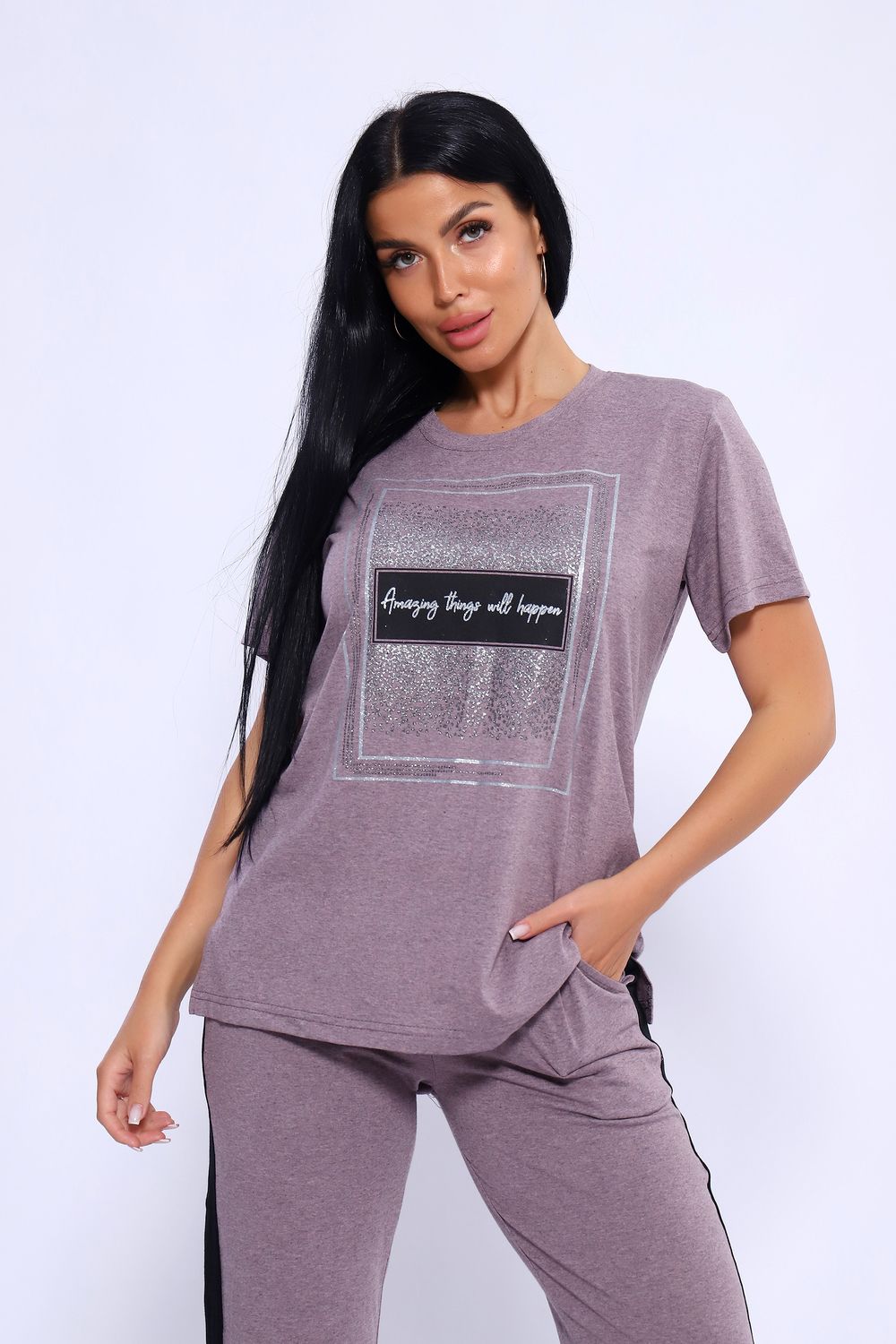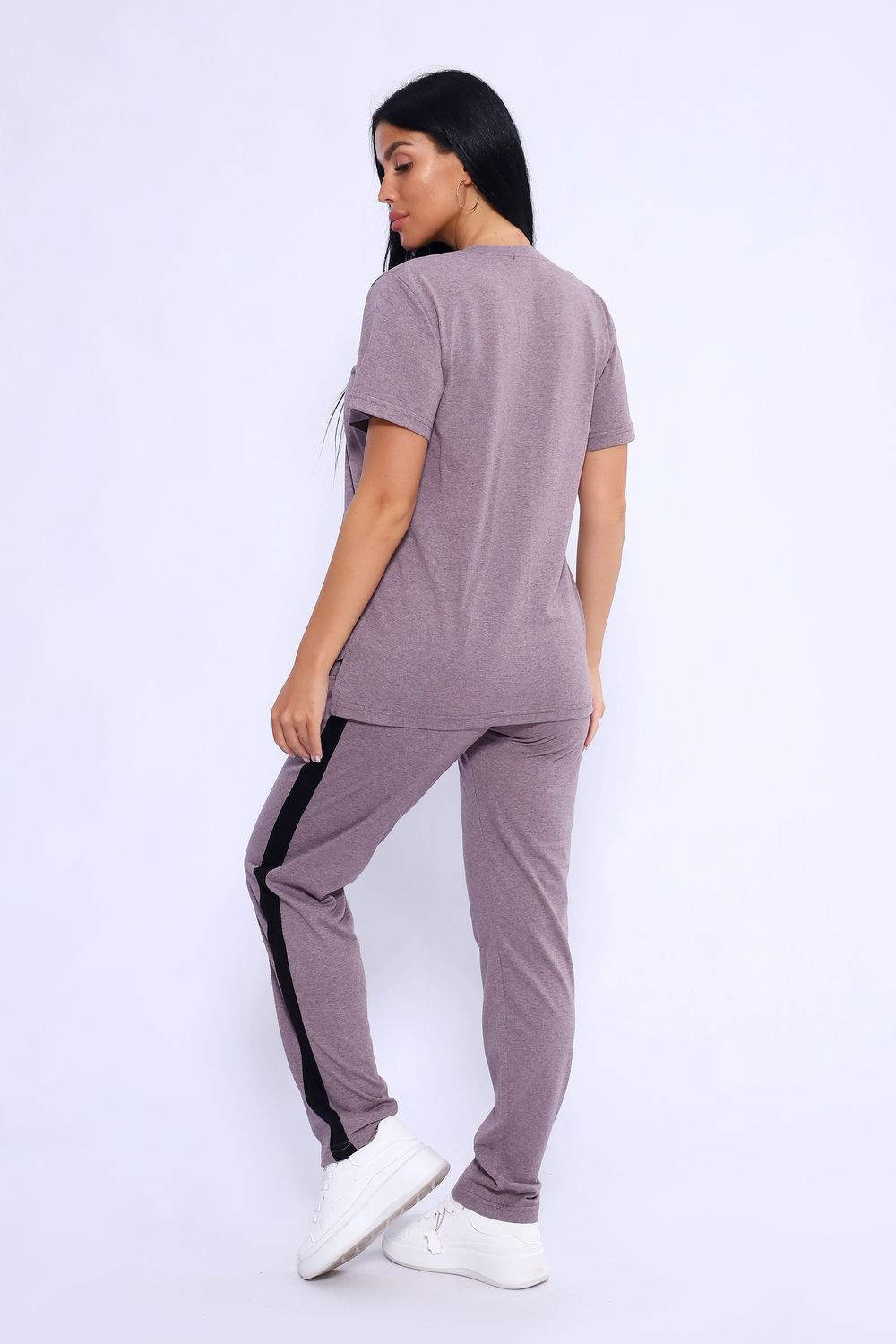 Классический и удобный трикотажный костюм с брюками из легкой хлопковой ткани! В комплекте костюма представлены кофта свободного кроя и брюки универсальной посадки с лампасами по бокам. Кофта украшена лаконичным принтом. Костюм - идеальный вариант домашней одежды для женщин, также прекрасно подойдет и для повседневной носки.