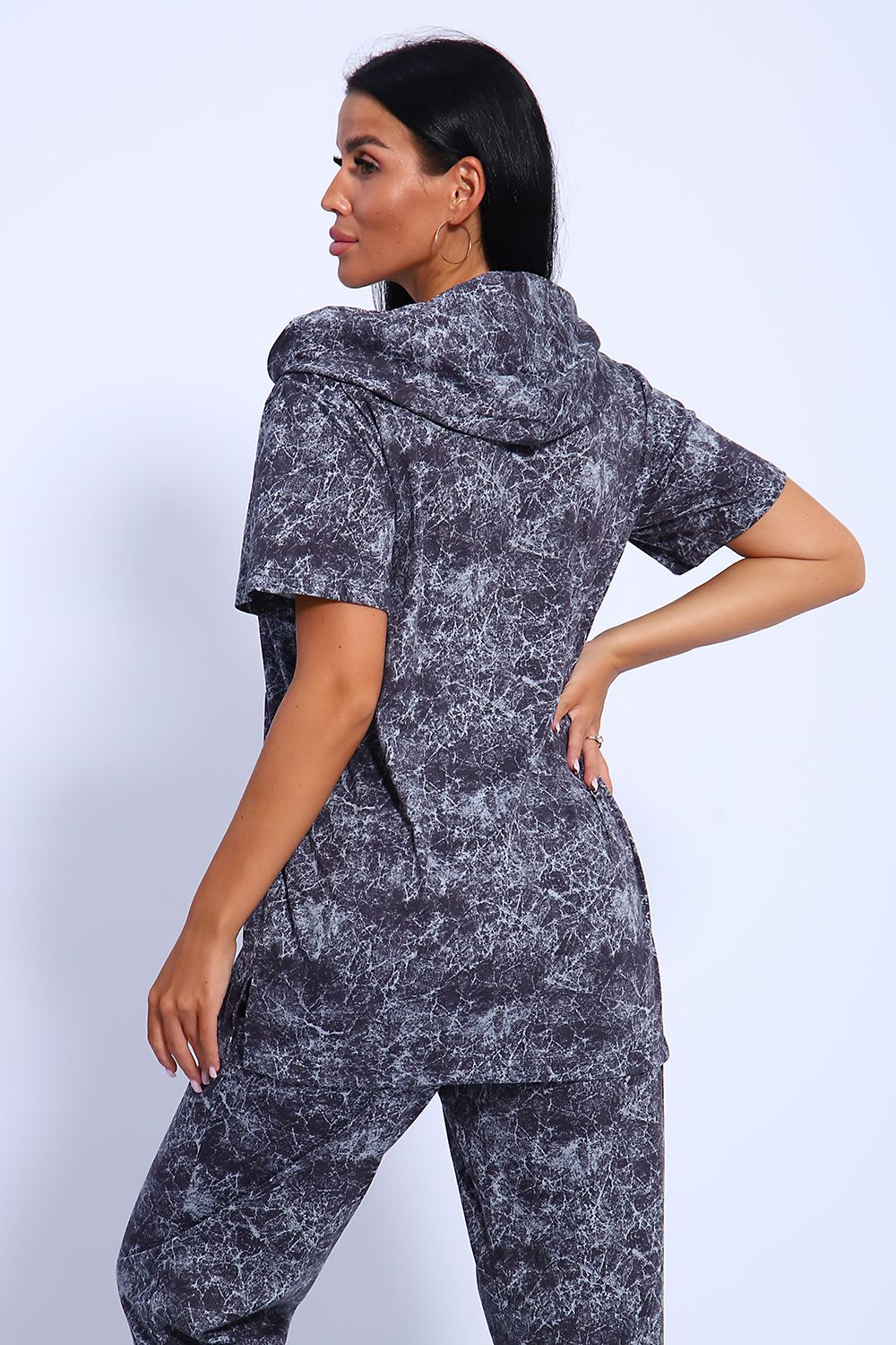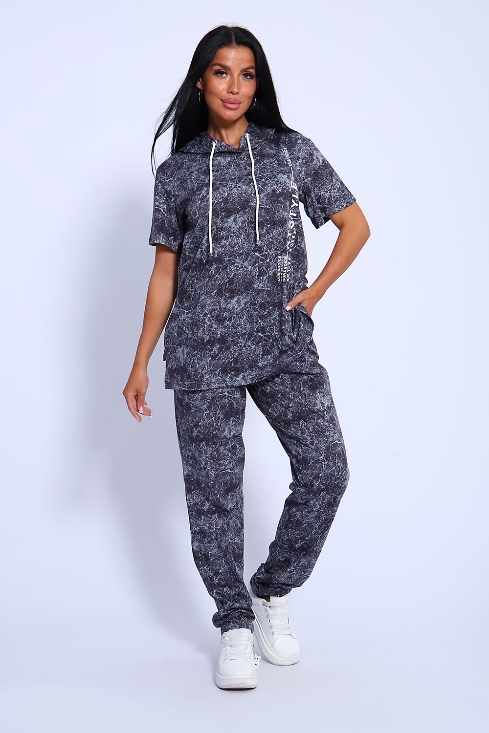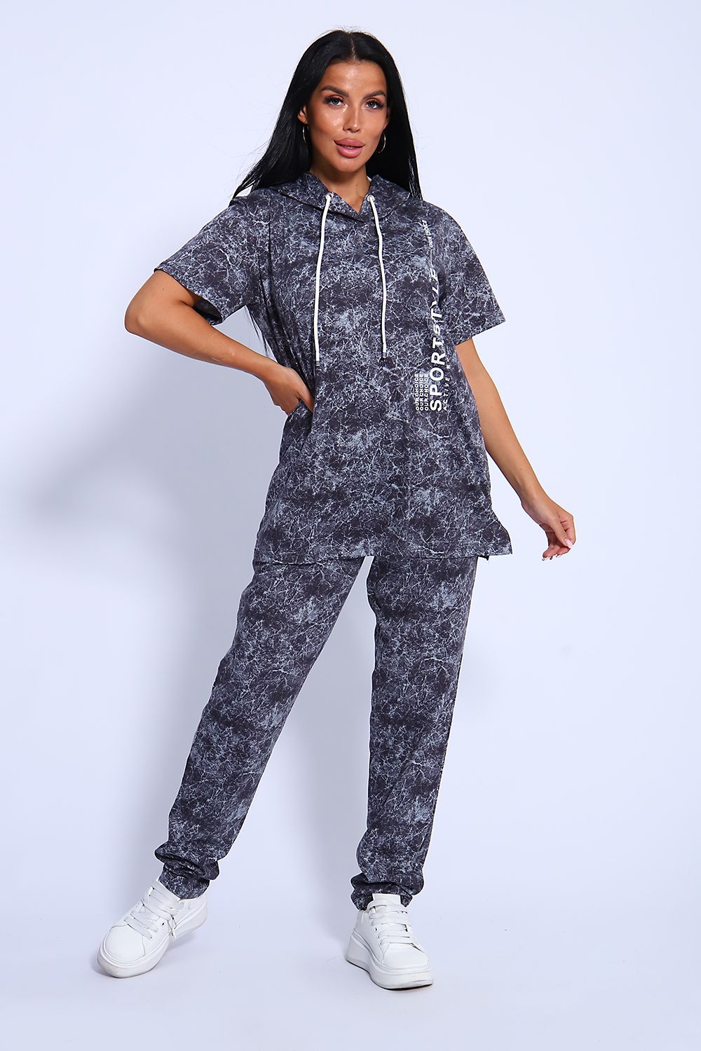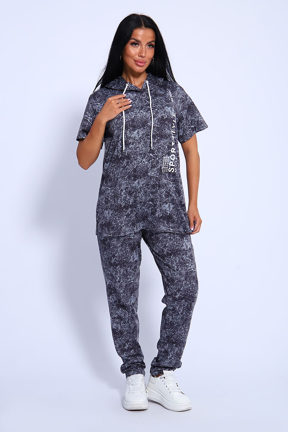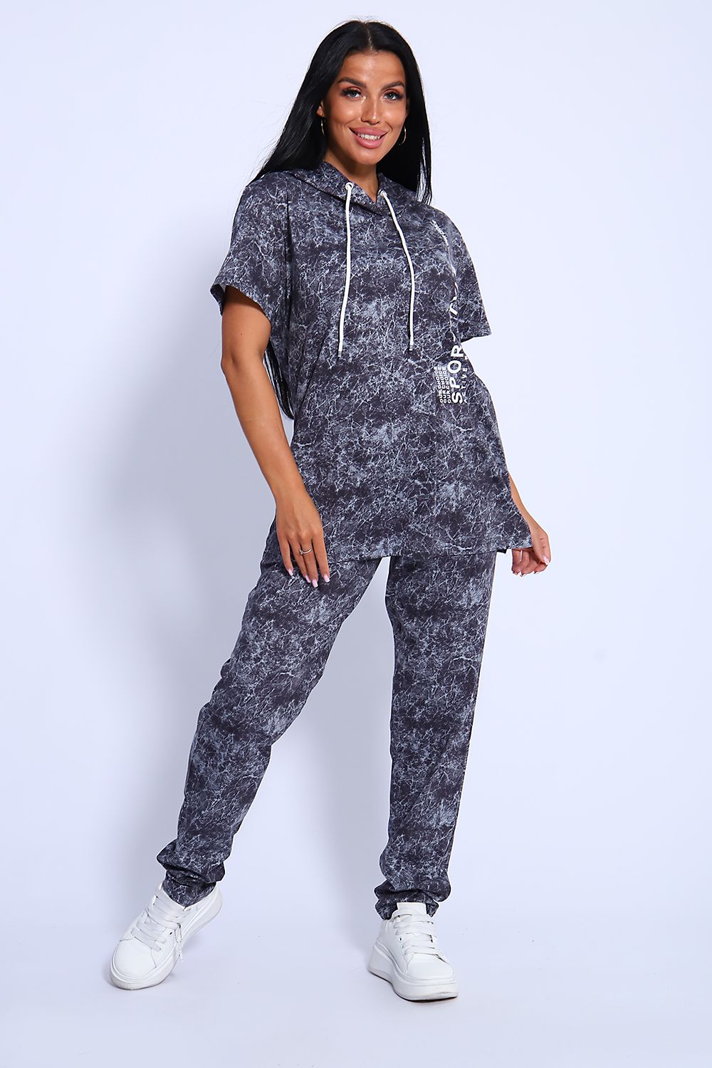 Яркий и стильный женский костюм из легкого дышащего трикотажного полотна высокого качества. Изюминкой костюма является рисунок ткани, имитирующий "вареную" джинсовку. для удобства модниц изделие представлено в 4-х ярких расцветках. На кофте имеется капюшон, объем которого регулируется тонкой лентой. Этот универсальный и практичный повседневный костюм в спортивном стиле будет удобным и комфортным во многих ситуациях. Комплект отлично подойдет для спорта, бега или танцев. Брюки свободные, с двумя боковыми карманами, на широком поясе с резинкой. Каждую вещь вполне можно использовать по отдельности. Комплект отлично подойдет для женщин любого возраста и поможет хозяйке выглядеть стильно, при этом даря чувство комфорта!