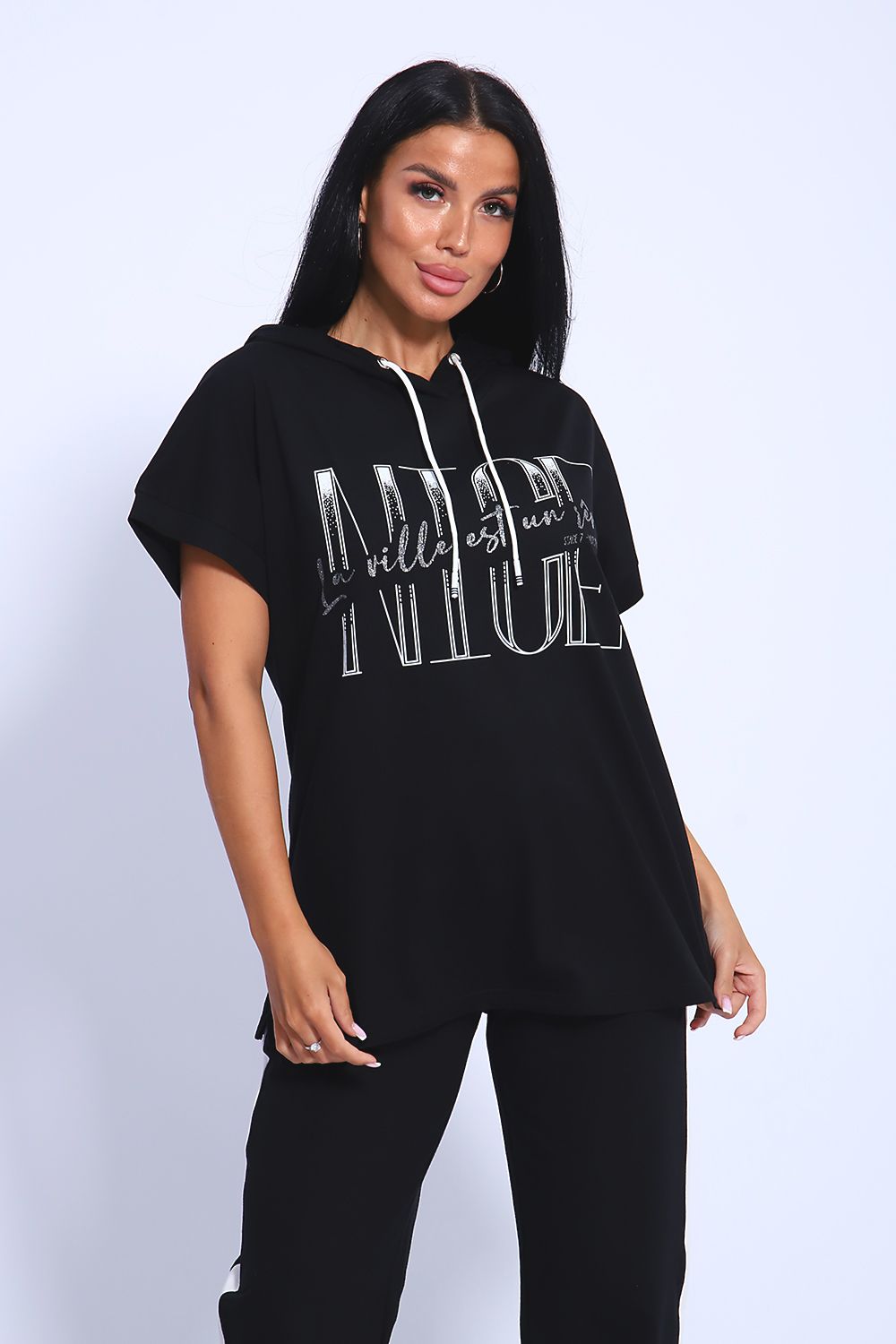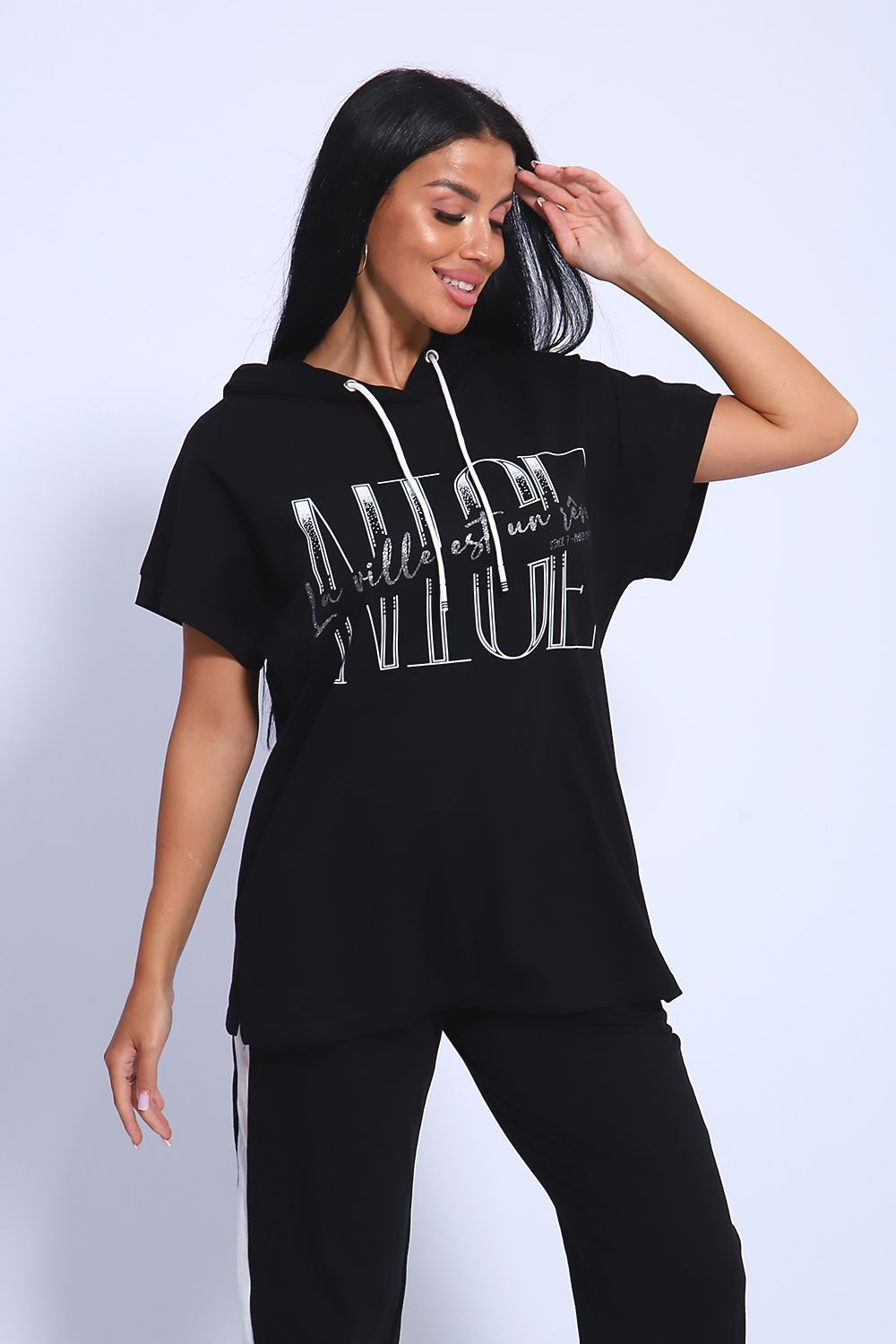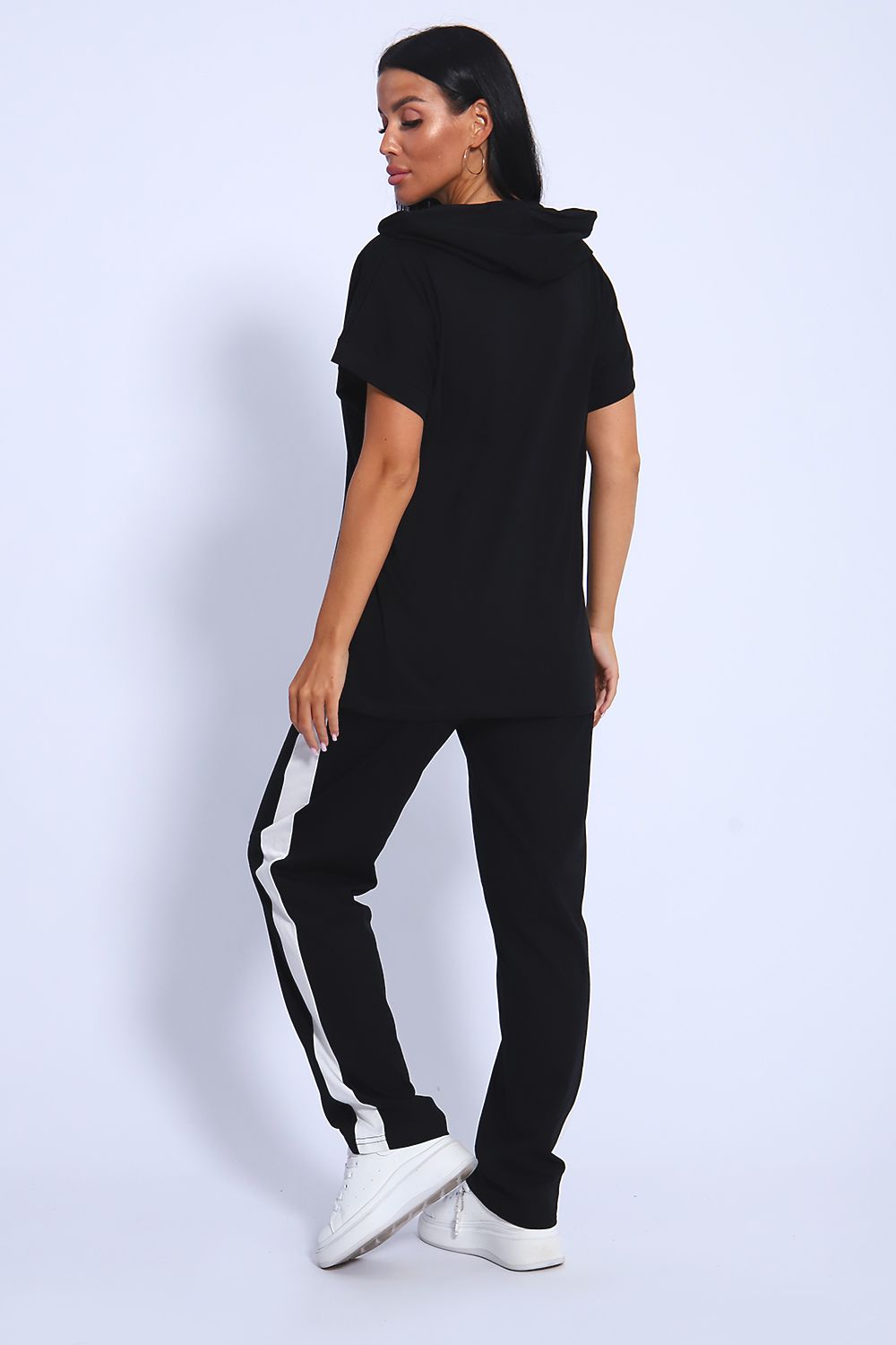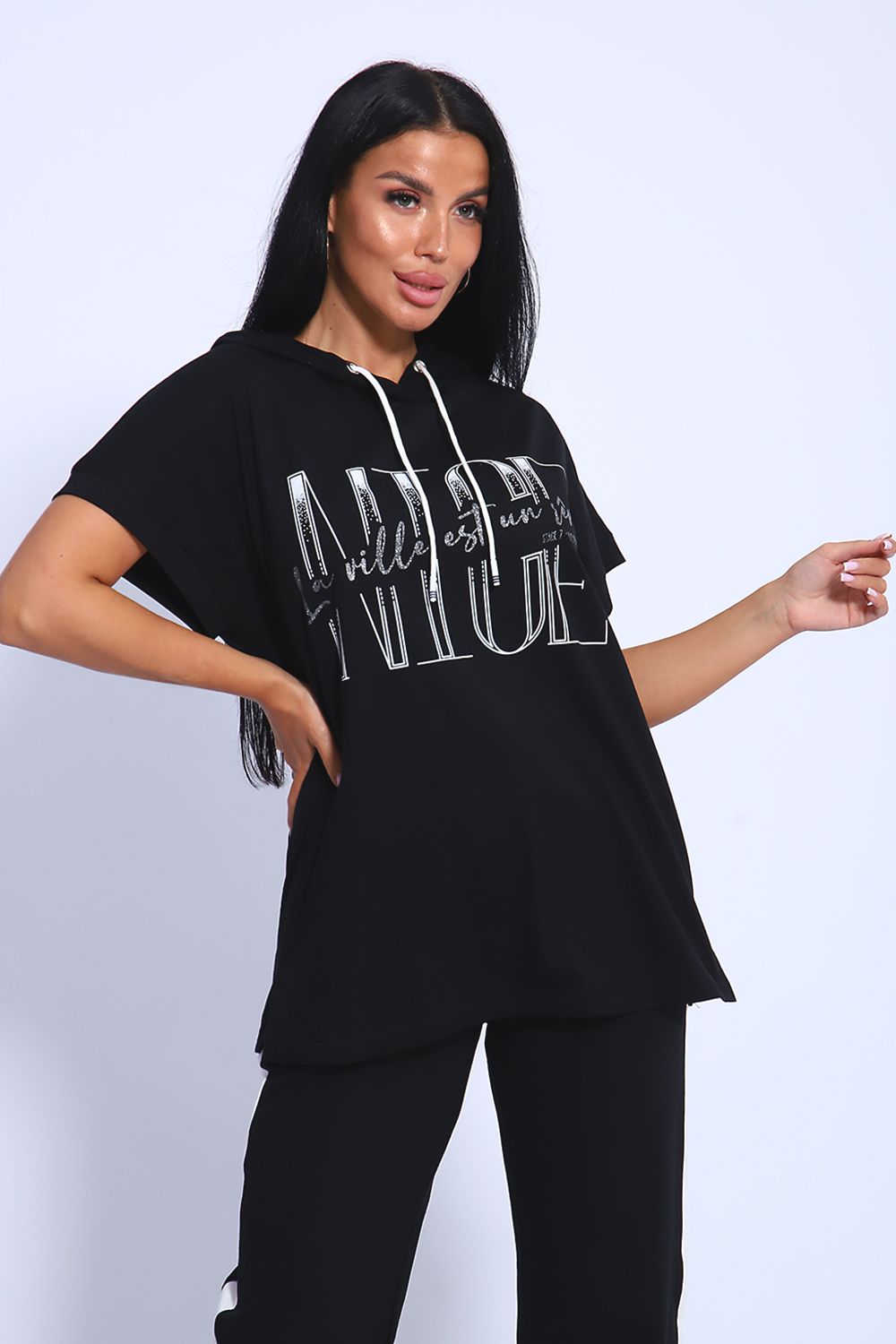 Классический и удобный трикотажный костюм с брюками из 100%-го хлопка! В комплекте костюма представлены кофта свободного кроя с капюшоном и брюки c тонкими лампасами универсальной посадки. Кофта украшена ярким принтом, состоящим из крупных латинских букв, контрастирующими с общим фоном изделия. Костюм - идеальный вариант домашней одежды для женщин, также прекрасно подойдет и для повседневной носки, прогулок и занятий спортом.