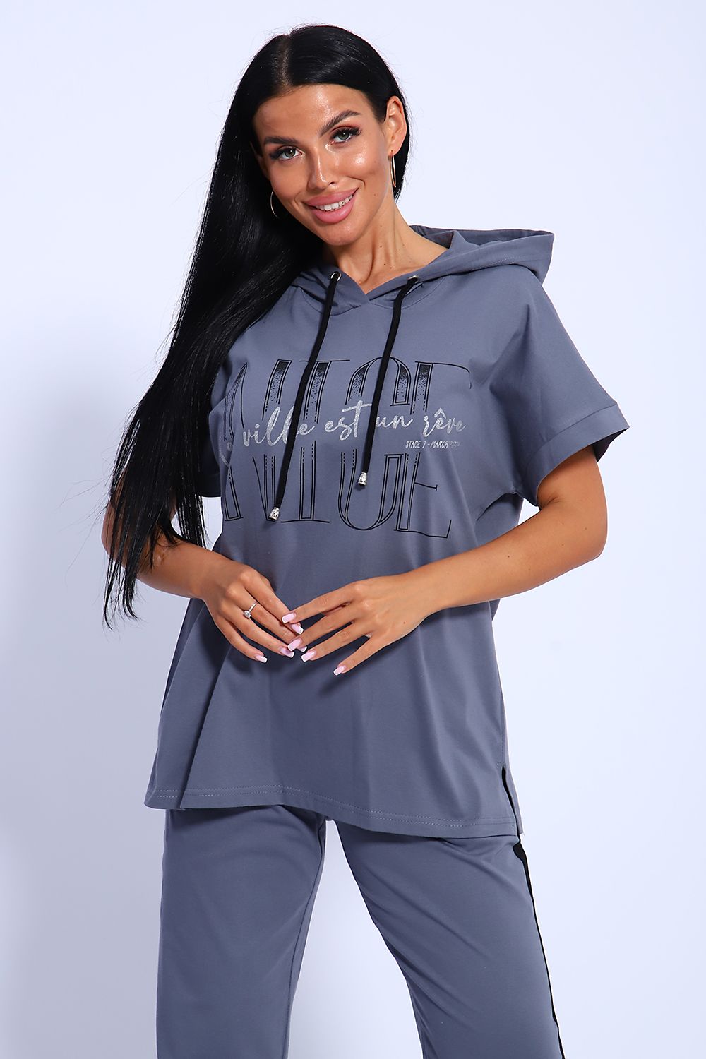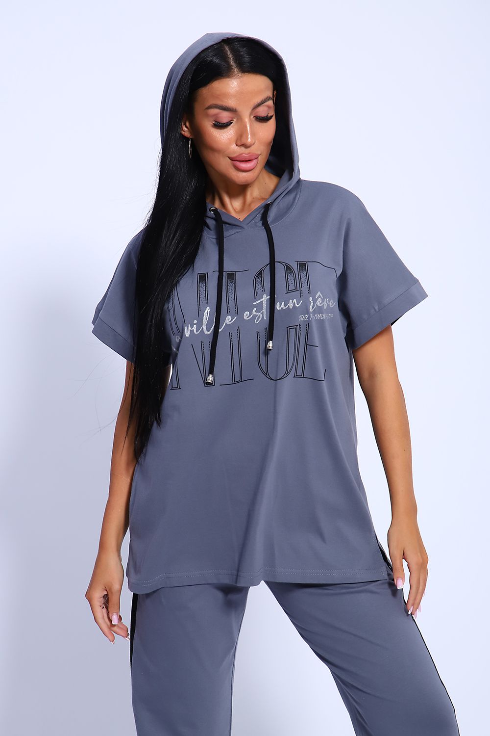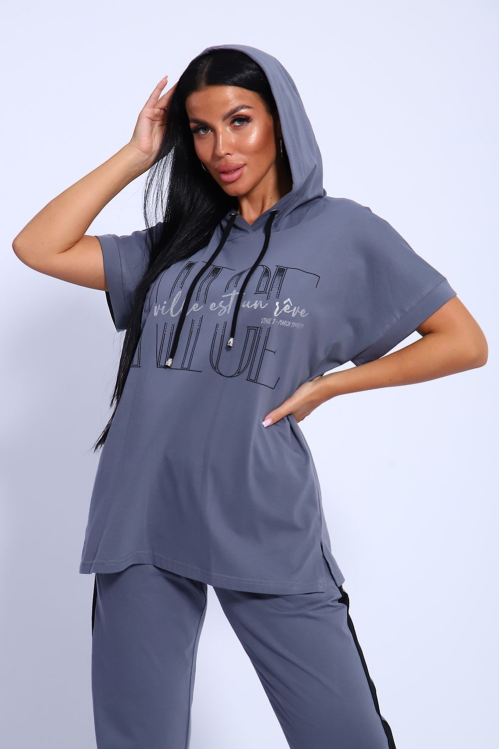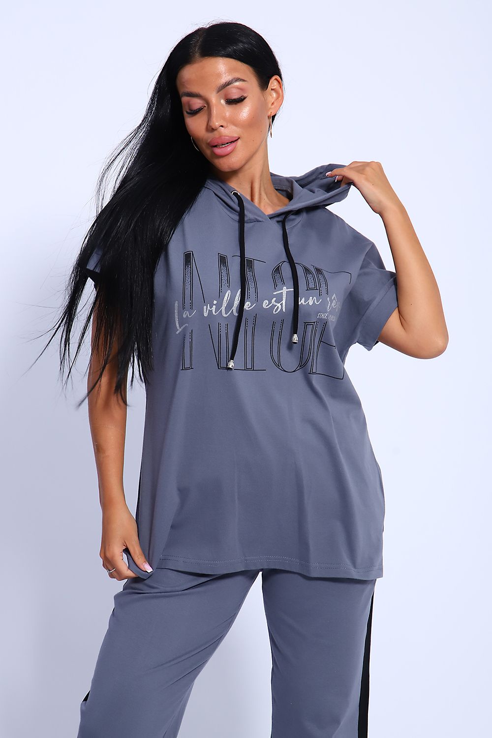 Классический и удобный трикотажный костюм с брюками из 100%-го хлопка! В комплекте костюма представлены кофта свободного кроя с капюшоном и брюки c тонкими лампасами универсальной посадки. Кофта украшена ярким принтом, состоящим из крупных латинских букв, контрастирующими с общим фоном изделия. Костюм - идеальный вариант домашней одежды для женщин, также прекрасно подойдет и для повседневной носки, прогулок и занятий спортом.