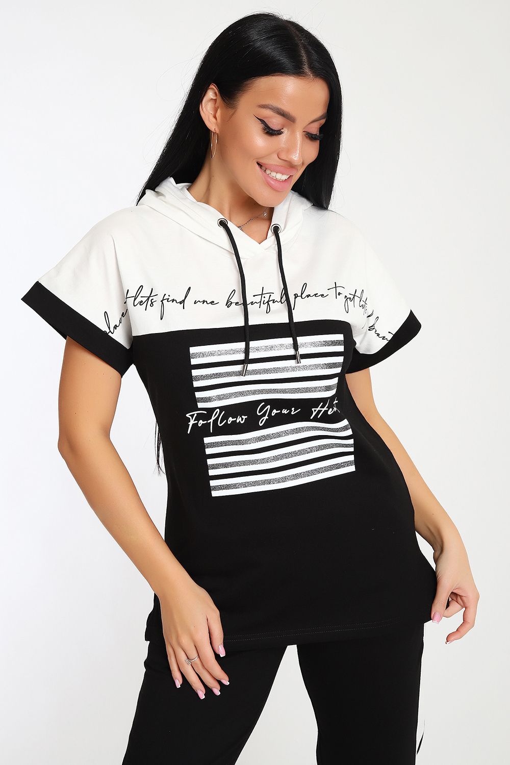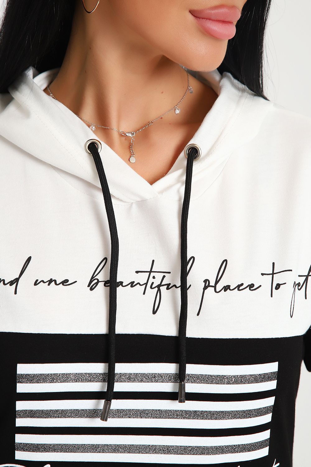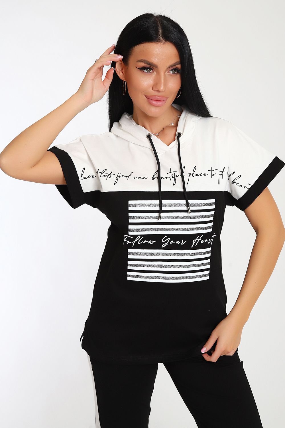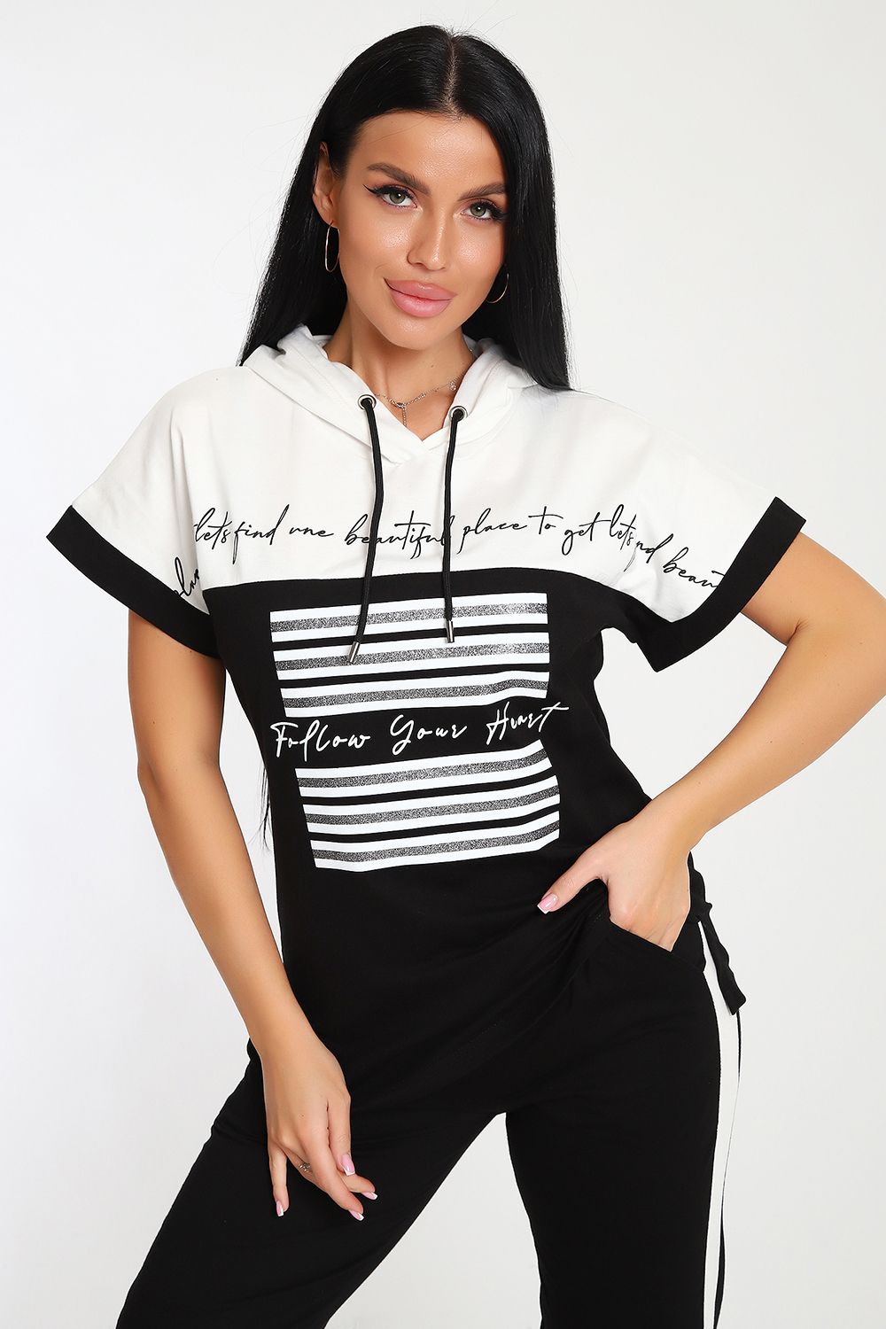 Невероятно женственный и стильный костюм из нежного хлопкового трикотажа, превосходно подходящий для повседневной носки, представляет собой гармонию элегантности и функциональности. Тщательный подход к деталям проявляется в каждой части этого комплекта- капюшон, декорированный изящными лентами контрастного цвета, придает дополнительное очарование, а аккуратно изготовленные швы подчеркивают премиальный уровень исполнения.