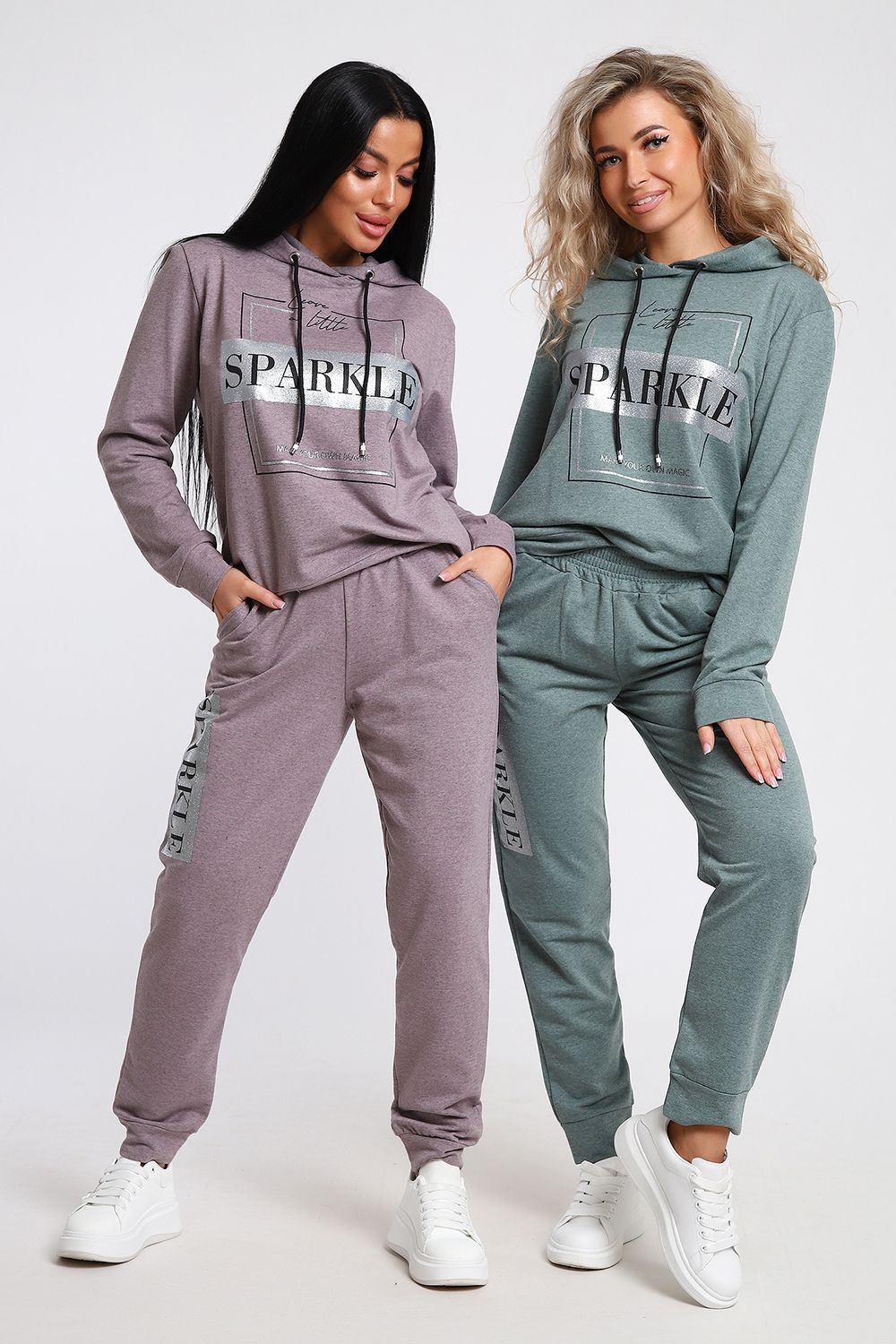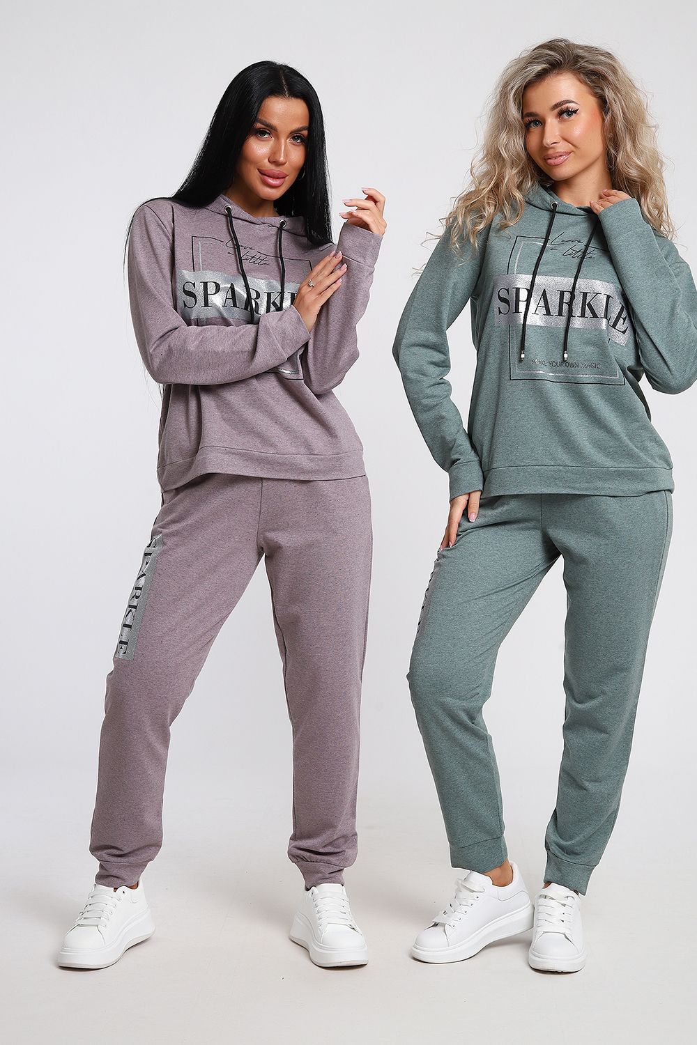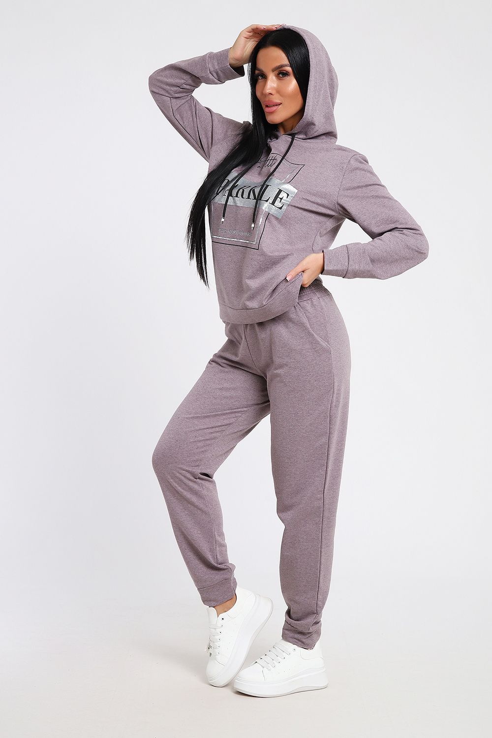 Уютный женский спортивный костюм, который вполне можно использовать для ношения дома, изготовлен из высококачественного, приятного телу трикотажного полотна, состоящего на 50% из хлопка. Комплект представлен в трех практичных расцветках. На полочке кофты и брюках имеется принт, придающий изделию особую стильность. Дополнительным декором кофты служит капюшон, объем которого регулируется шнурком контрастного цвета. Костюм красиво сидит на фигуре, подчеркивает ее достоинства и при этом не стесняет движений. В нем Вы будете чувствовать себя комфортно и уверенно.