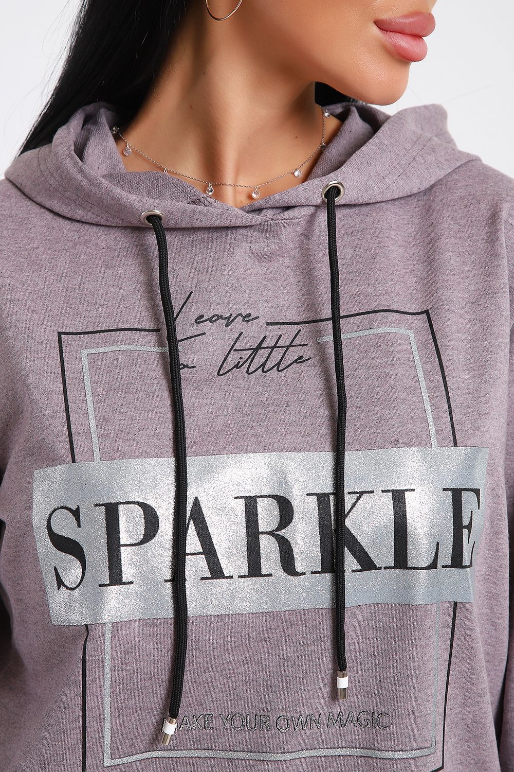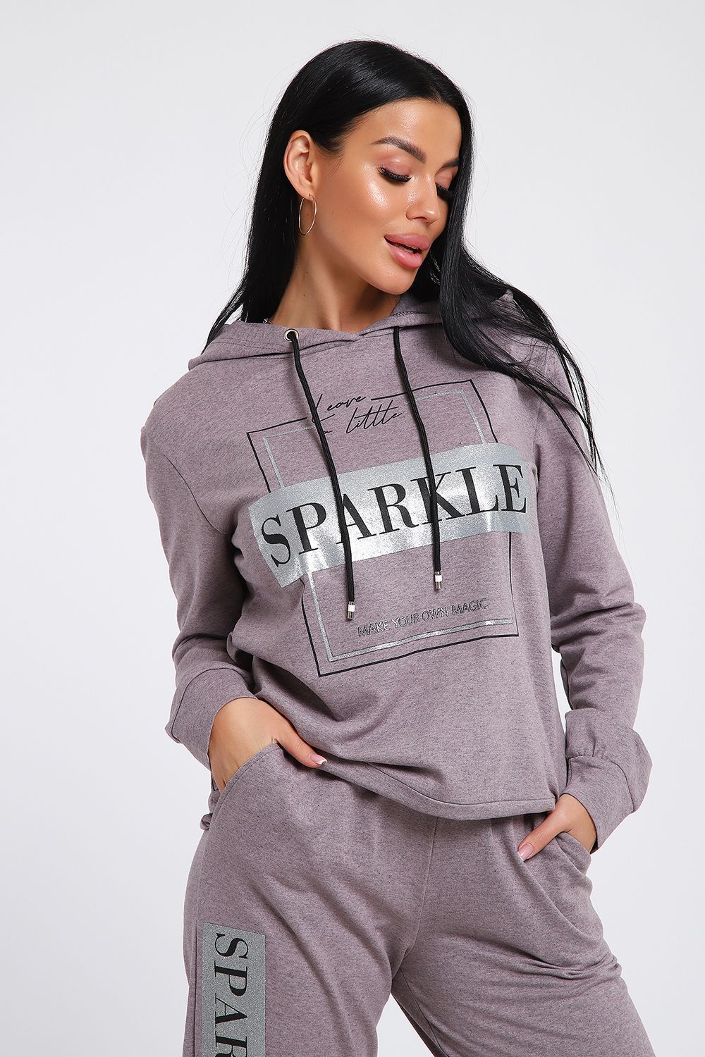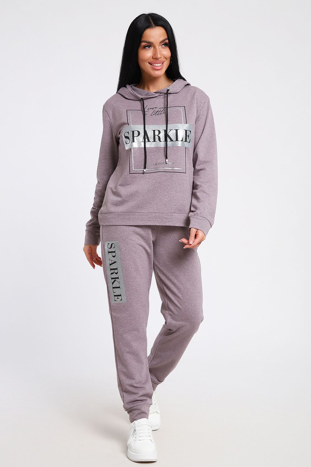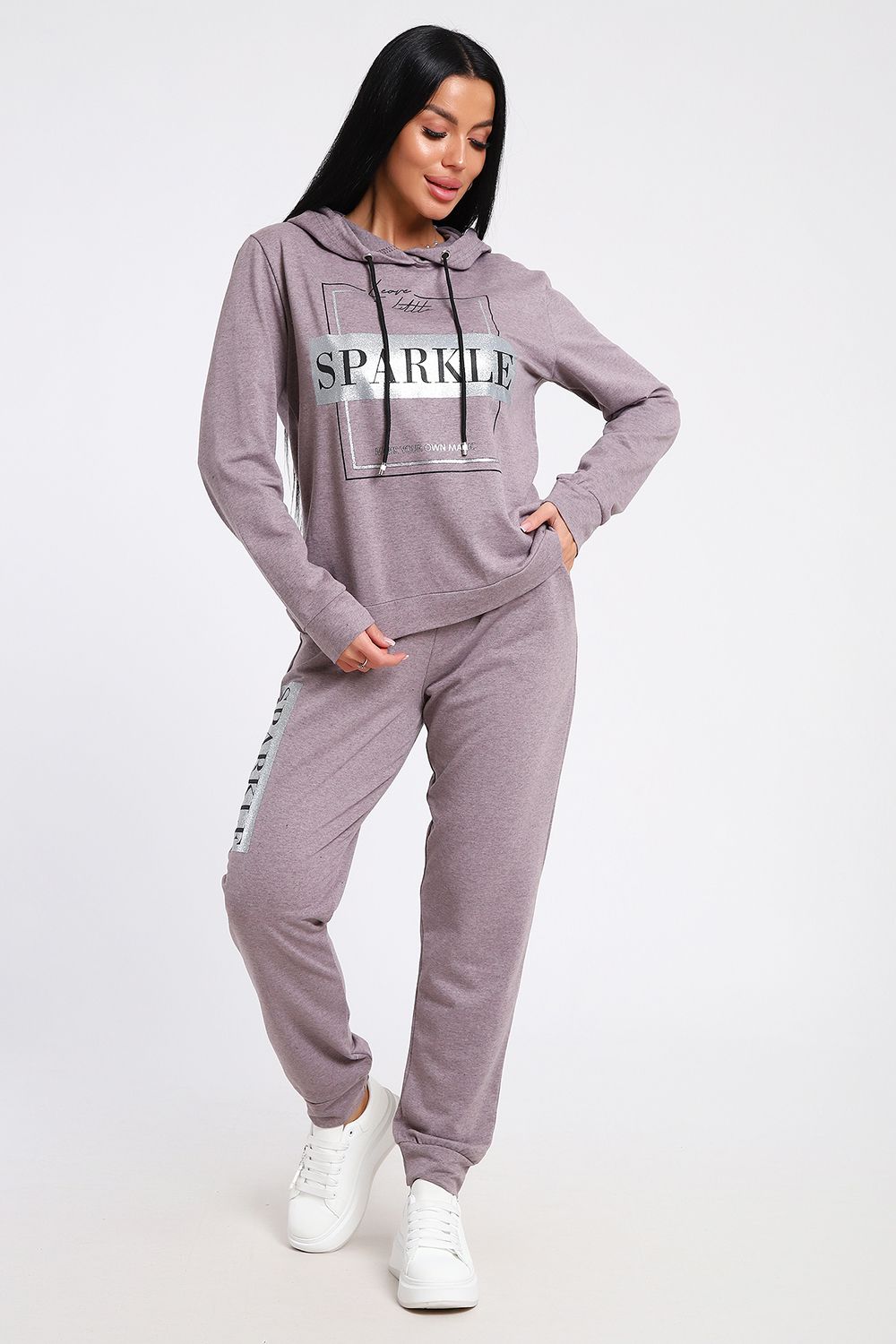 Уютный женский спортивный костюм, который вполне можно использовать для ношения дома, изготовлен из высококачественного, приятного телу трикотажного полотна, состоящего на 50% из хлопка. Комплект представлен в трех практичных расцветках. На полочке кофты и брюках имеется принт, придающий изделию особую стильность. Дополнительным декором кофты служит капюшон, объем которого регулируется шнурком контрастного цвета. Костюм красиво сидит на фигуре, подчеркивает ее достоинства и при этом не стесняет движений. В нем Вы будете чувствовать себя комфортно и уверенно.