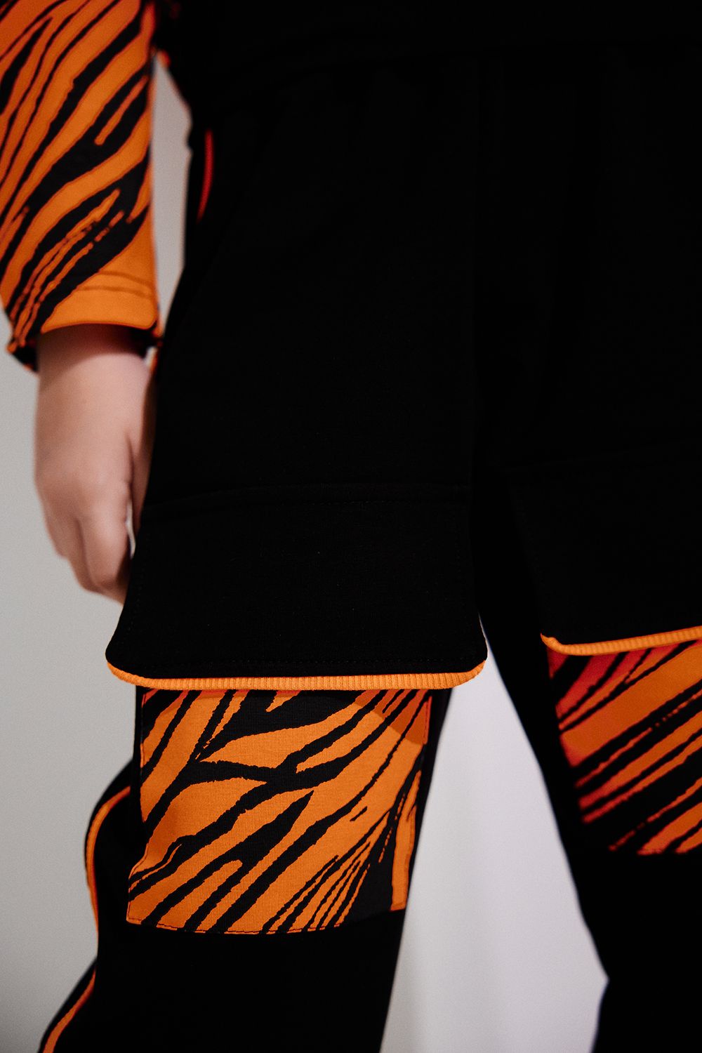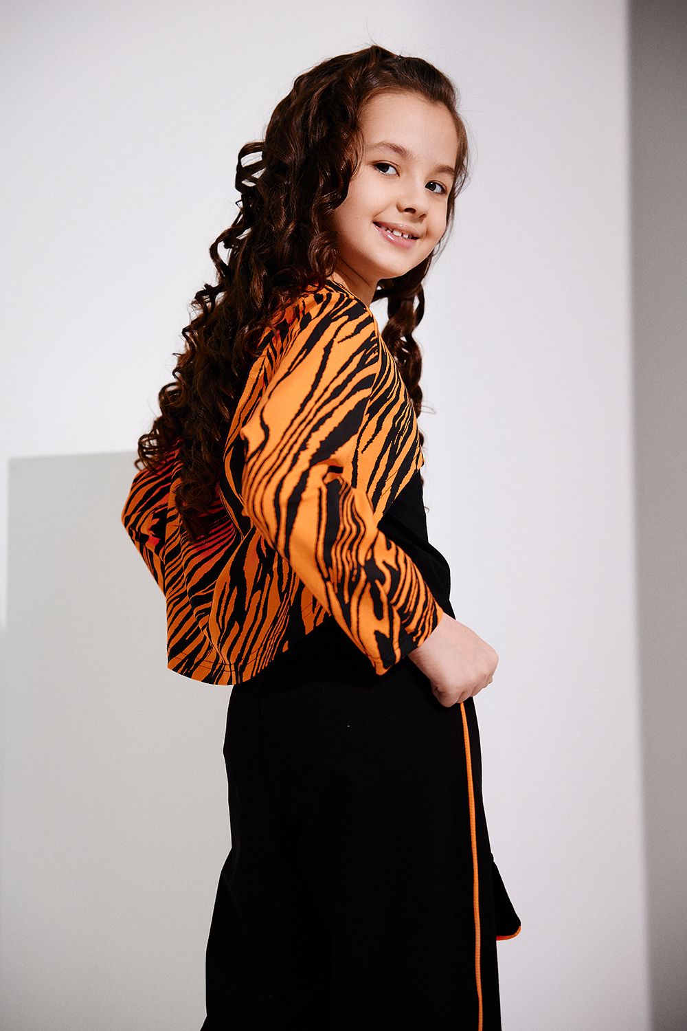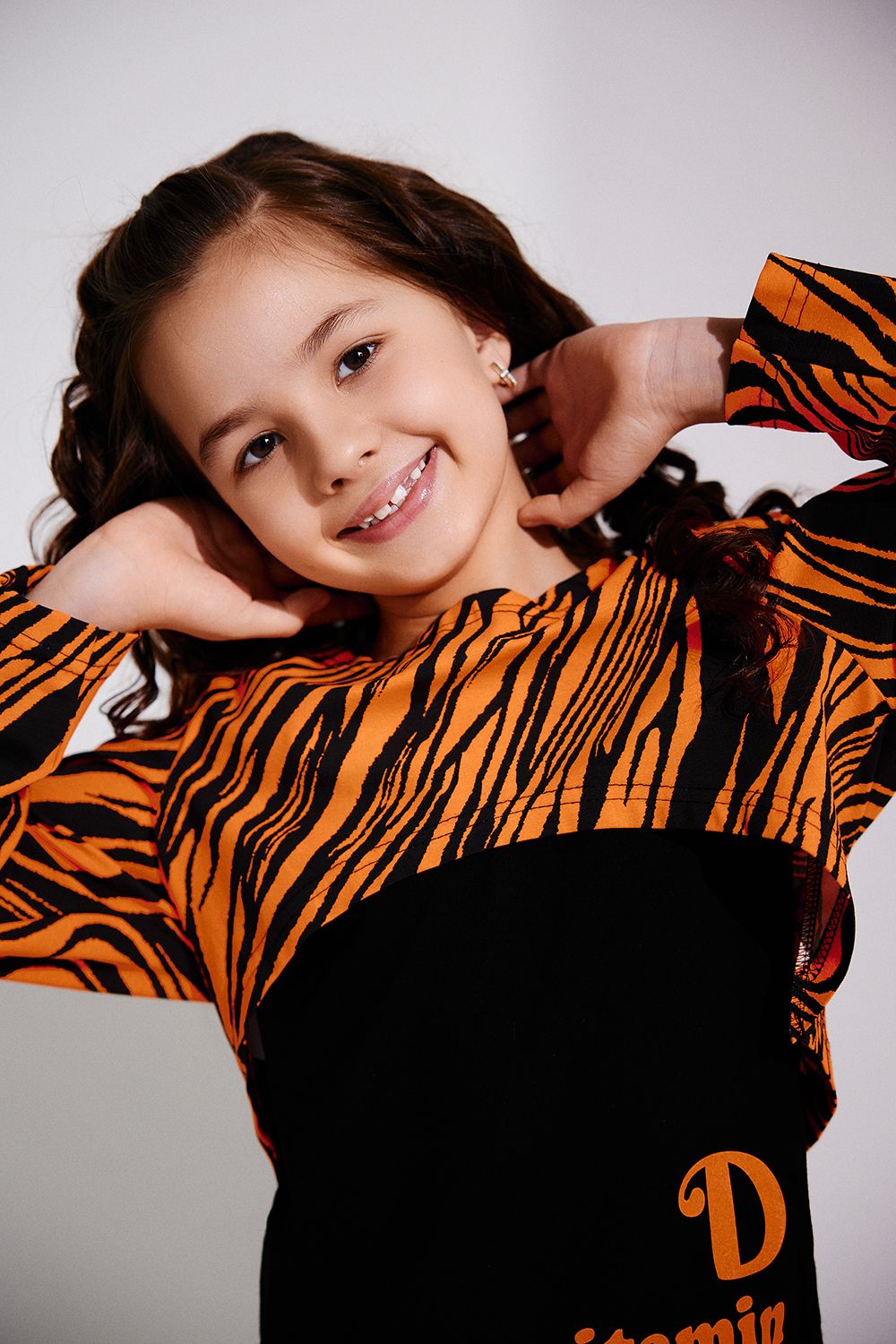 Стильный детский спортивный костюм для девочек(весна-лето), состоит из майки, лонгслива и брюк (джоггеров). Лонгслив укороченный свободного кроя с длинными рукавами, дополняется удлинённой майкой с ярким печатным принтом. Штаны - джоггеры свободного кроя на широком эластичном поясе. На передних половинках брюк накладные карманы с клапанами. Боковые швы и низ клапанов оформлены ярким кантом. Комфортный костюм, удобен в носке и подойдет на каждый день для повседневного использования, активного отдыха и спорта. Рекомендована деликатная стирка не выше 30 градусов. Состав по тканям: футер 2-х нитка с лайкрой хлопок 72%, ПЭ 20%, эластан 8%, кашкорсе: вискоза 92% лайкра 8%; кулирка с лайкрой: хлопок 95% лайкра 5%