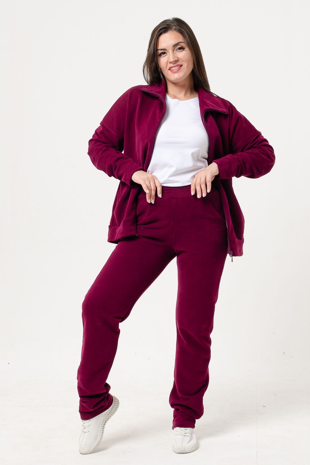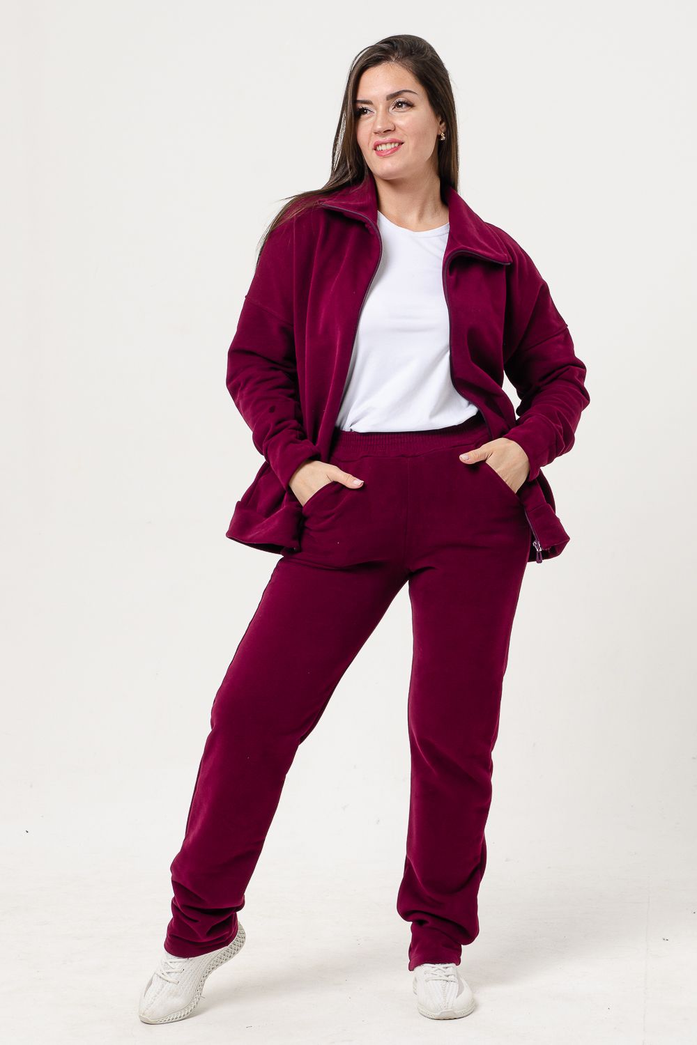 Костюм женский выполнен из ткани футер 3-х нитка петля качество пенье с эффектом soft brush (мягкая кисть). Это новое направление в обработке ткани, что придает мягкость байки и легкость бархата. Костюм состоит из кофты на молнии и брюк с карманами. Кофта на поясе, со спущенным рукавом, с карманами. Костюм прекрасно подойдет для прогулок, спорта и отдыха. В нем прекрасно будете себя чувствовать, а обработка ткани soft brush добавит вам мягкости, комфорта и элегантности. Для удобства подбора размеры смежные: 44-46; 48-50; 52-54; 56-58; 60-62.