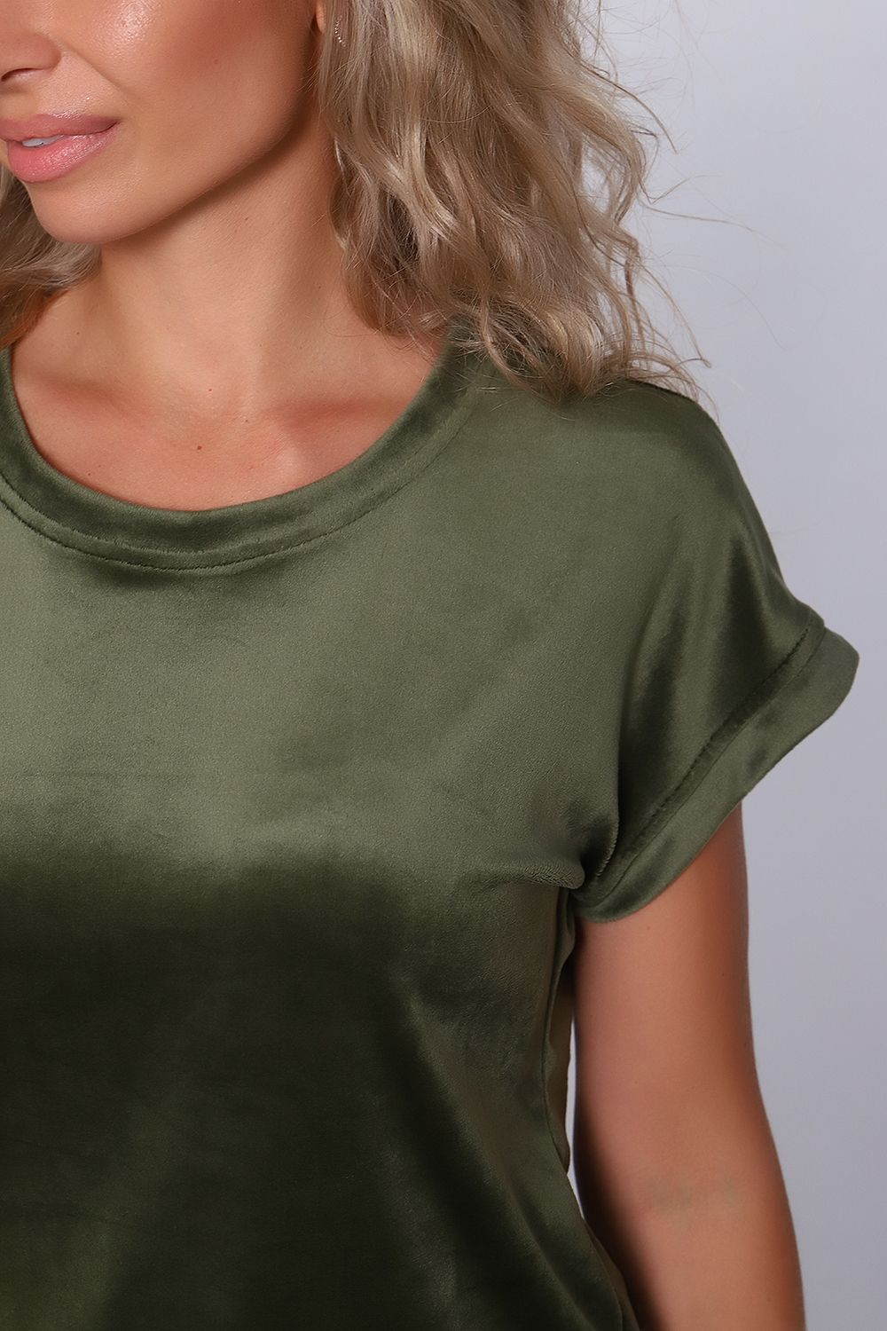 Стильный женский костюм - пижама с шортами из велюра. Футболка со спущенным цельнокроеным плечом полуприлегающего силуэта. Горловина и низ рукава отделаны обтачкой. Короткие классические шорты на широкой резинке с атласным декоративным бантиком по центру. Велюровое полотно имеет нежную и мягкую фактуру. Домашний костюм хорошо смотрится, создает привлекательные блики. Удобный комплект устойчив в процессе носки, не садится, практически не мнется и не растягивается. Рекомендованная стирка не выше 30 градусов. Замеры рукава в данной модели указаны от края горловины, обхват талии в шортах - в собранном резинкой виде. В таком домашнем костюме, Вы почувствуете себя королевой!