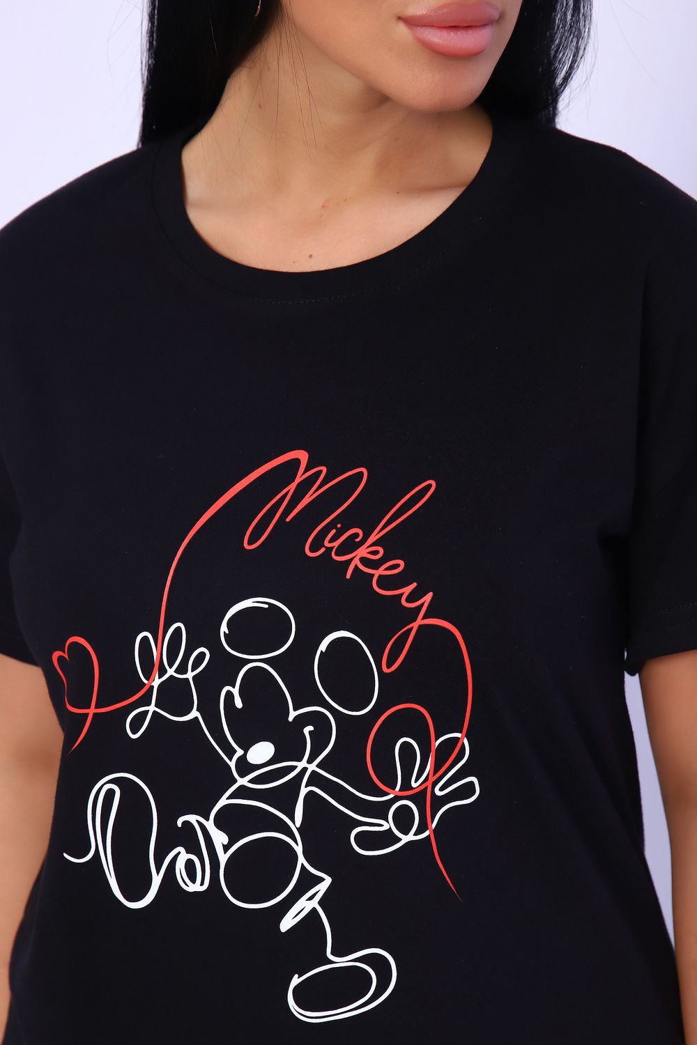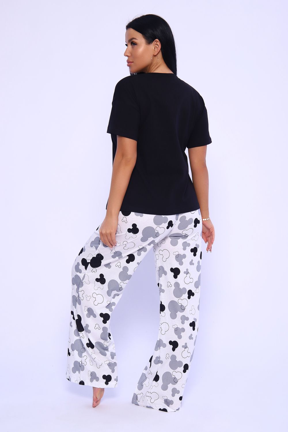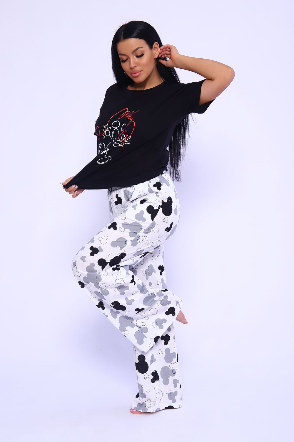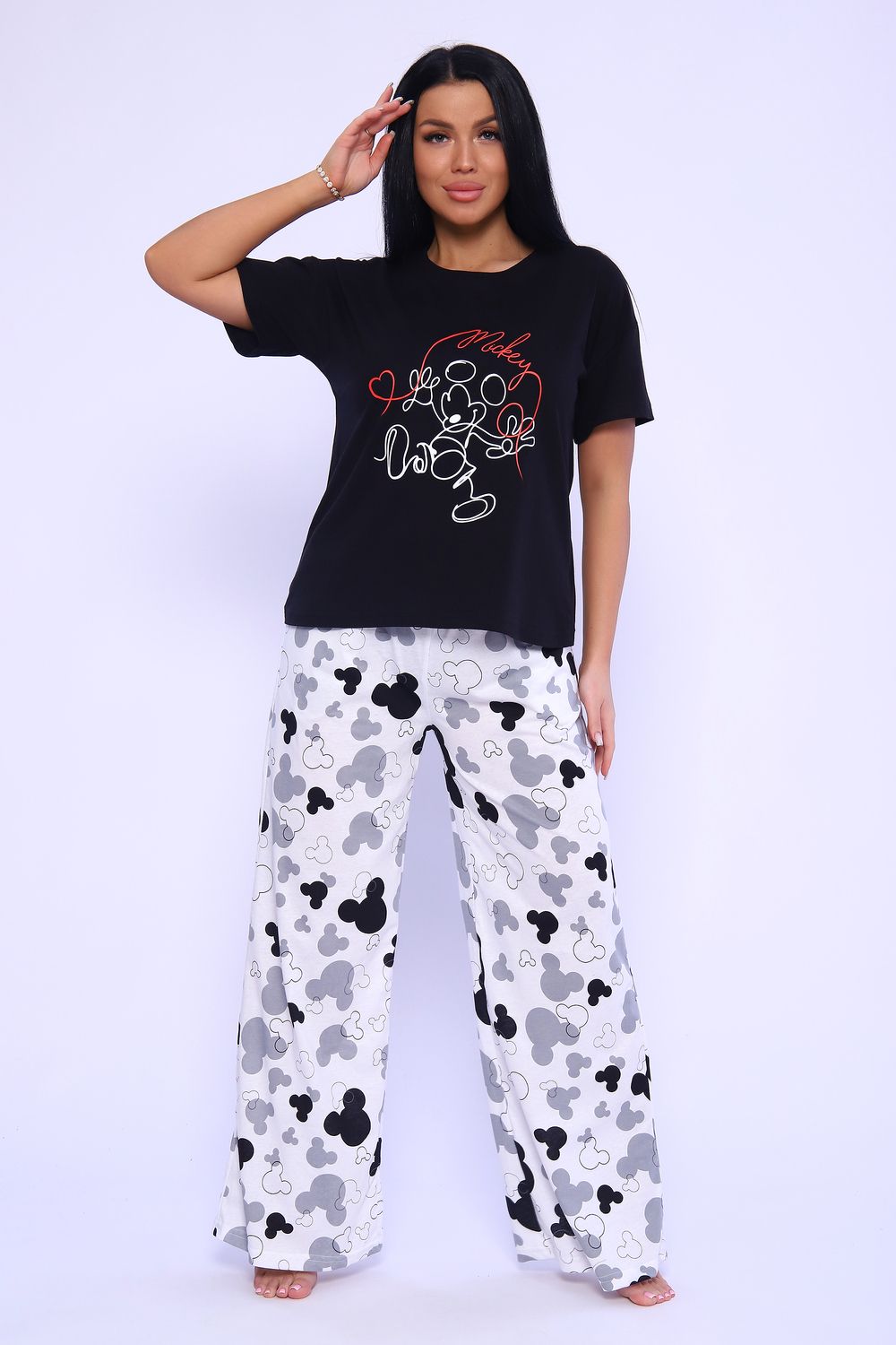 Женский домашний костюм-пижама, состоящий из футболки и брюк Микки из трикотажного полотна 100% хлопка. Приятный дышащий материал идеален для изготовления домашней одежды. Футболка свободного кроя, с круглой горловиной и втачным спущенным коротким рукавом, в которой будет одинаково приятно спать и заниматься домашними делами. Оригинальный, яркий принт обязательно поднимет настроение. Брюки прямого силуэта свободного кроя, с карманами в боковых швах. Мягкий удобный пояс на резинке не перекрутится, т.к отстрочен на поясной машине. Пижамка не изменит свой внешний вид после стирки при соблюдении рекомендаций по уходу и будет долго вас радовать. Отличный подарок для всех девушек и женщин на любой праздник!