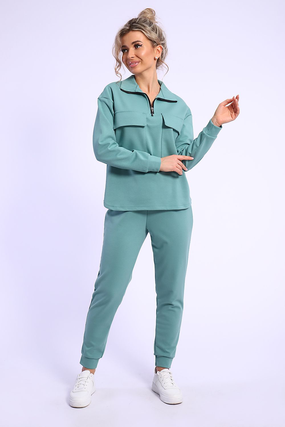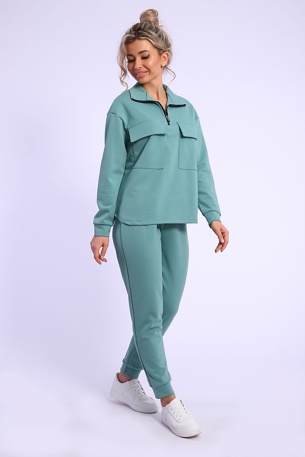 Костюм женский брючный с анораком. Выполнен из высокотехнологичной ткани нового поколения, которая используется для производства спортивной одежды - коттонфит. Анорак свободного прямого силуэта со спущенным плечом, рукав на манжете из основного материала, воротник - стойка на молнии, с накладными нагрудными карманами, низ анорака фигурный - полукруглый. Брюки спортивные - джоггеры, без карманов. Практичный костюм женский с брюками подойдет взрослым женщинам, девушкам и подросткам. Одевайтесь красиво и будьте в тренде современной моды.