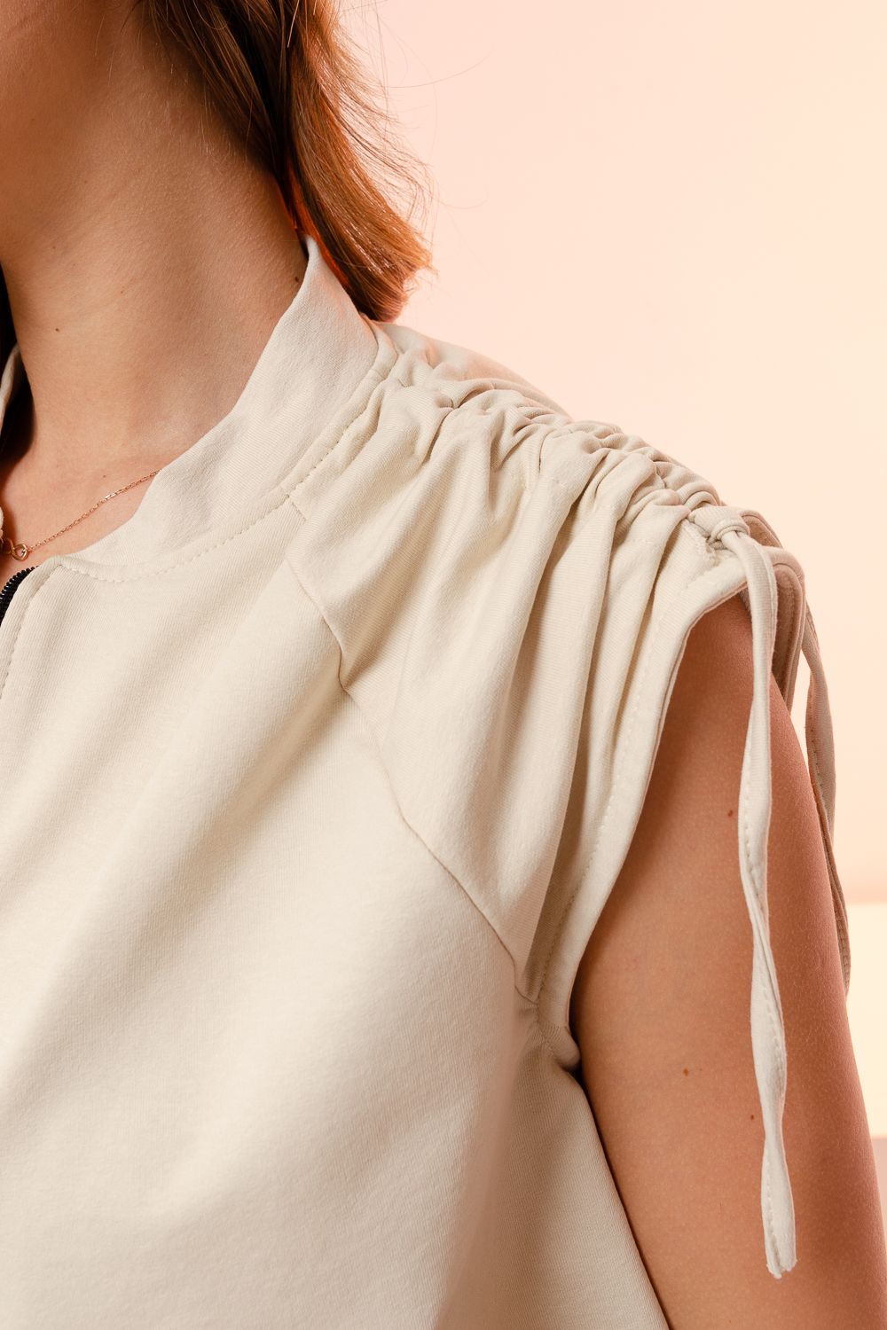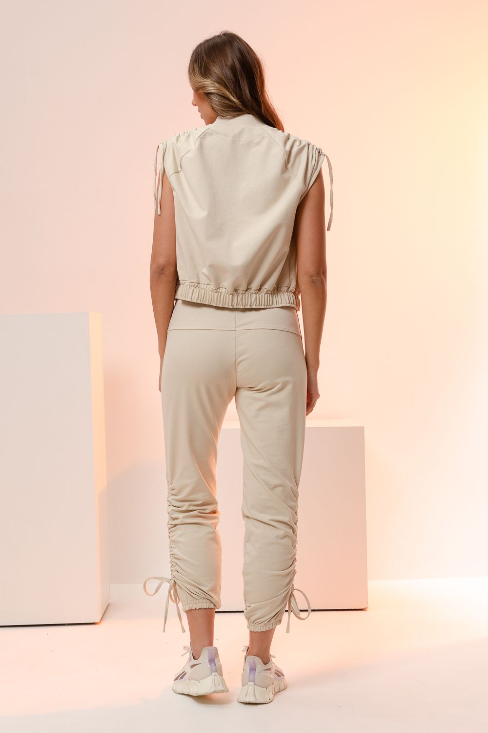 Стильный женский костюм с драпировкой. Однотонный вариант костюма – двойка - неотъемлемая частью женского гардероба. Модель подойдет для прогулок и повседневной носки. Материал хорошо пропускает воздух. Крой жилета укороченный. Длину брюк и плеча можно регулировать при помощи завязок.