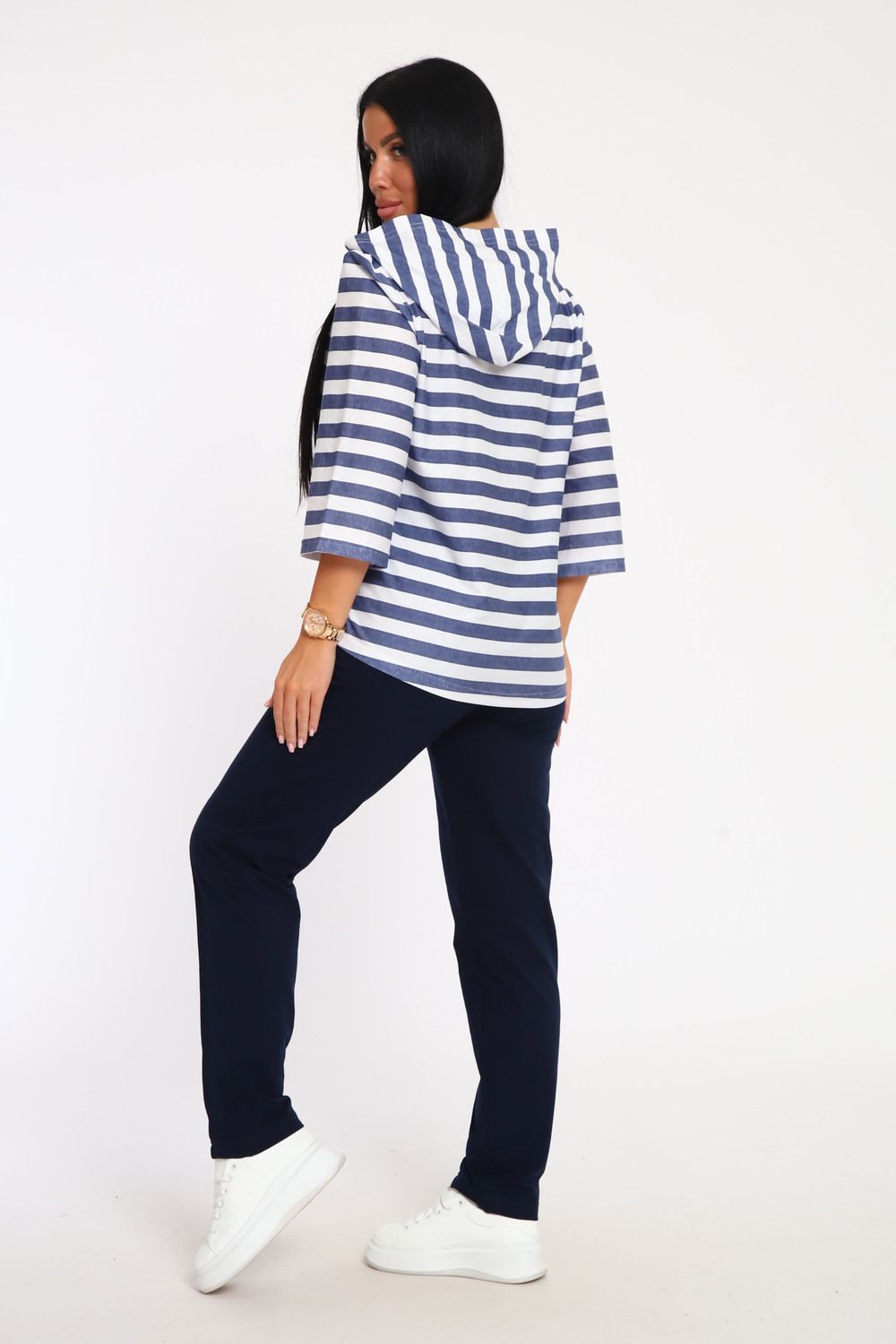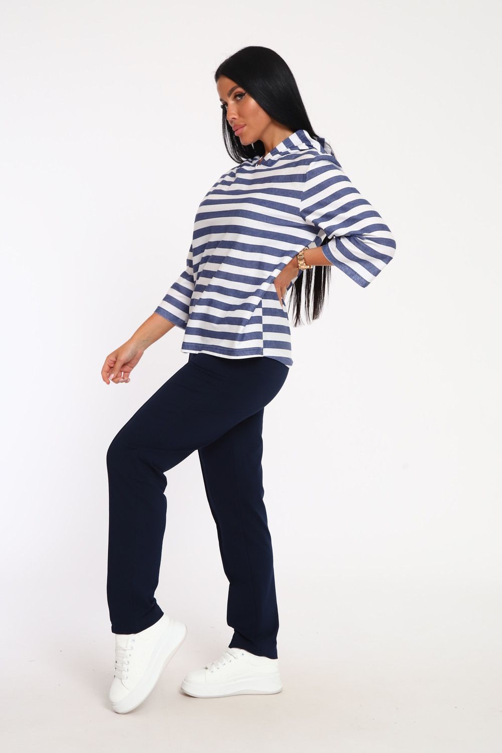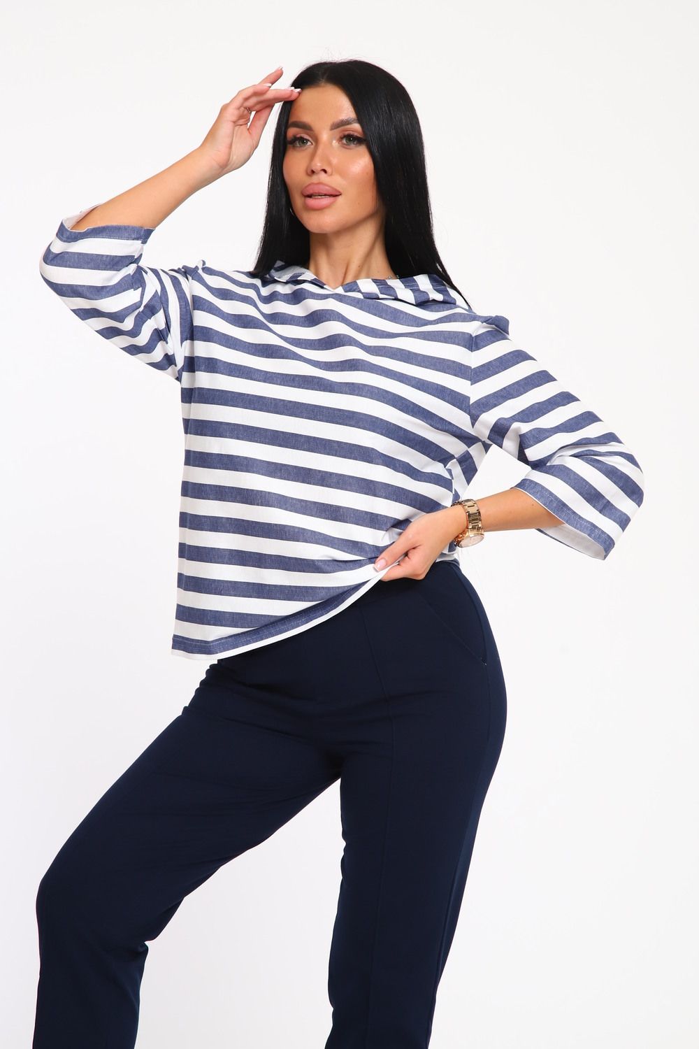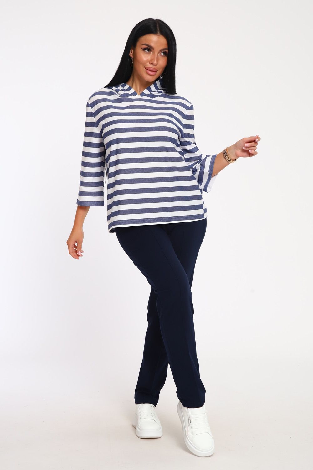 Представляем Вашему вниманию современный костюм, состоящий из брюк и футболки с капюшоном. Футболка в полоску –это модный тренд уже несколько сезонов подряд Футболки с капюшоном-универсальная вещь, которая обязательно должна присутствовать в гардеробе любой девушки и женщины. В сочетании с такой футболкой можно наработать огромное количество образов, как на каждый день ,так и для различных мероприятий. Обожающие эксперименты девушки и женщины могут сочетать футболку с классическими брюками, чтобы соответствовать экстравагантному стилю спортшик. Наша модель брюк с отстроченной стрелкой спереди, двумя боковыми карманами, поясом на резинке отлично подходит для этого. Добавить к стильному луку можно туфли на высоком каблуке или стильные ботинки на толстой подошве .Женщина будет выглядеть независимо и очень модно. Наряд можно дополнить яркими аксессуарами и образ уже подойдет для выхода в люди. Футболка выполнена из 100%хлопка.В ней будет комфортно в любую погоду .Брюки выполнены из трикотажного полотна .которое сохранит свой первоначальный вид на долгое время В этом костюме вы будете выглядеть эффектно и приковывать к себе взгляды. Костюм имеет большую размерную сетку с 48 по 60размер.