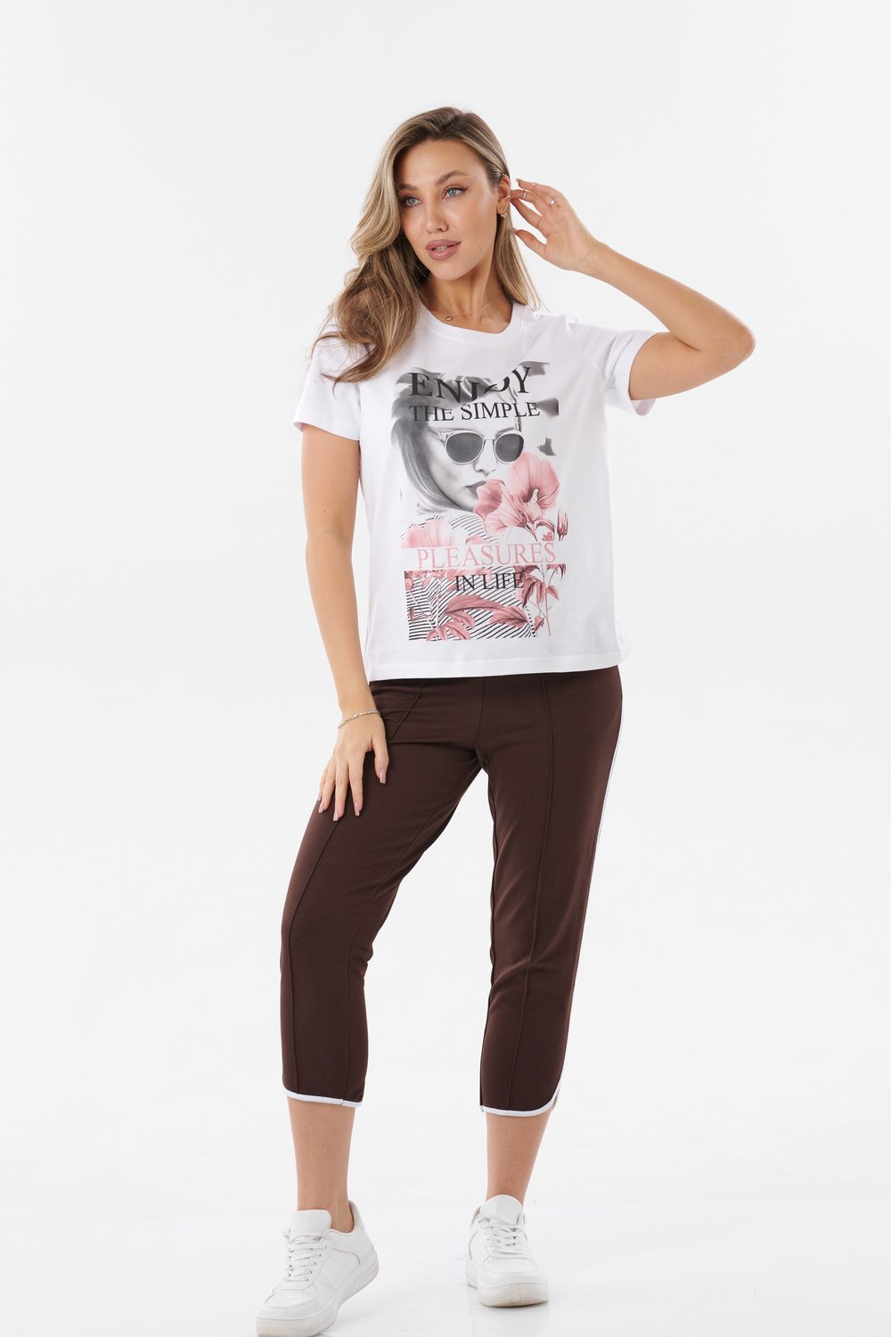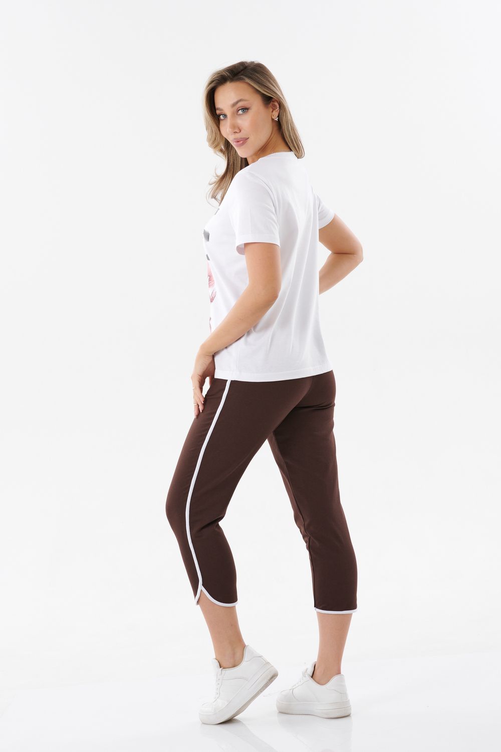 Костюм женский – это стильный и идеальный предмет гардероба, идеально подходящий для дома и отдыха на любой период. Комплект состоит из футболки с красочным принтом и бриджи в контрастном цвете. В составе ткани хлопок, лайкра и полиэстер. Хлопковый материал очень комфортный и лёгкий в носке. Бриджи с удобной посадкой придадут вашему образу стильный и модный вид. Базовый современный костюмчик – популярный повседневный выбор на каждый день: на работу, для прогулок, праздников и на дачу. Универсальный стиль позволит вам создавать разнообразные образы, подходящие для любого события.