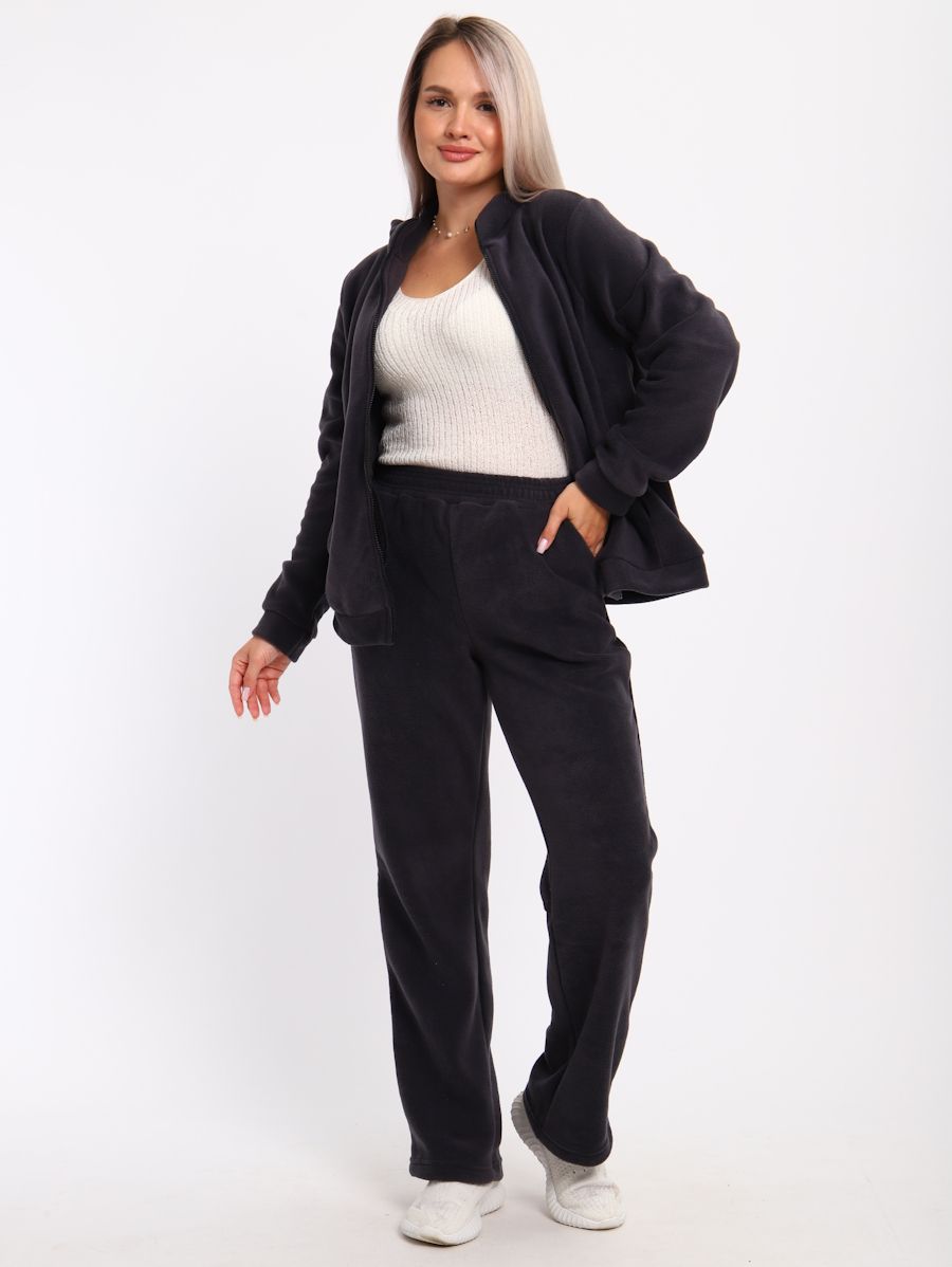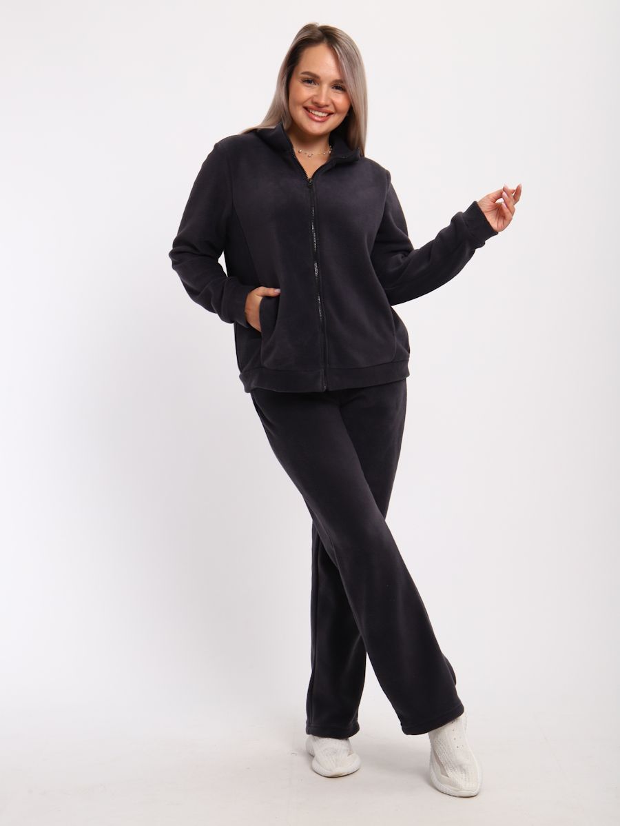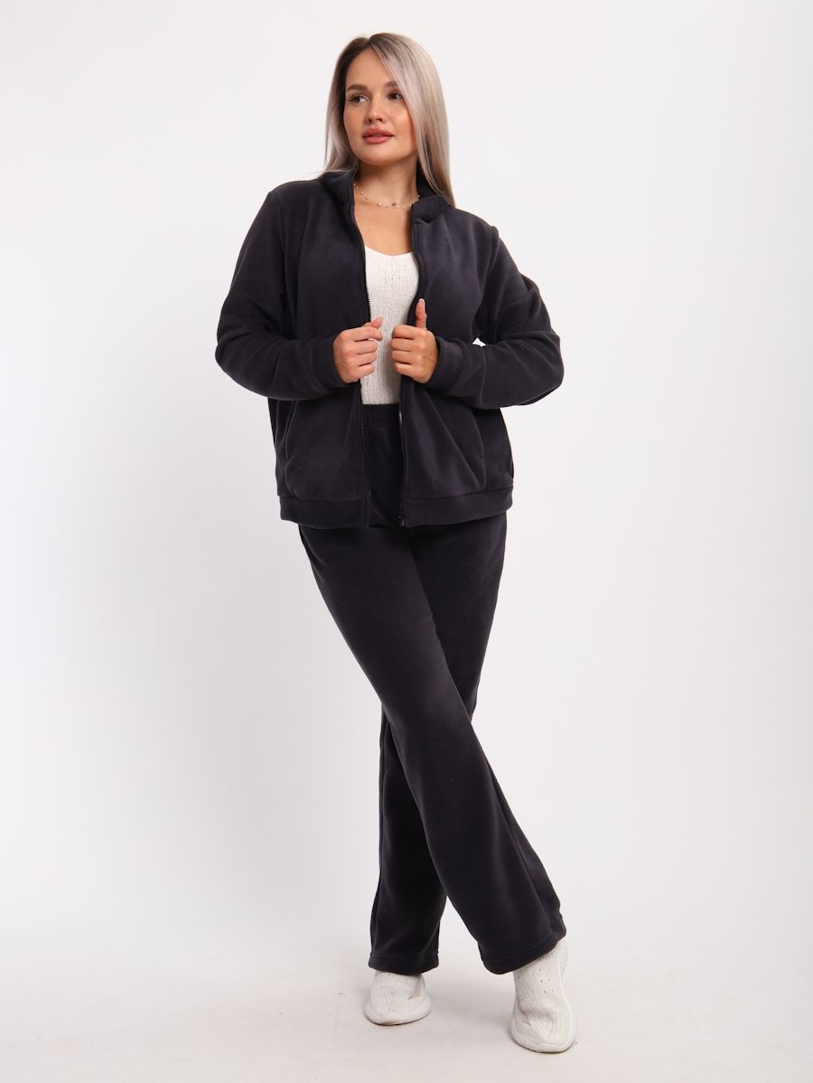 Спортивный костюм женский. Толстовка на молнии с воротником стойка и удобными карманами в рельефе, а также комфортные брюки прямого кроя с боковыми карманами отлично дополняют друг друга. Трикотажный костюм, приятный к телу, подарит Вам уют и тепло в прохладную погоду.