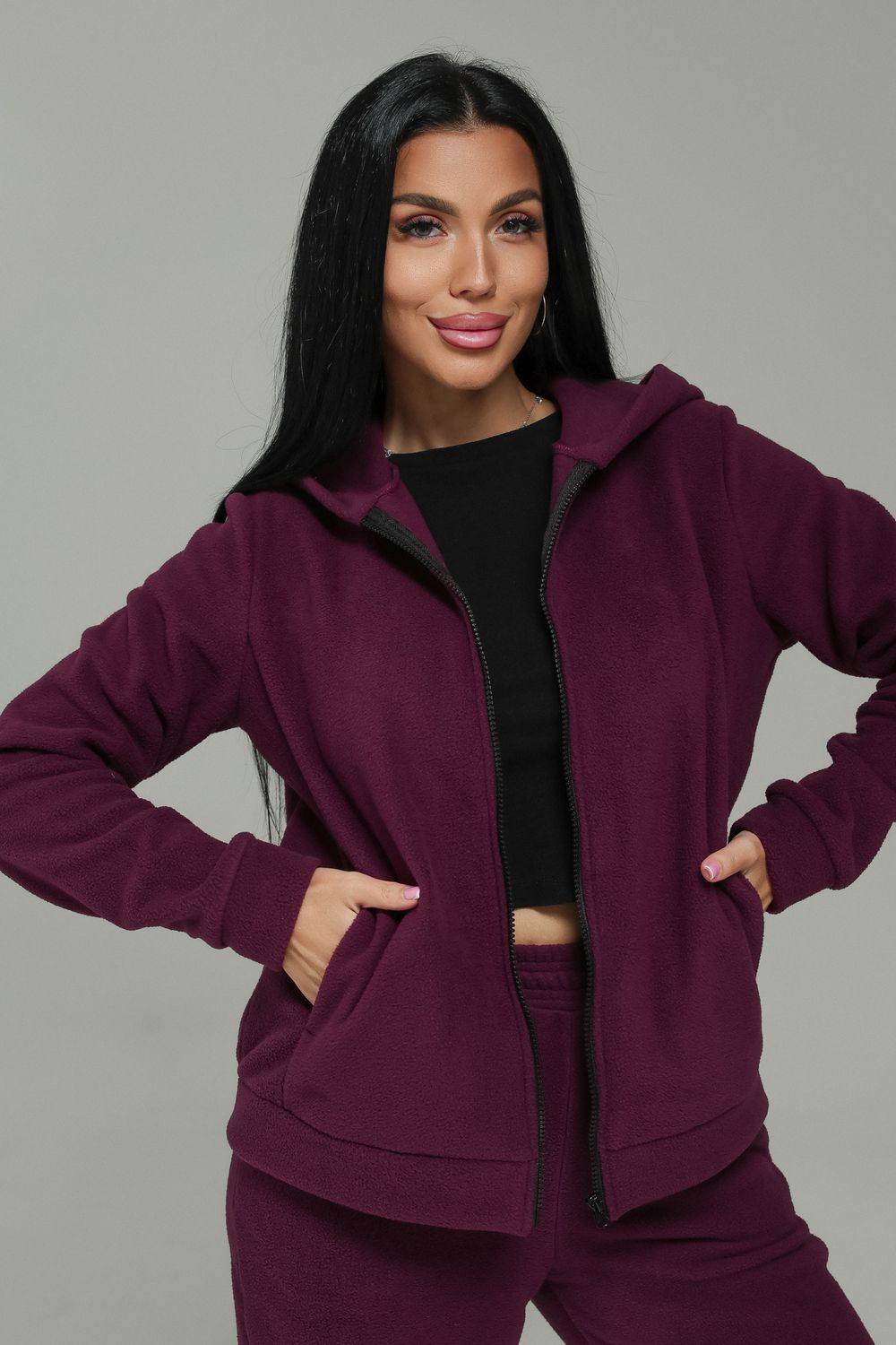 Представляем женский флисовый костюм. Идеальное сочетание комфорта и стильного дизайна. Этот костюм станет вашим верным спутником в прохладную погоду, обеспечивая тепло и уют. Изготовлен из гипоаллергенного флиса, мягкого и приятного к телу. Костюм идеально подходит для занятий спортом ,прогулок на свежем воздухе и повседневной носке. Он не сковывает движений, позволяя вам чувствовать себя комфортно в любую погоду!