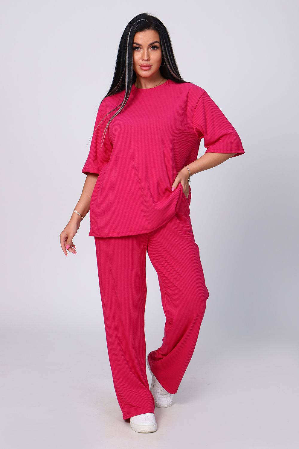 Костюм женский с широкими брюками. Кофта оверсайз удлинённая, рукав до локтя, горловина обработана обтачкой. Брюки длинные, широкие с карманами. Большой размерный ряд. На модели 48 размер.