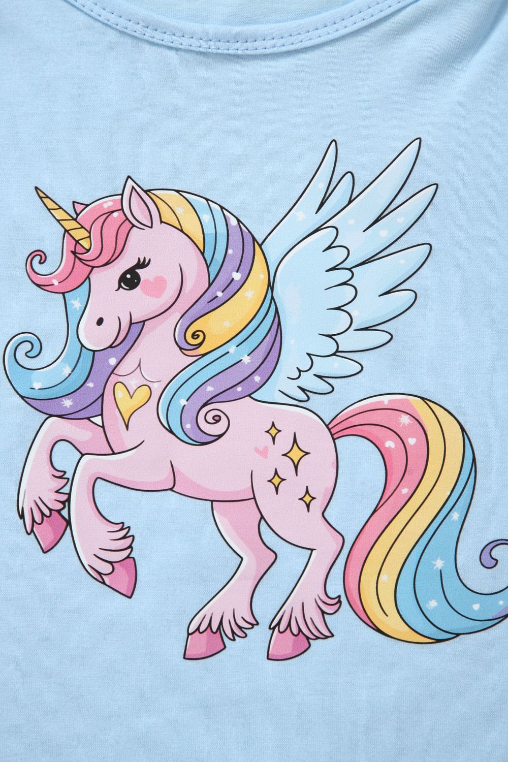 Яркий костюм для маленьких принцесс собран из туники с радужным единорогом и тресс на эластичной резинке шириной 2 см. на талии. Комплект из 100% хлопка, самый удачный вариант для активного ребенка. Туника А - образного силуэта с коротким рукавом и качественной термопечатью по переду. Горловина круглая и достаточно широкая, что позволит ребенку самому без труда надеть и снять тунику через голову. Достаточно разнообразный цветовой ряд, даст возможность выбрать вам костюм по душе. На фото модель представлена в 32-ом размере.