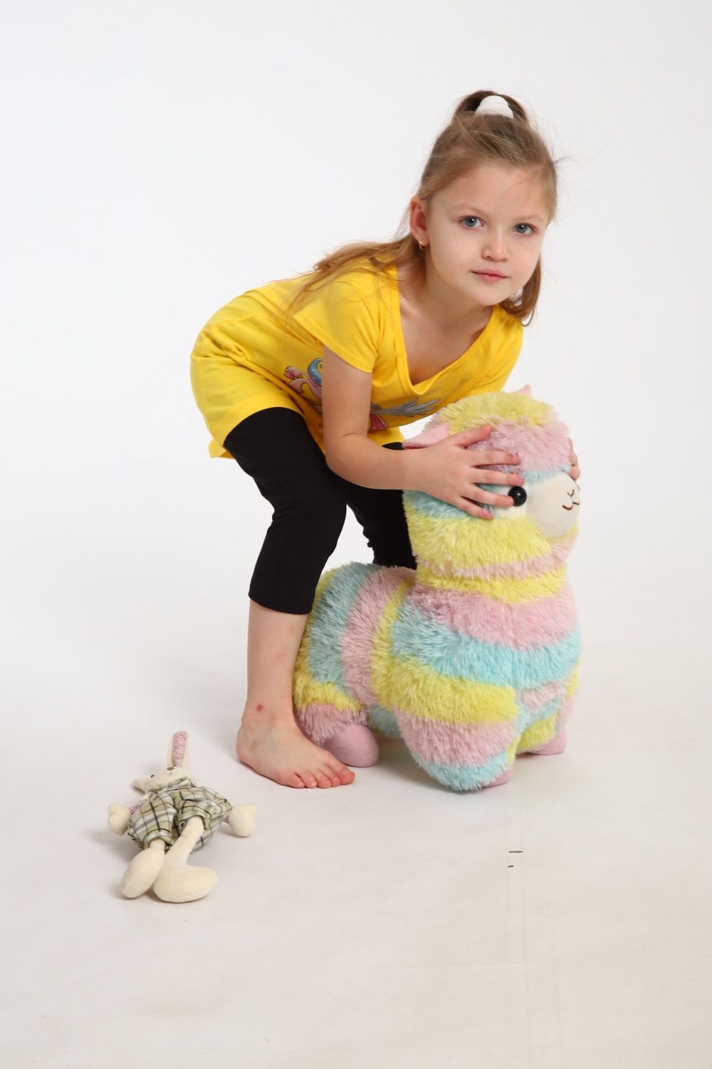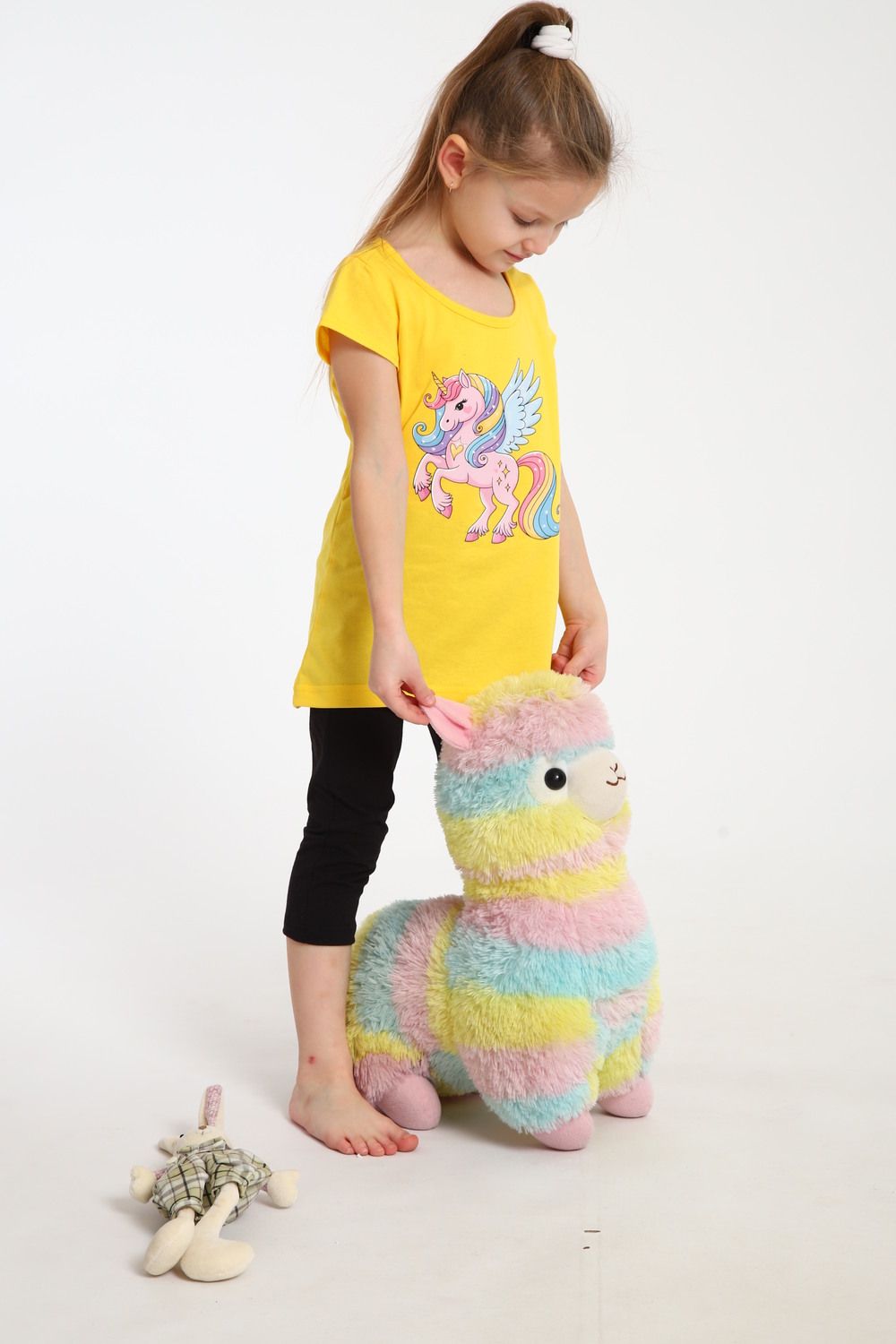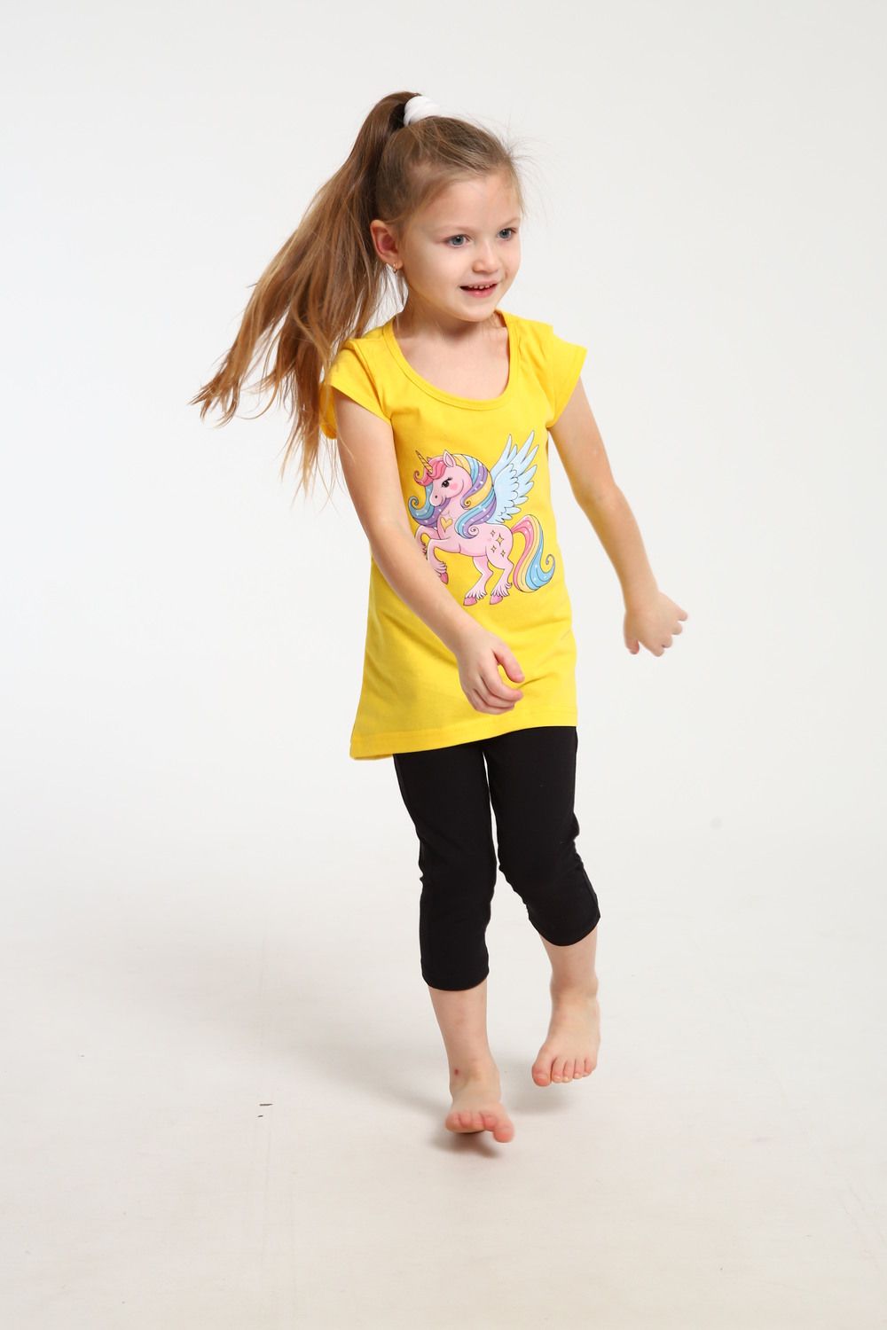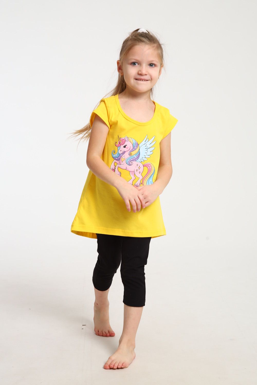 Яркий костюм для маленьких принцесс собран из туники с радужным единорогом и тресс на эластичной резинке шириной 2 см. на талии. Комплект из 100% хлопка, самый удачный вариант для активного ребенка. Туника А - образного силуэта с коротким рукавом и качественной термопечатью по переду. Горловина круглая и достаточно широкая, что позволит ребенку самому без труда надеть и снять тунику через голову. Достаточно разнообразный цветовой ряд, даст возможность выбрать вам костюм по душе. На фото модель представлена в 32-ом размере.