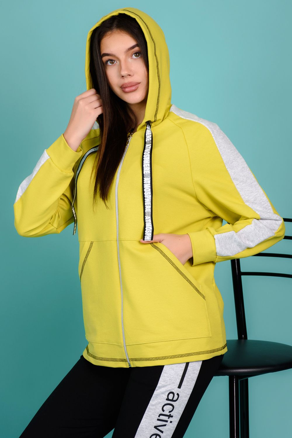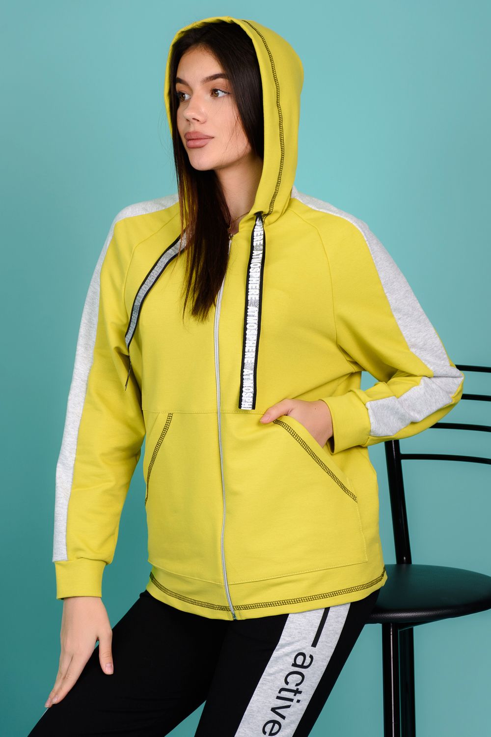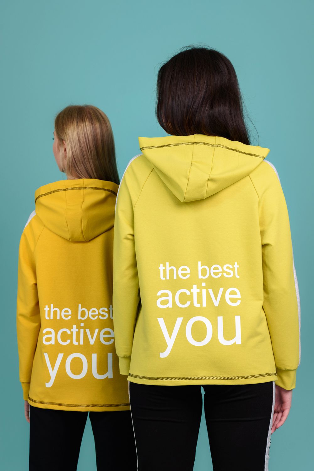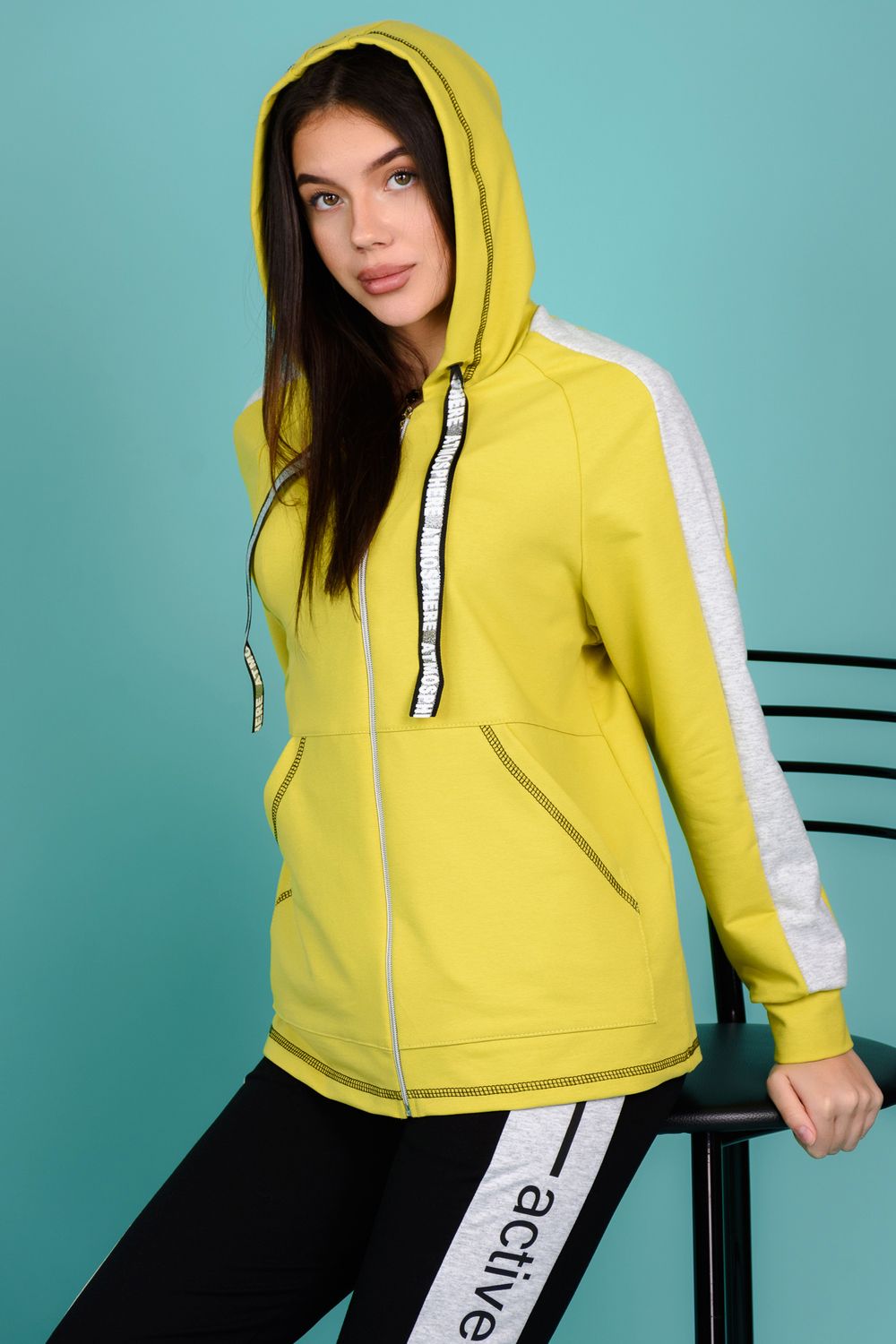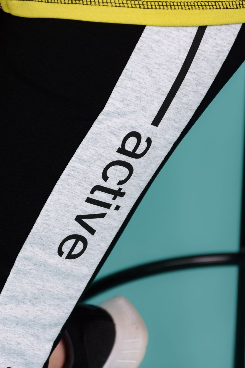 Костюм состоит из толстовки и брюк. Брюки на поясе, с боковыми карманами, с лампасами из отделочного полотна по боковым швам, на резинке по низу. Толстовка прямая, на молнии, с капюшоном, с карманами "кенгуру", длиной до середины бедра. Рукав реглан, длинный, с лампасами из отделочного полотна вдоль рукава, на манжете.