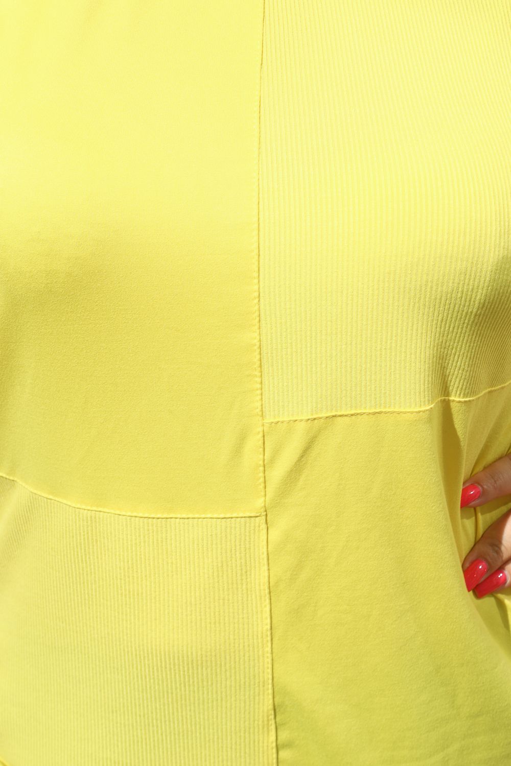 Костюм состоит из футболки и брюк. Футболка прямого силуэта, с округлой горловиной, с удлиненной спинкой, с разрезами в нижней части боковых швов. На полочке расположены вставки из отделочного полотна. Спинка с кокеткой. Рукав короткий, обработанный эластичным манжетом. Горловина обработана эластичной обтачкой. Брюки на поясе, с боковыми карманами. В верхней части передних половинок по шву притачивания пояса расположены складки. На моделях 48 и 52 размеры