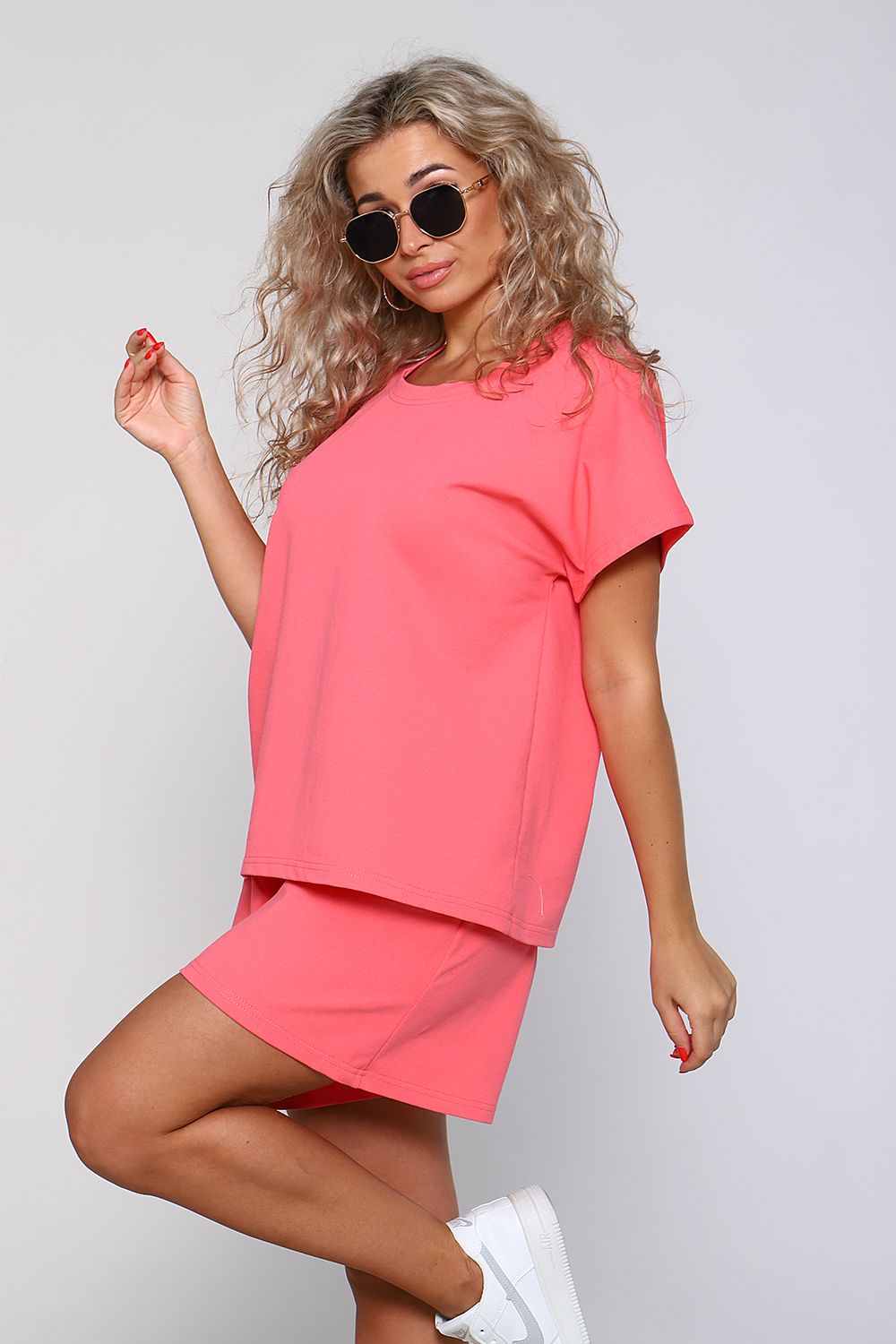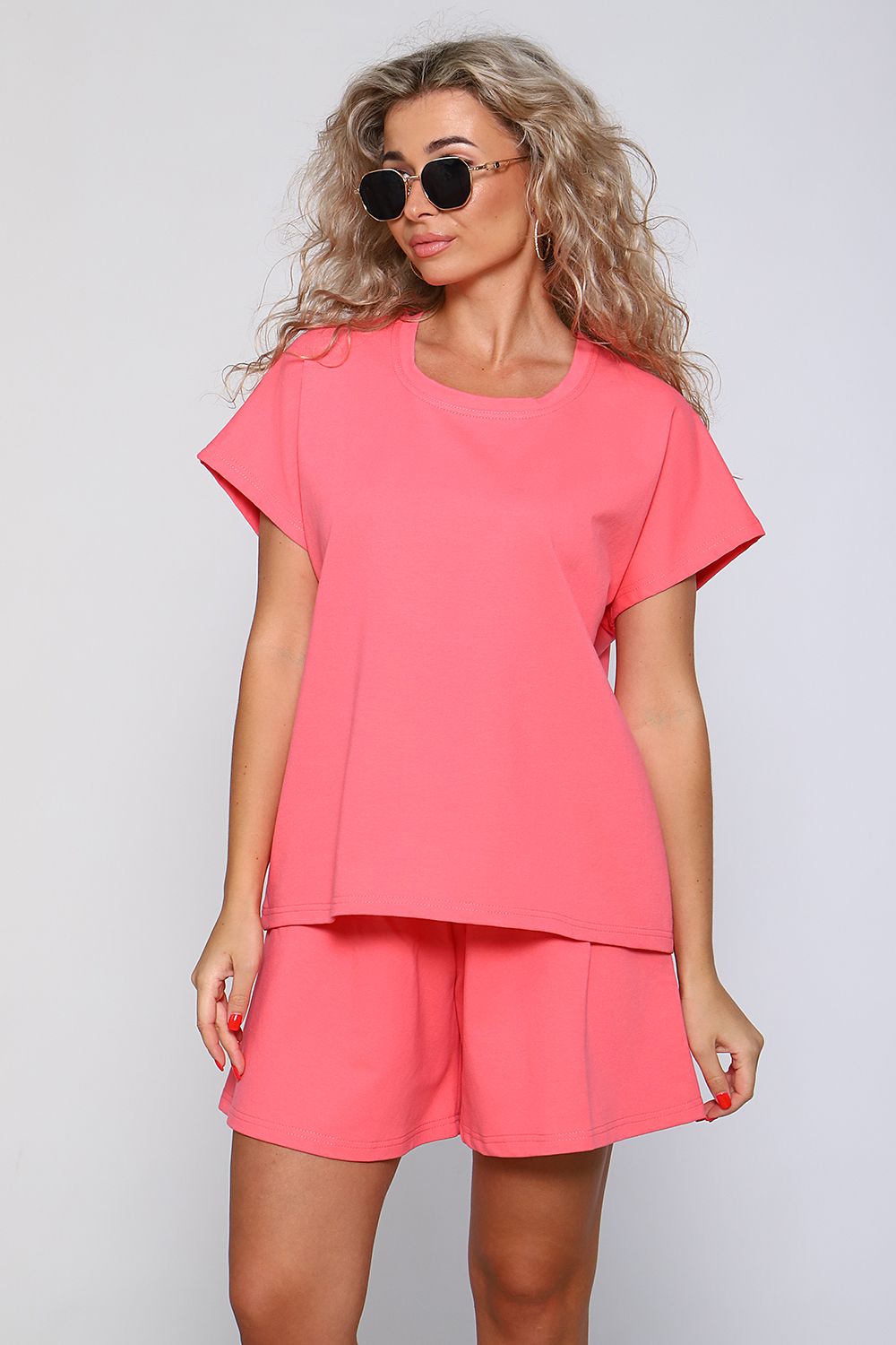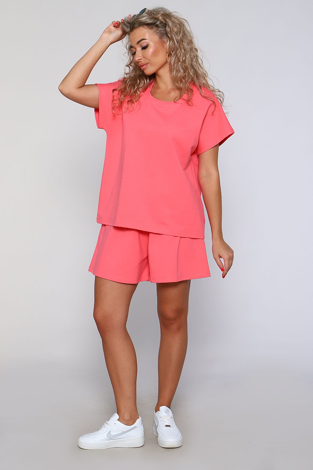 Женский летний костюм с футболкой и шортами. Рукав на футболке спущенный. Пояс шорт обработан на поясной машине. Костюм свободного кроя. Такой костюмчик подойдет для активных прогулок на свежем воздухе, будет незаменим в поездках или в отпуске на море. Отлично впишется в любой гардероб и создадут современный стильный образ на каждый день.
