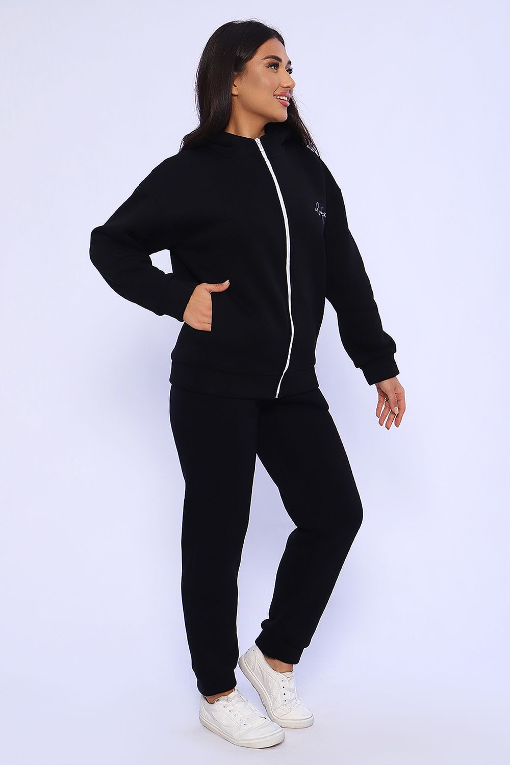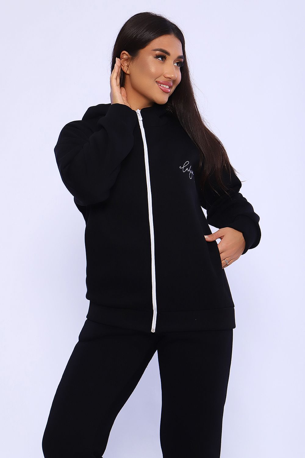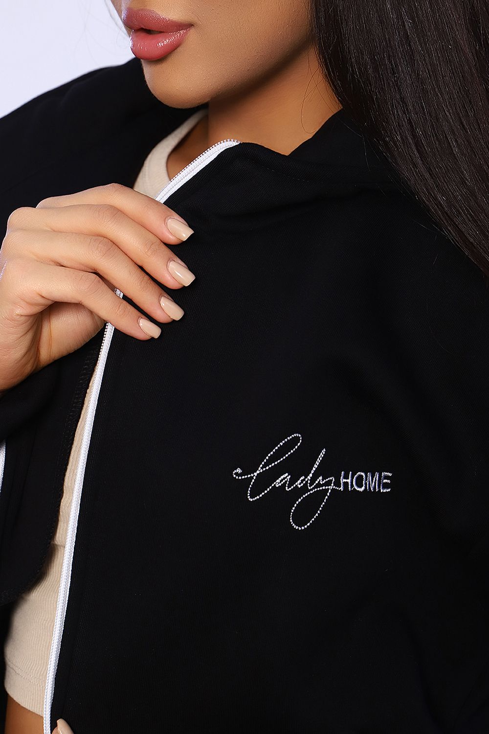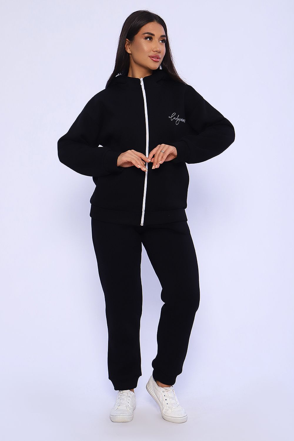 Женский костюм из футера 3-х нитки с начесом. Костюм состоит из толстовки и брюк. Толстовка свободная на молнии с капюшоном, на полочке оригинальная вышивка Lady HOME, по боковому шву в шве карман. Толстовка со спущенным рукавом на манжете. Брюки свободные. По боковому шву карман в шве, низ брюк на манжете. Пояс обработан на поясной машине, что делает брюки практичными при носке – резинка не скручивается. Костюм теплый, удобный, комфортный. Идеальное решение для повседневной носки в прохладную погоду!
