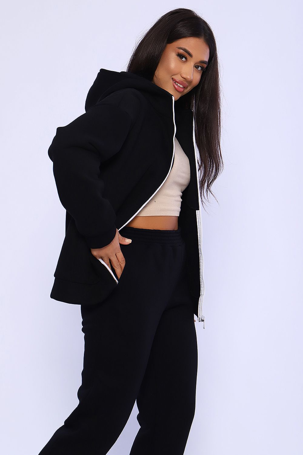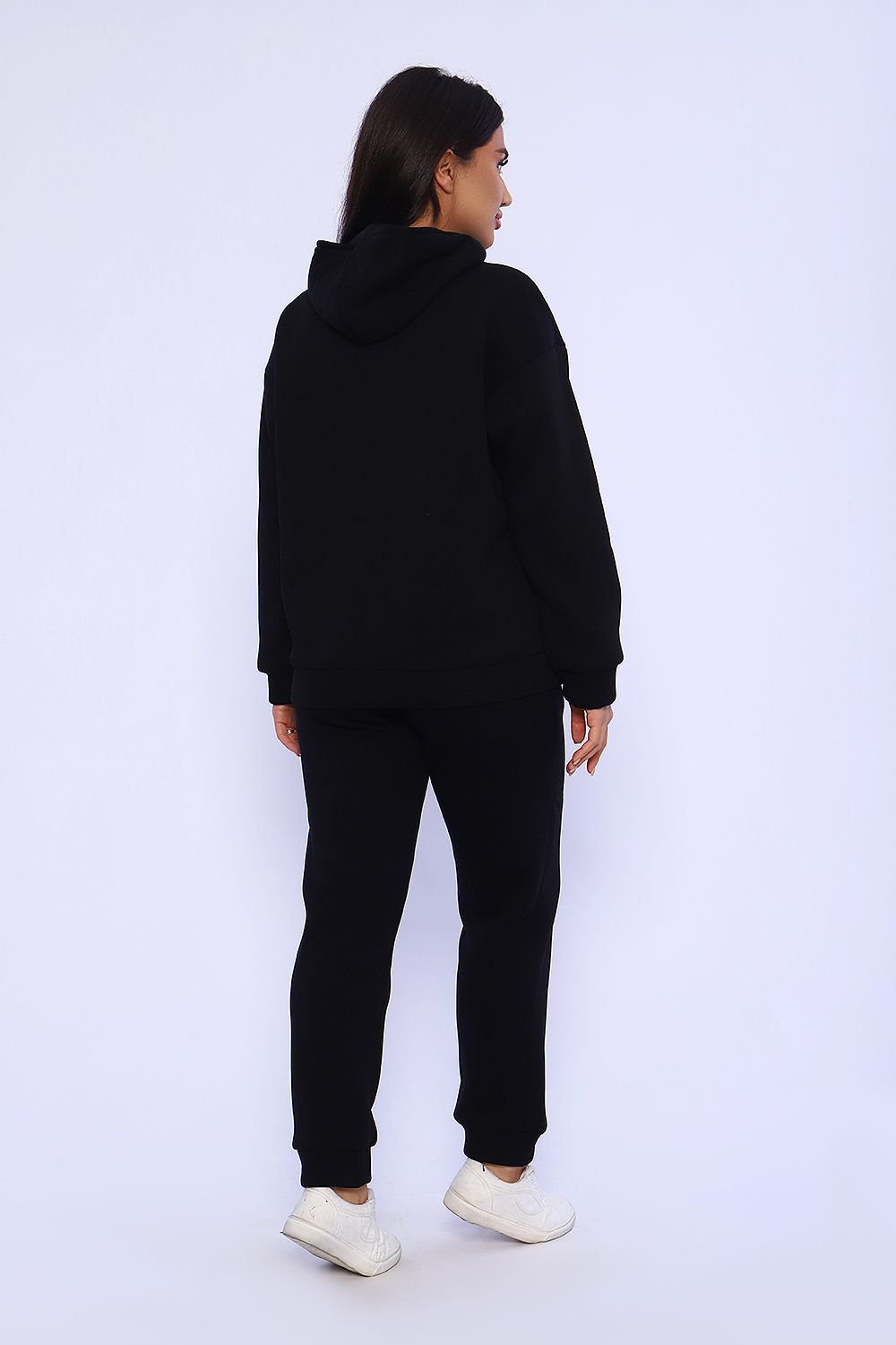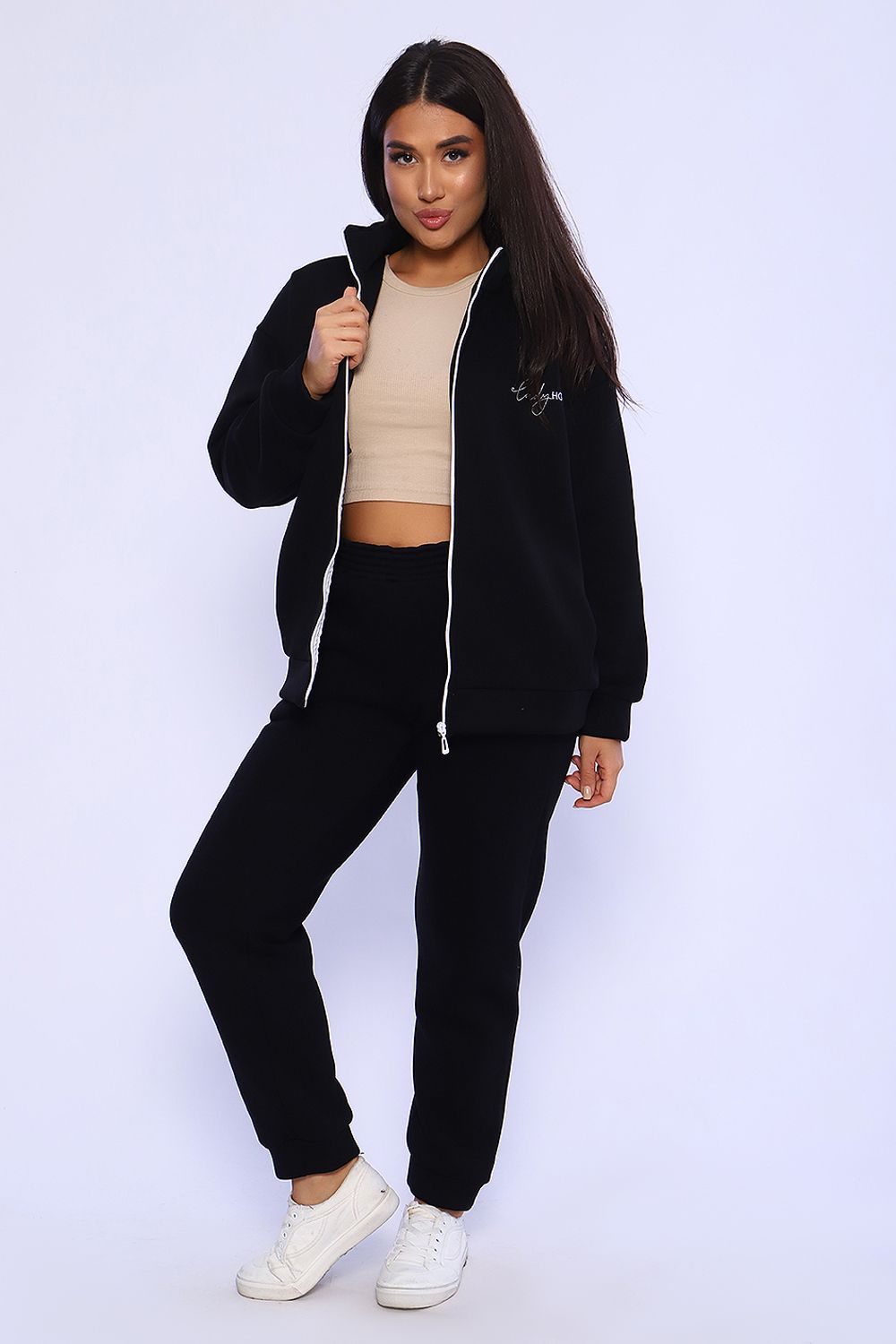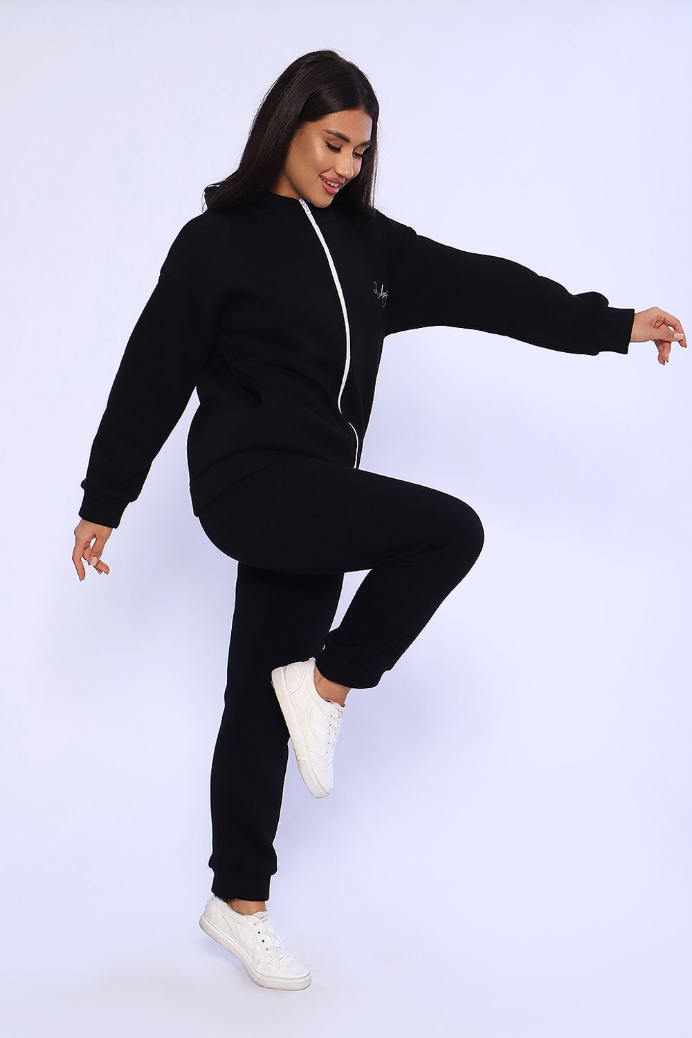 Женский костюм из футера 3-х нитки с начесом. Костюм состоит из толстовки и брюк. Толстовка свободная на молнии с капюшоном, на полочке оригинальная вышивка Lady HOME, по боковому шву в шве карман. Толстовка со спущенным рукавом на манжете. Брюки свободные. По боковому шву карман в шве, низ брюк на манжете. Пояс обработан на поясной машине, что делает брюки практичными при носке – резинка не скручивается. Костюм теплый, удобный, комфортный. Идеальное решение для повседневной носки в прохладную погоду!