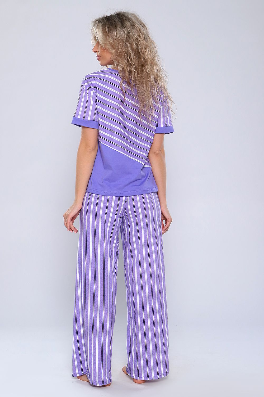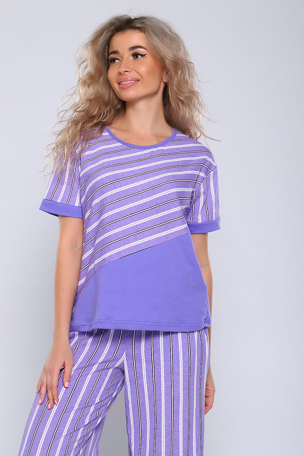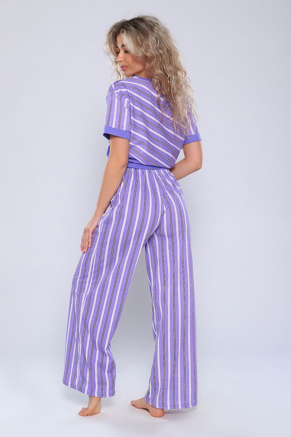Костюм состоит из брюк и футболки. Брюки широкие с карманами. Футболка с короткими рукавами с манжетами. Идеальный повседневный вариант.