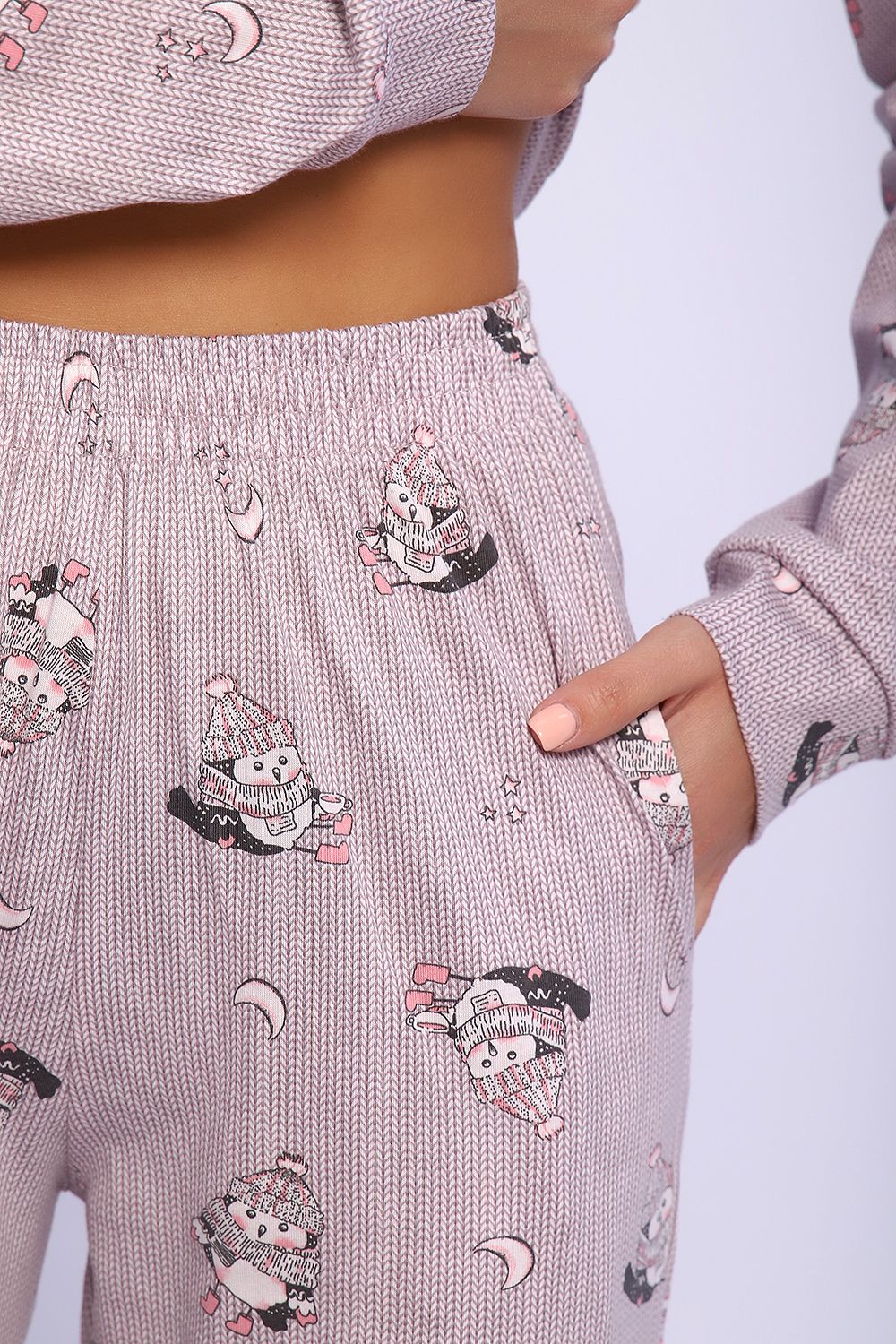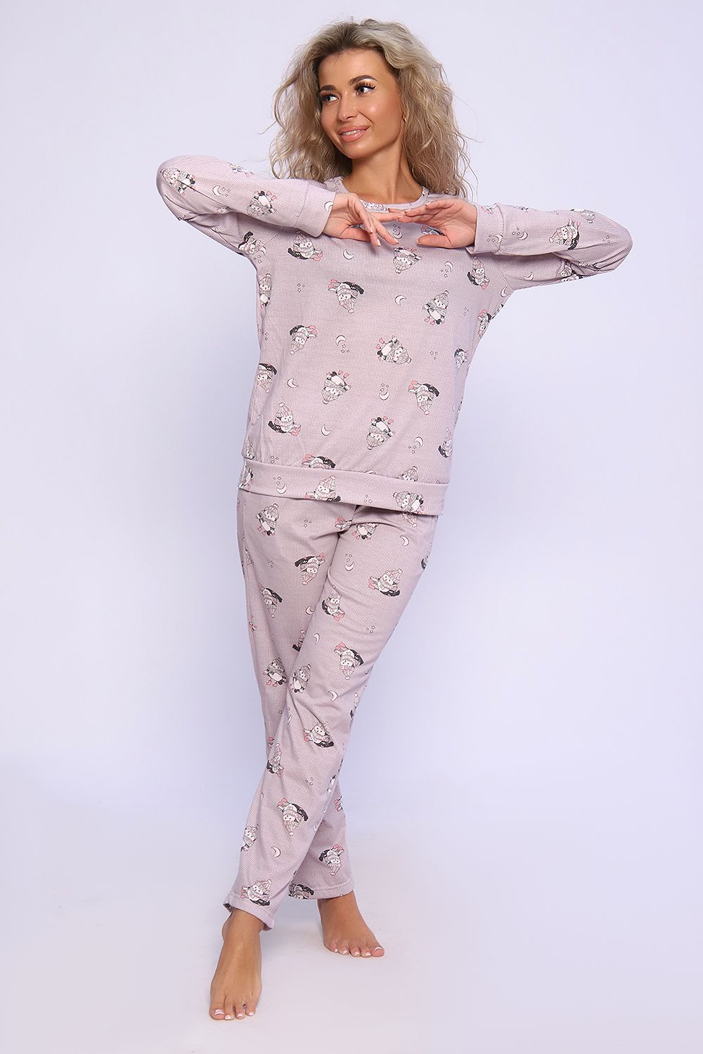 Костюм домашний состоит из кофты и брюк. Брюки свободные с карманами. Кофта с длинными рукавами на манжетах. Низ кофты на манжете. Комфортен для повседневной носки.