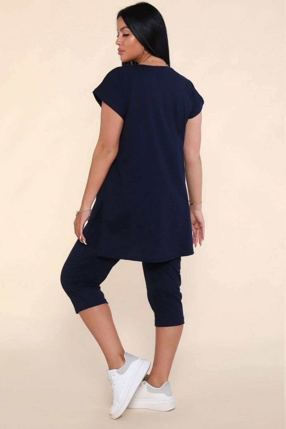 Женский костюм с бриджами из лёгкого и приятного на ощупь материала — это идеальный выбор для тех, кто ценит комфорт и стиль. Состав — 100% хлопок с использованием кулирной глади, что гарантирует отличную воздухопроницаемость и позволяет коже дышать даже в тёплую погоду.