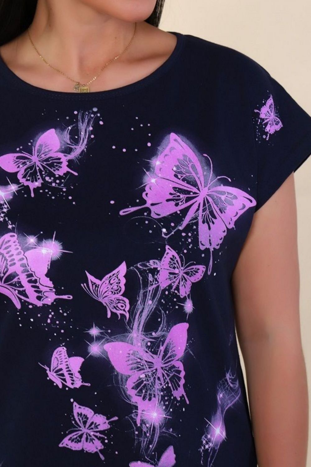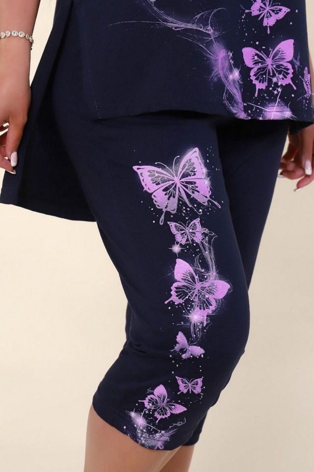 Элегантный анималистический принт в стиле Neo butterflies придаёт комплекту уникальность и делает его ярким акцентом в гардеробе. Темно-синий цвет изделия является универсальным и легко комбинируется с разнообразными аксессуарами и обувью, что позволяет создавать различные образы на каждый день.