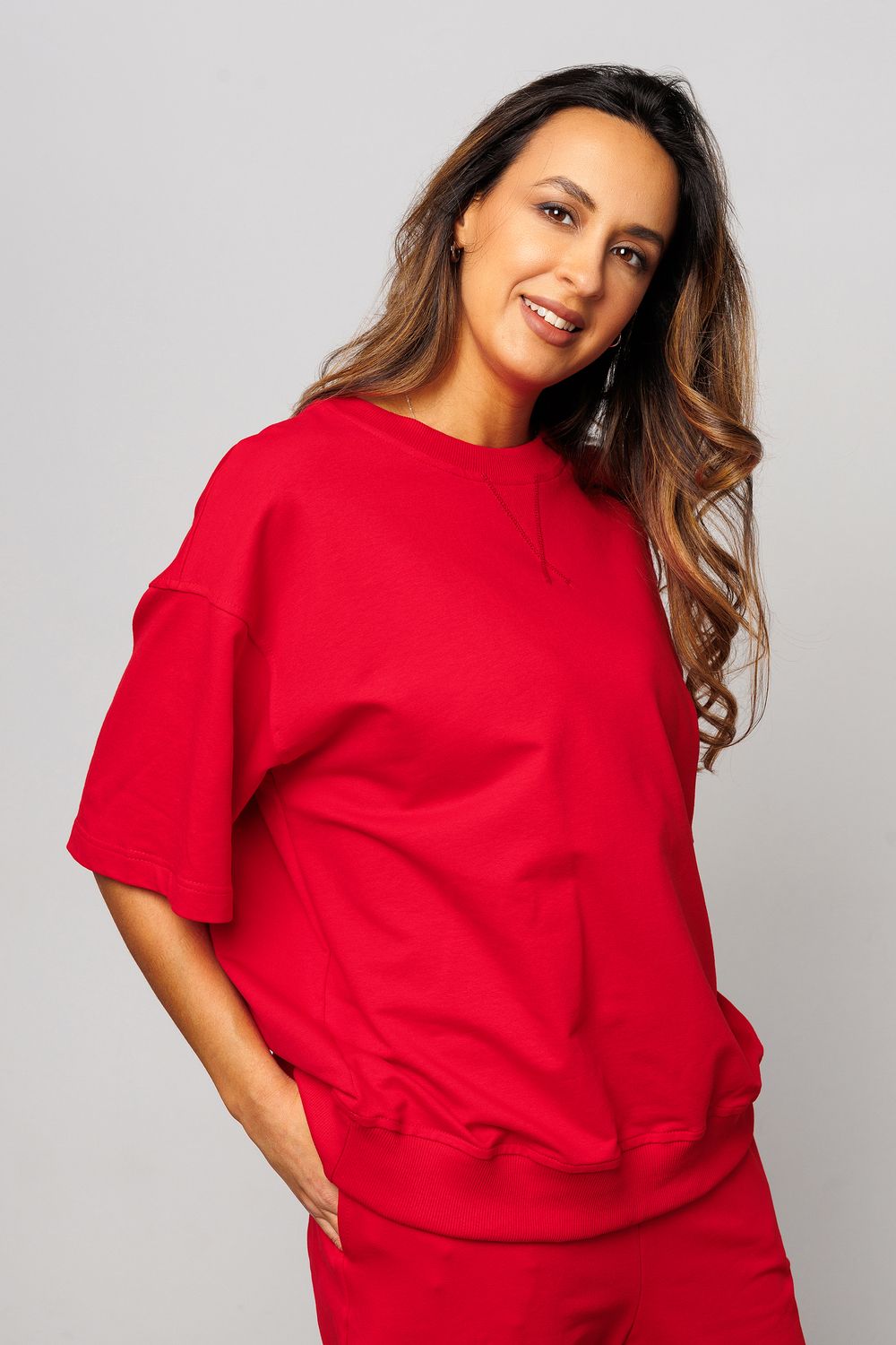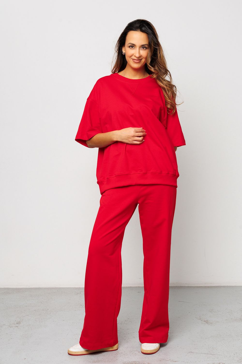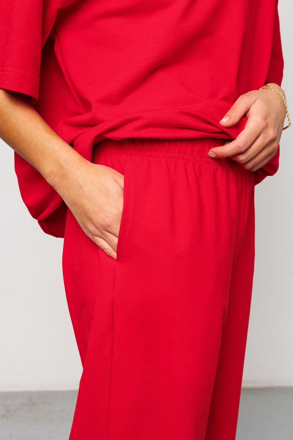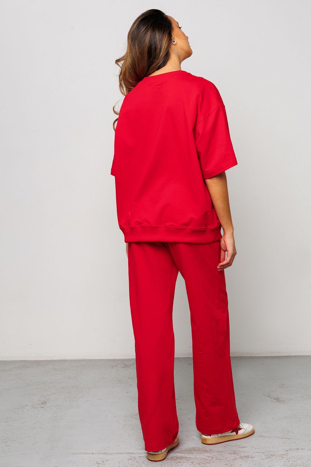 Костюм женский Raposa - это идеальное сочетание комфорта и стиля, созданное специально для современных женщин, ценящих практичность и удобство. Этот брючный костюм, выполненный из дышащего футера двунитка премиум качества, подарит вам ощущение легкости и свободы движений в течение всего дня. Состав ткани - 95% хлопка и 5% лайкры - обеспечивает приятную тактильную текстуру и мягкость. Модель брюк палаццо - широкие, с прорезными карманами, создает актуальный образ. Футболка с рукавом 3/4 дополняет комплект, делая его универсальным для различных ситуаций. Комплект спорт шик представлен в красном цвете, что позволяет легко комбинировать его с другими предметами гардероба и создавать нарядный праздничный вид каждый день. Благодаря своей универсальности, этот костюм y2k уместен для дома, для фитнеса и зала, прогулок или встреч с друзьями. Модель оверсайз с резинкой на талии подходит для полных женщин плюс сайз больших размеров до 58 и 60 и для беременных. Комплект со свитшотом и прямыми штанами подойдет для девочки подростка для школы, он подчеркнёт индивидуальность и скорректирует возможные недостатки фигуры. Удлиненная по спинке кофта великолепно смотрится на высоких и невысоких девушках. Этот наряд с брюками и однотонной футболкой станет незаменимым спутником в летние и весенние дни, его можно надевать как офисный деловой вариант и выглядеть безупречно.