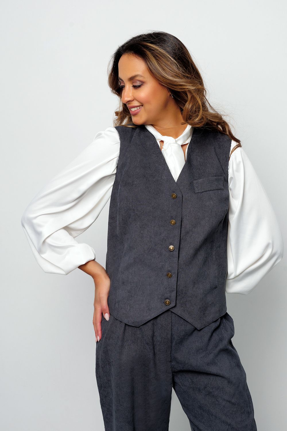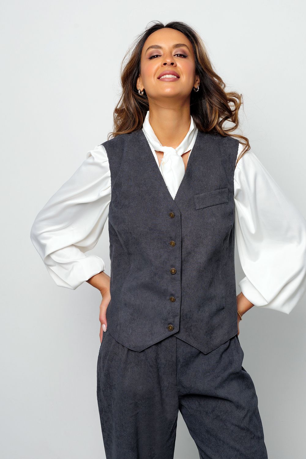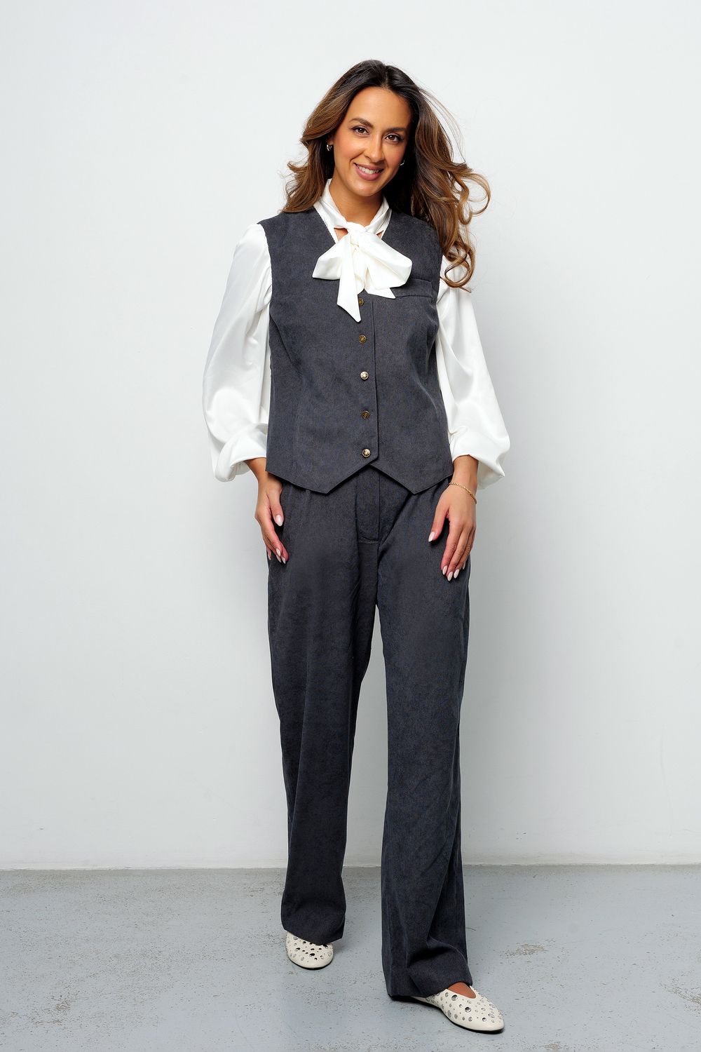 Костюм брючный вельветовый с жилеткой 399GRY - серый