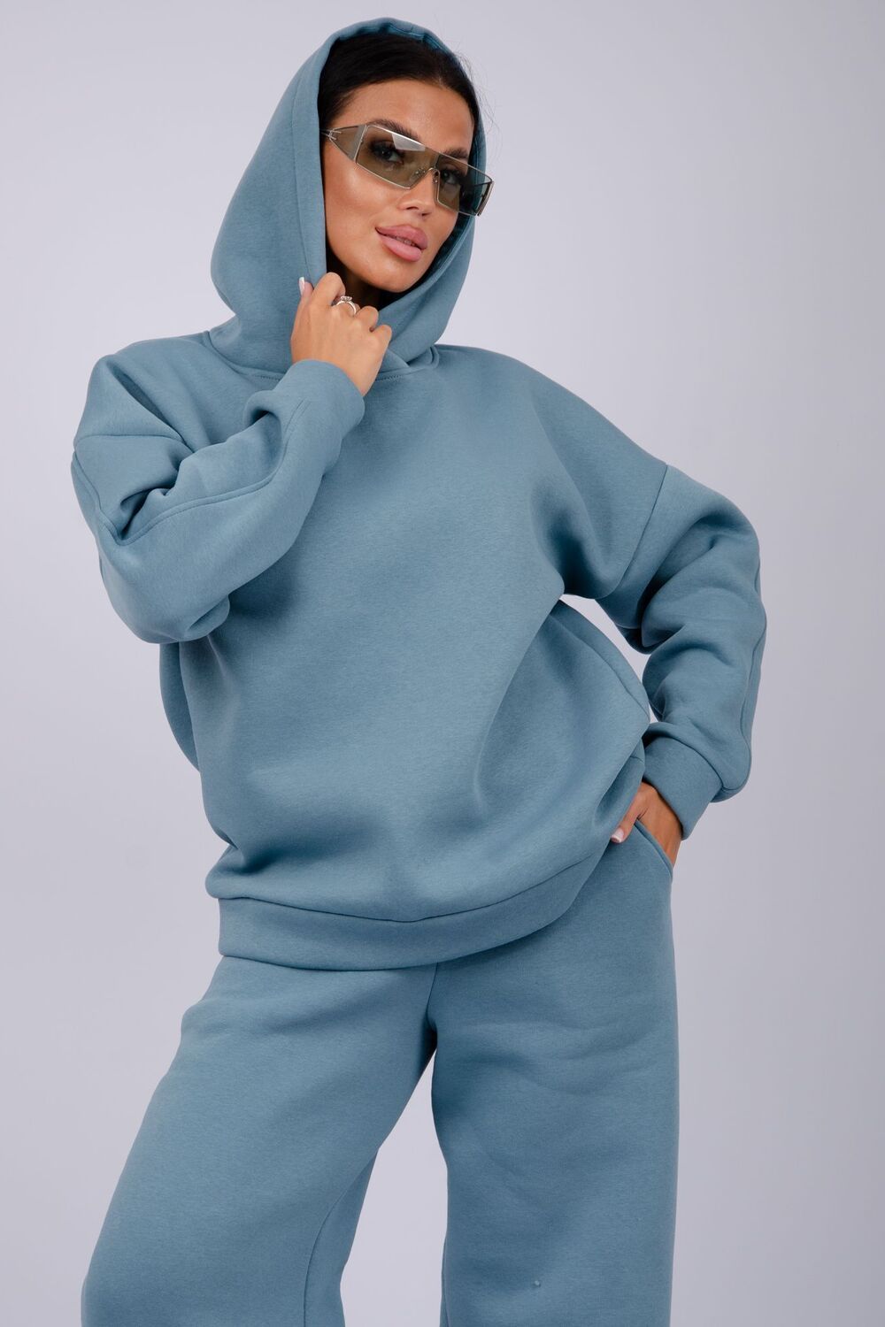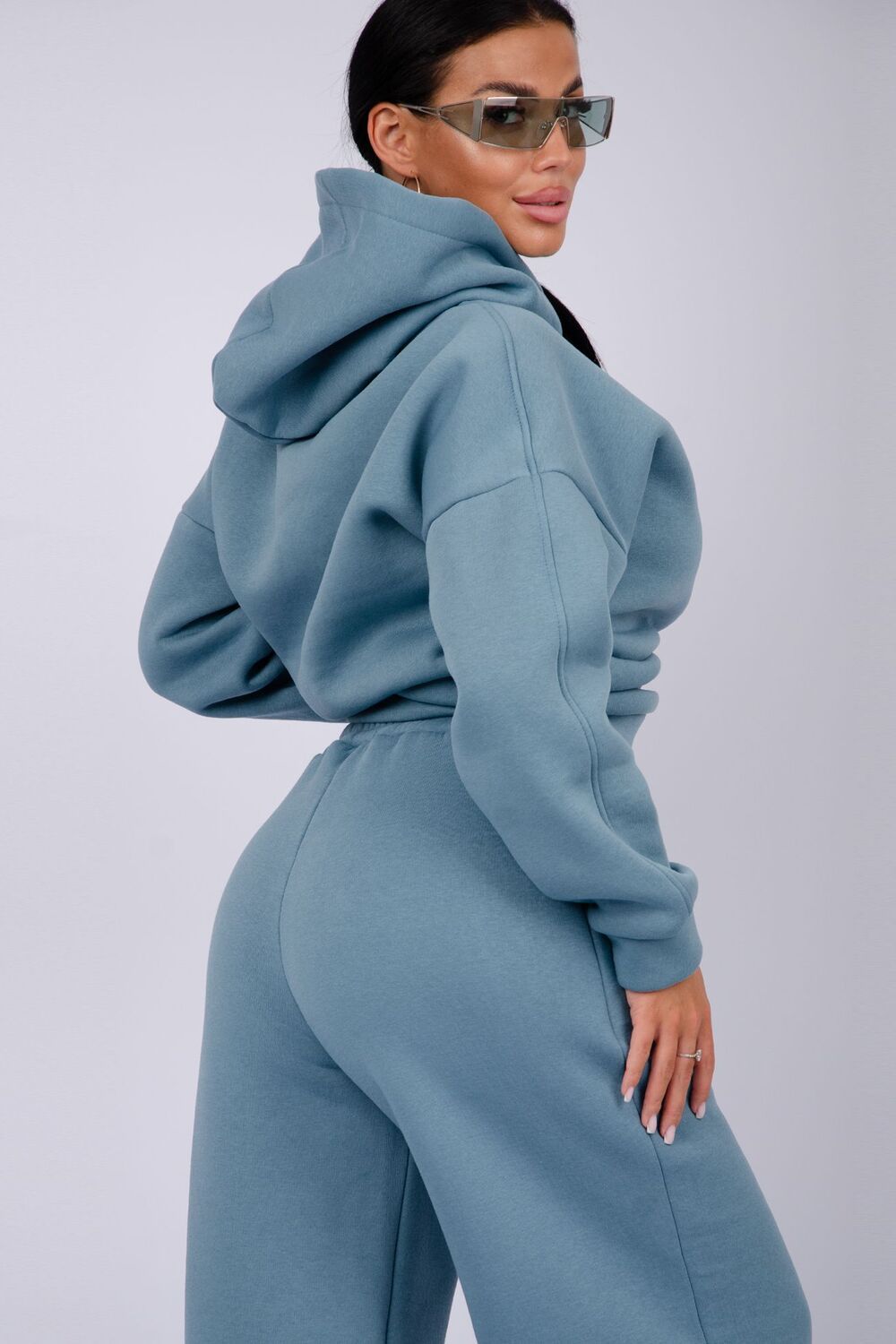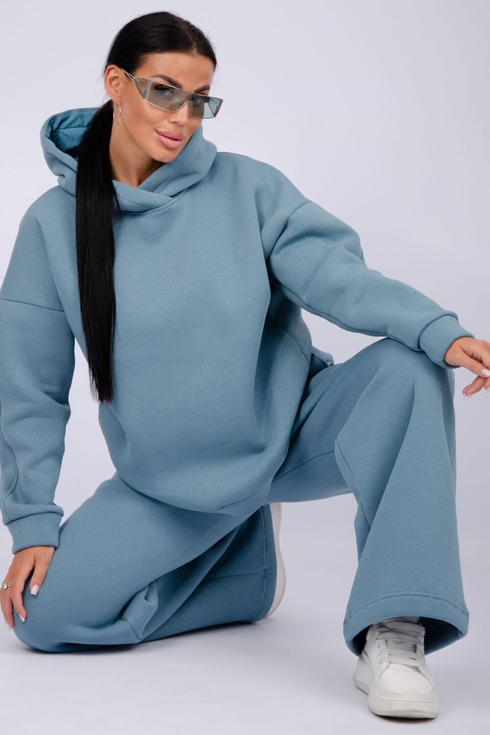 Теплый женский спортивный костюм из плотного футера, который выполнен из 3-х ниточного трикотажного полотна с начесом. Утепленное худи прямого силуэта с втачным спущенным рукавом и капюшоном, брюки палаццо на резинке свободного кроя подходит для прогулок и занятия спортом в прохладную погоду. Благодаря натуральному составу ткани, костюм прекрасно подходит для прохладной погоды, он выполнен из мягкого хлопка с лицевой стороны и с начесом внутри.
