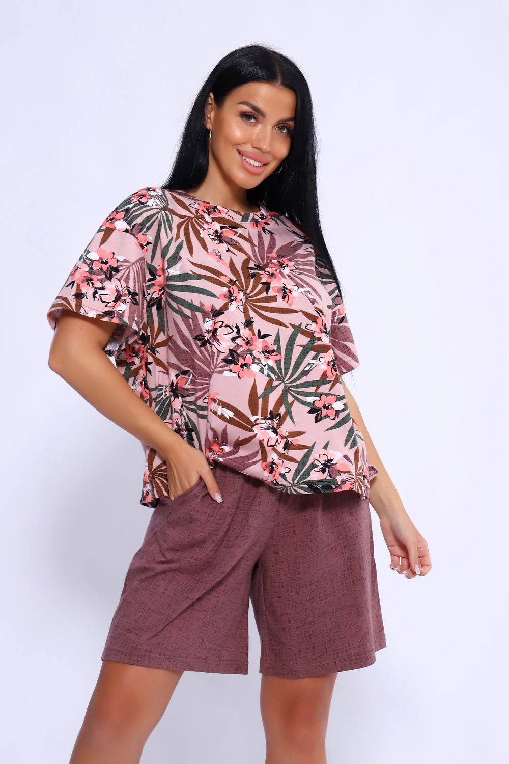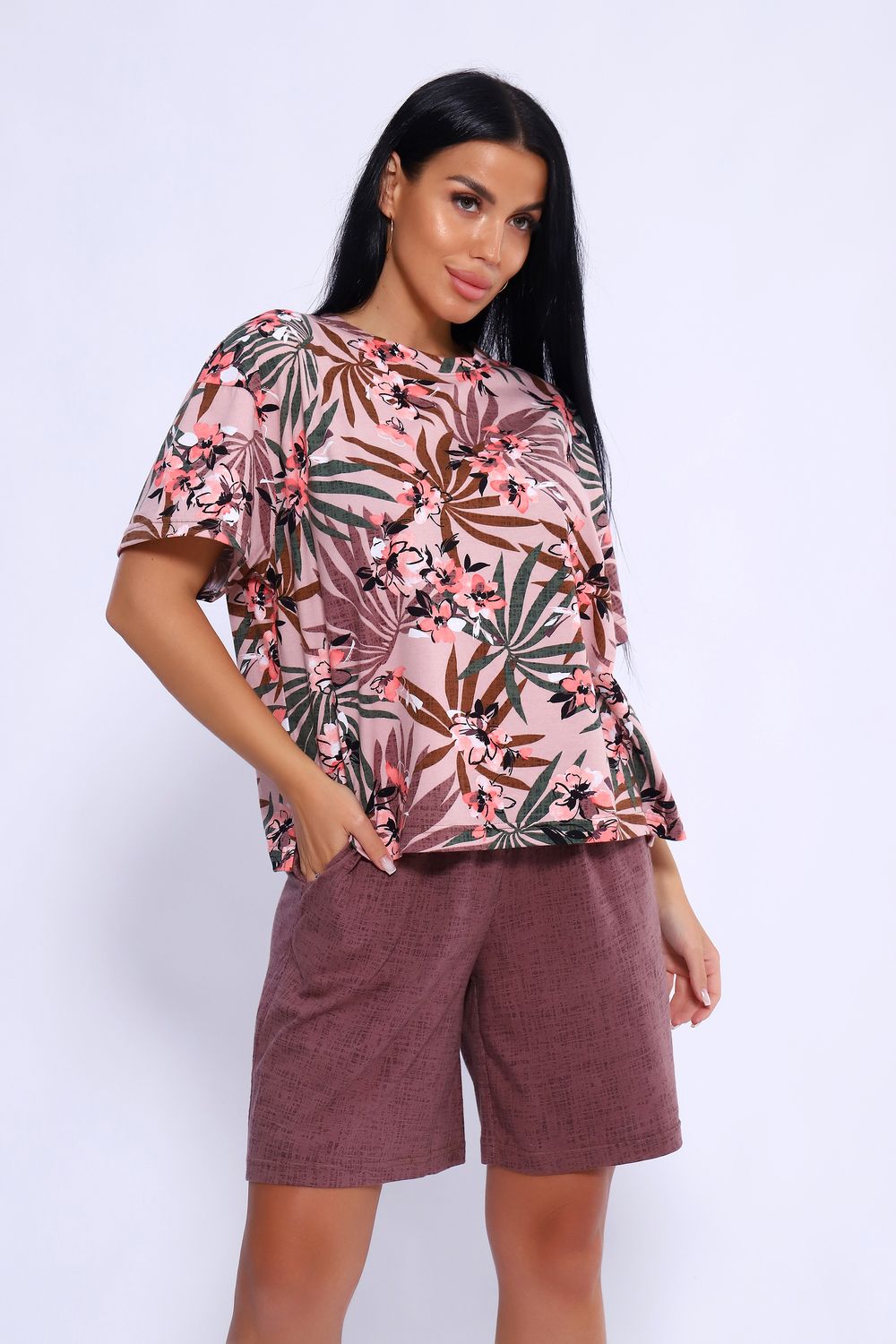 Женский домашний костюм-двойка фасона оверсайз - это стильный и очень уютный вариант, который подойдет всем без исключения. Он отлично сядет на любой тип фигуры и рост, благодаря своему свободному крою. Костюм изготовлен из высококачественного материала - кулирка (100% хлопок), который не только приятен на ощупь, но и обеспечивает комфорт во время носки благодаря своей хорошей воздухопроницаемости. Модный летний костюмчик имеет свободный крой, который не стесняет движений. Он состоит из футболки и шорт. Футболка со спущенной линией плеча и коротким рукавом, горловина круглая. Широкие шорты с эластичным поясом на резинке. Этот костюм-двойка - отличный выбор для домашнего отдыха или для летних прогулок. Он не только стильный, но и очень удобный. Так что, если вы ищете комфортный и модный вариант для своего гардероба, то этот костюм-двойка - именно то, что вам нужно!