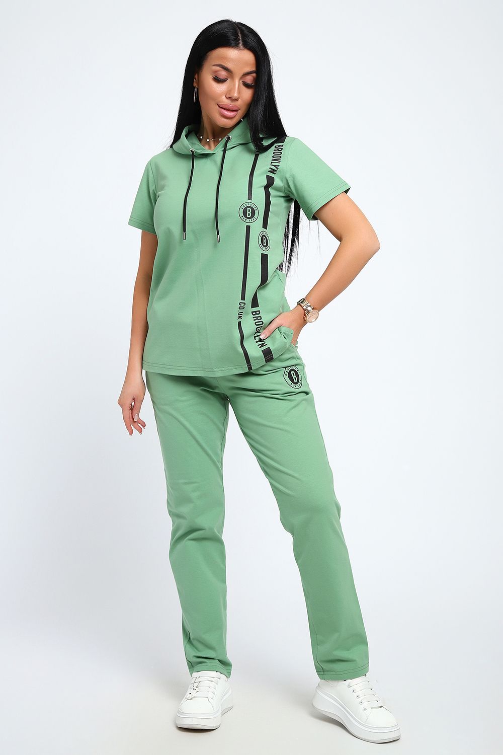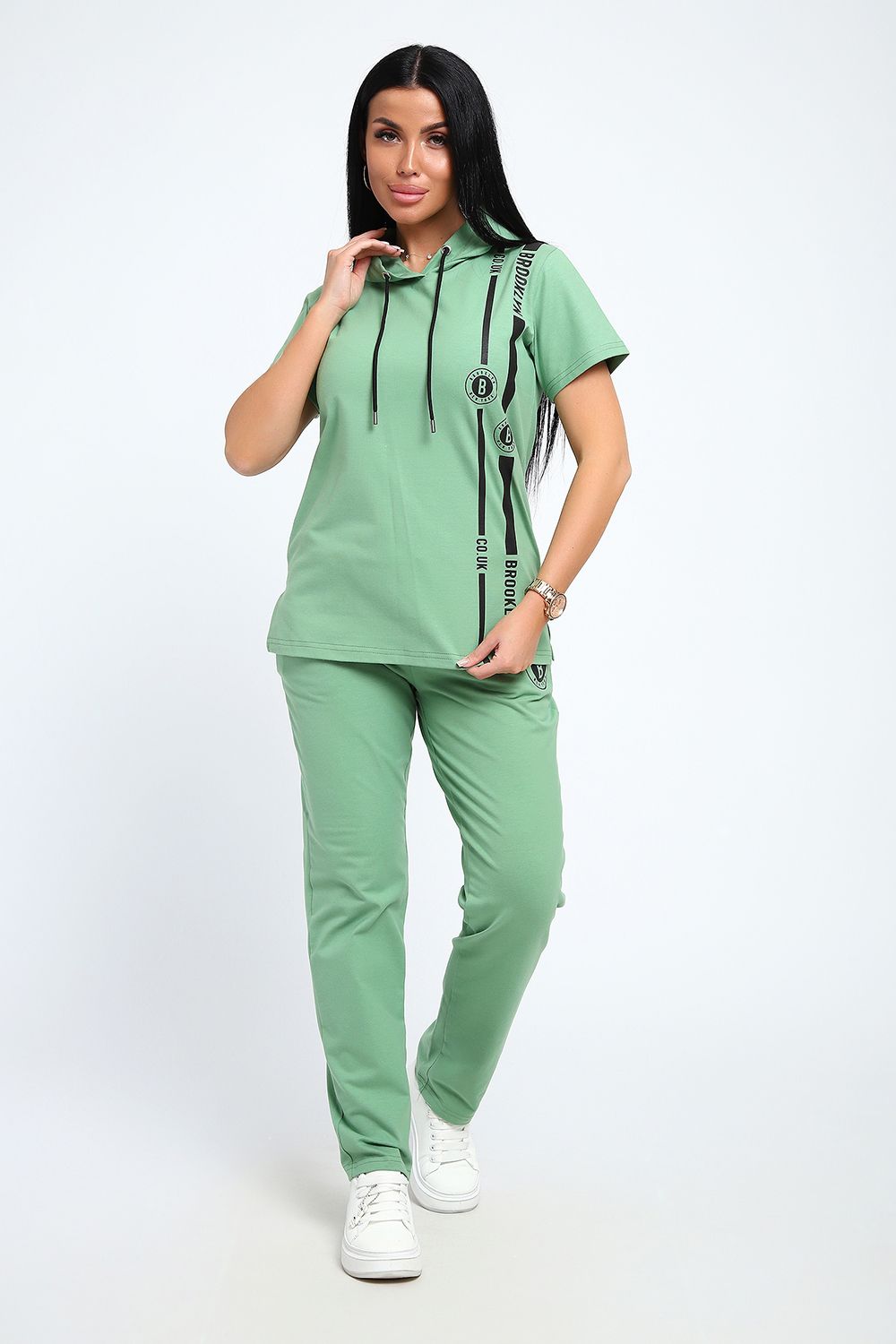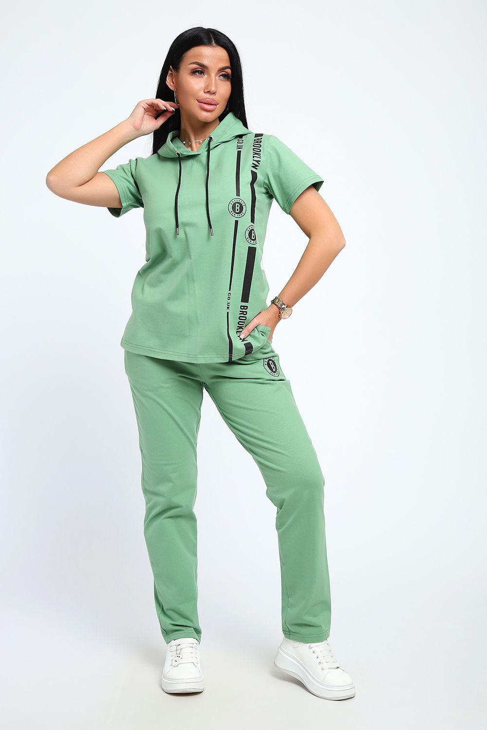 Стильный женский костюм из плотной дышащей ткани. Представлен в ярких весенне-летних расцветках, которые сумеют выделить хозяйку из толпы. Лаконичный принт на полочке кофты служит дополнительным декором. Кроме того, на кофте имеется капюшон, объем которого регулируется тонкой лентой. Этот универсальный и практичный повседневный костюм в спортивном стиле будет удобным и комфортным во многих ситуациях. Комплект отлично подойдет для спорта, бега или танцев. Каждую вещь в комплекте вполне можно использовать по отдельности. Комплект отлично подойдет для женщин любого возраста и поможет хозяйке выглядеть стильно, при этом даря чувство комфорта!