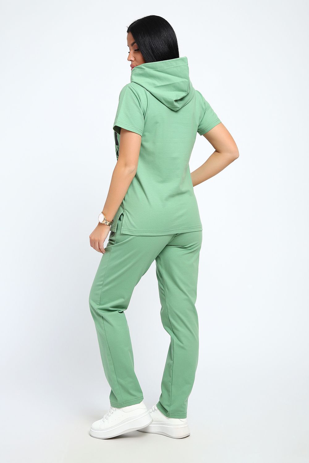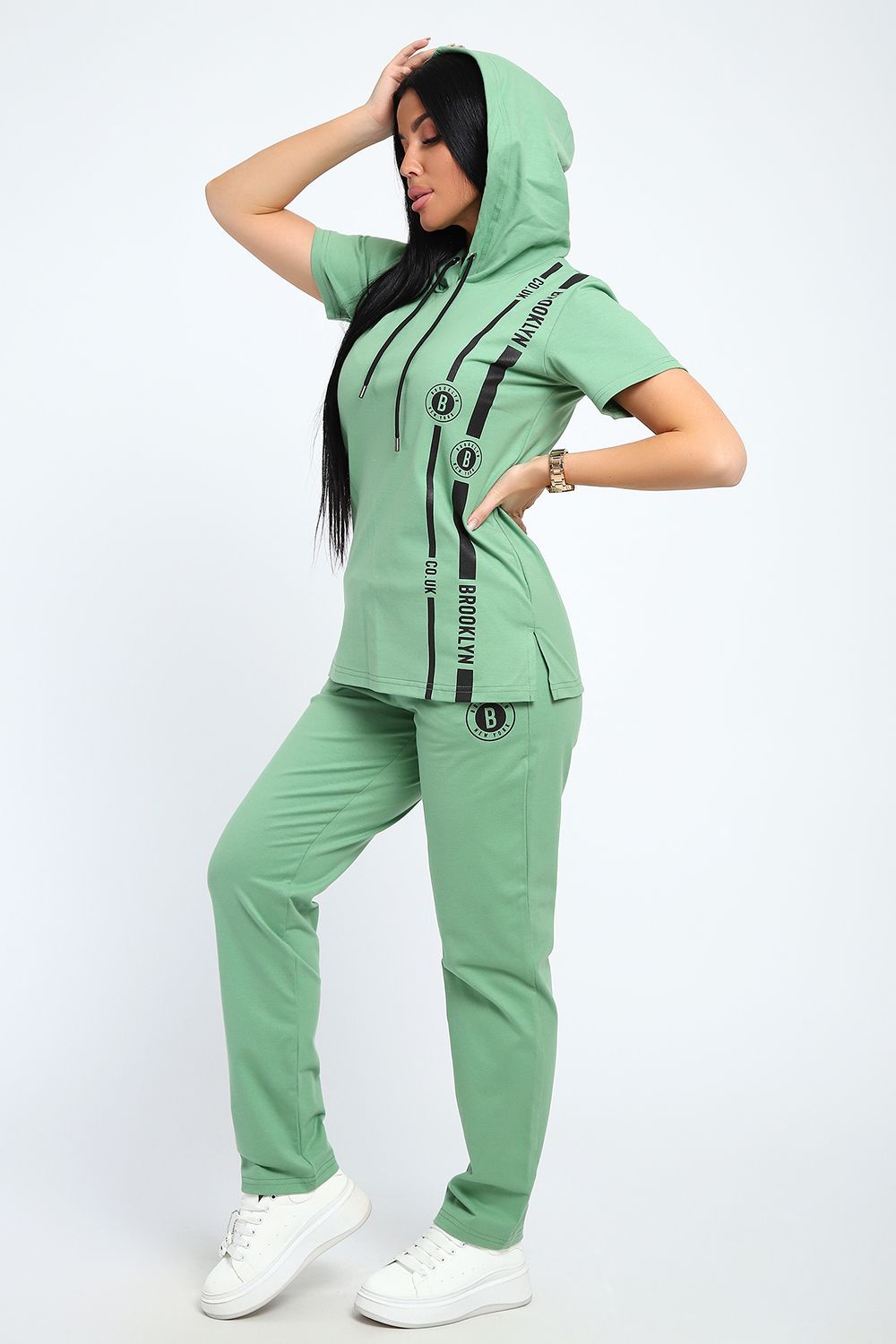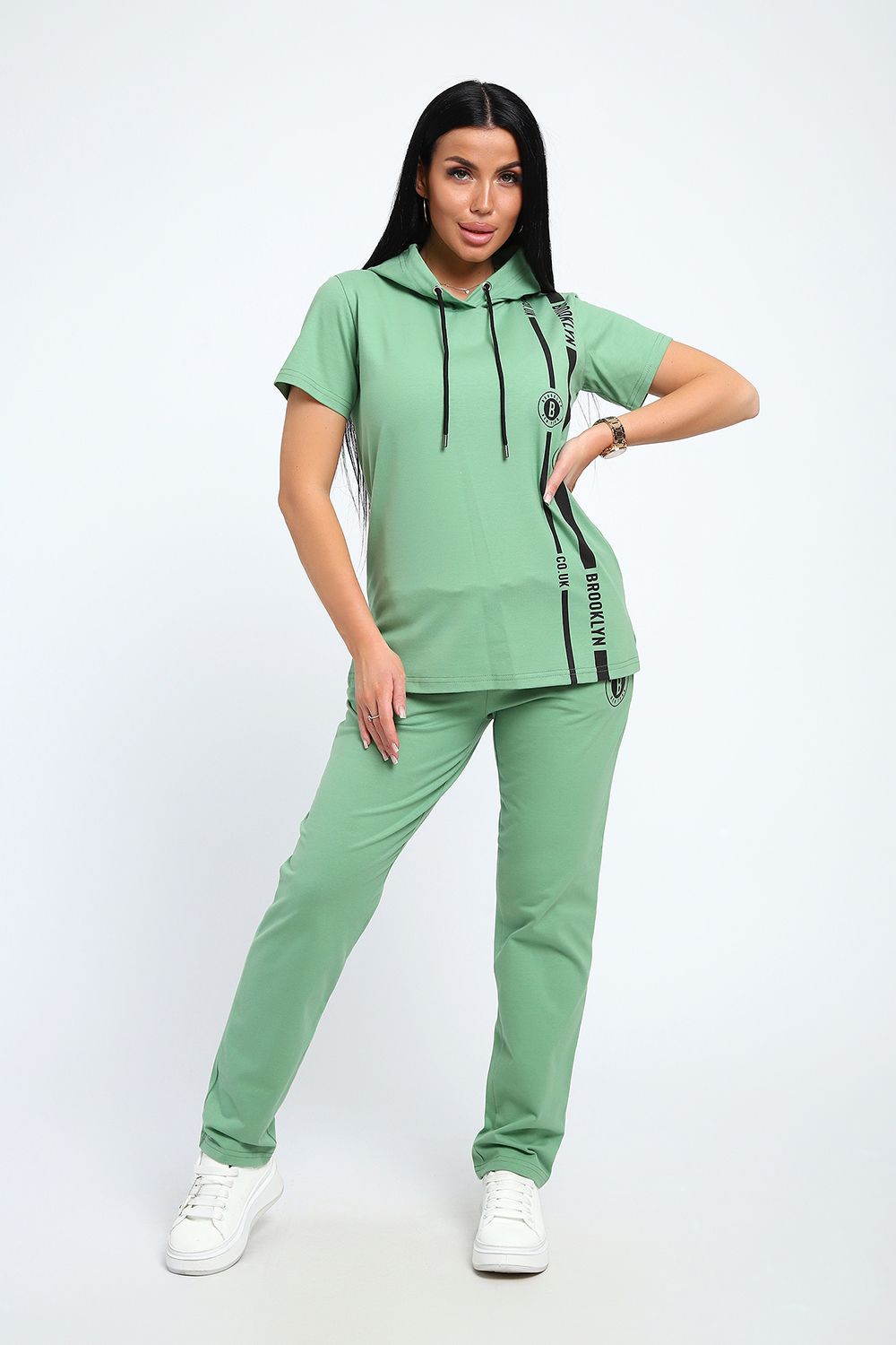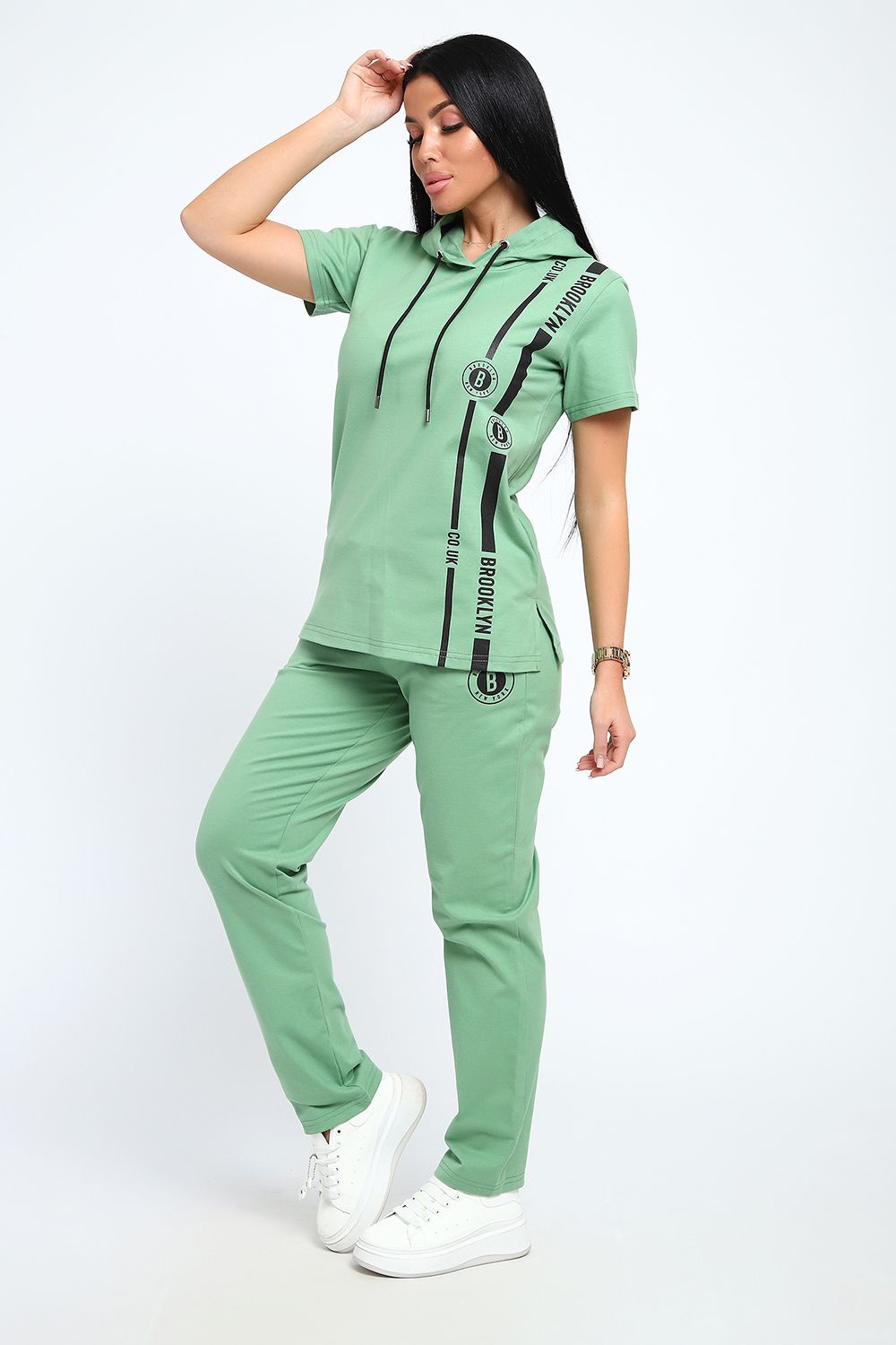 Стильный женский костюм из плотной дышащей ткани. Представлен в ярких весенне-летних расцветках, которые сумеют выделить хозяйку из толпы. Лаконичный принт на полочке кофты служит дополнительным декором. Кроме того, на кофте имеется капюшон, объем которого регулируется тонкой лентой. Этот универсальный и практичный повседневный костюм в спортивном стиле будет удобным и комфортным во многих ситуациях. Комплект отлично подойдет для спорта, бега или танцев. Каждую вещь в комплекте вполне можно использовать по отдельности. Комплект отлично подойдет для женщин любого возраста и поможет хозяйке выглядеть стильно, при этом даря чувство комфорта!