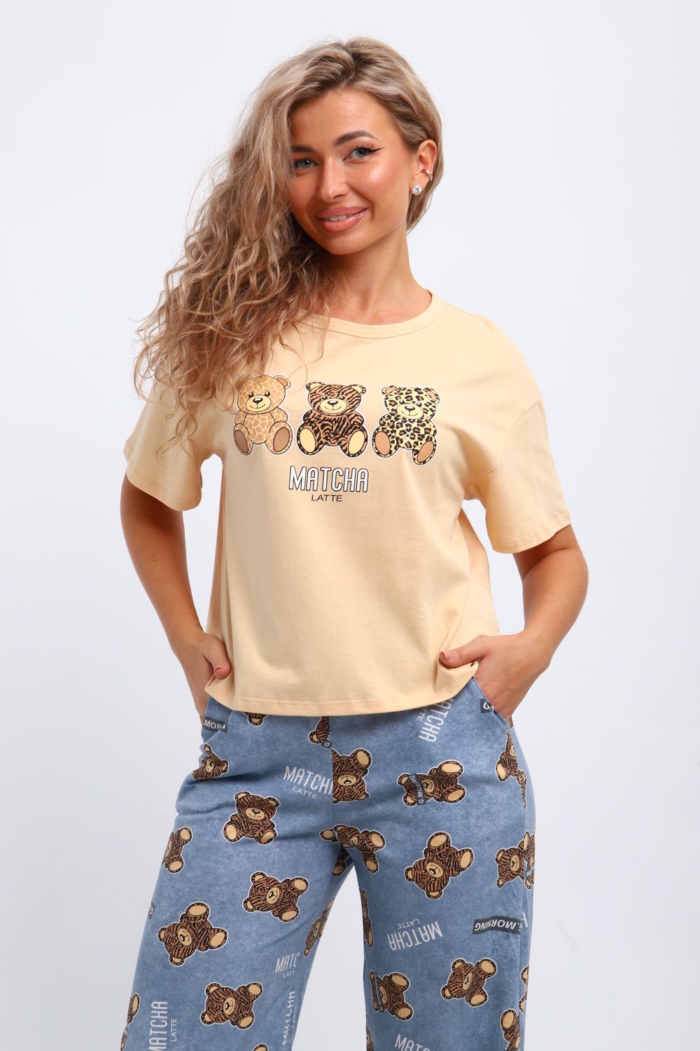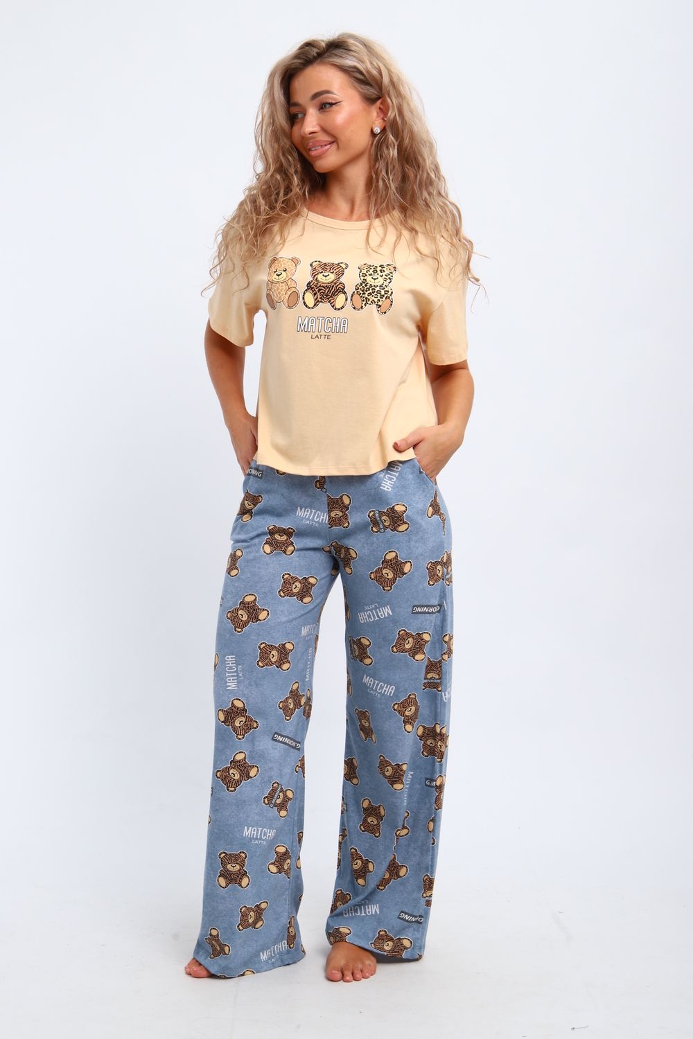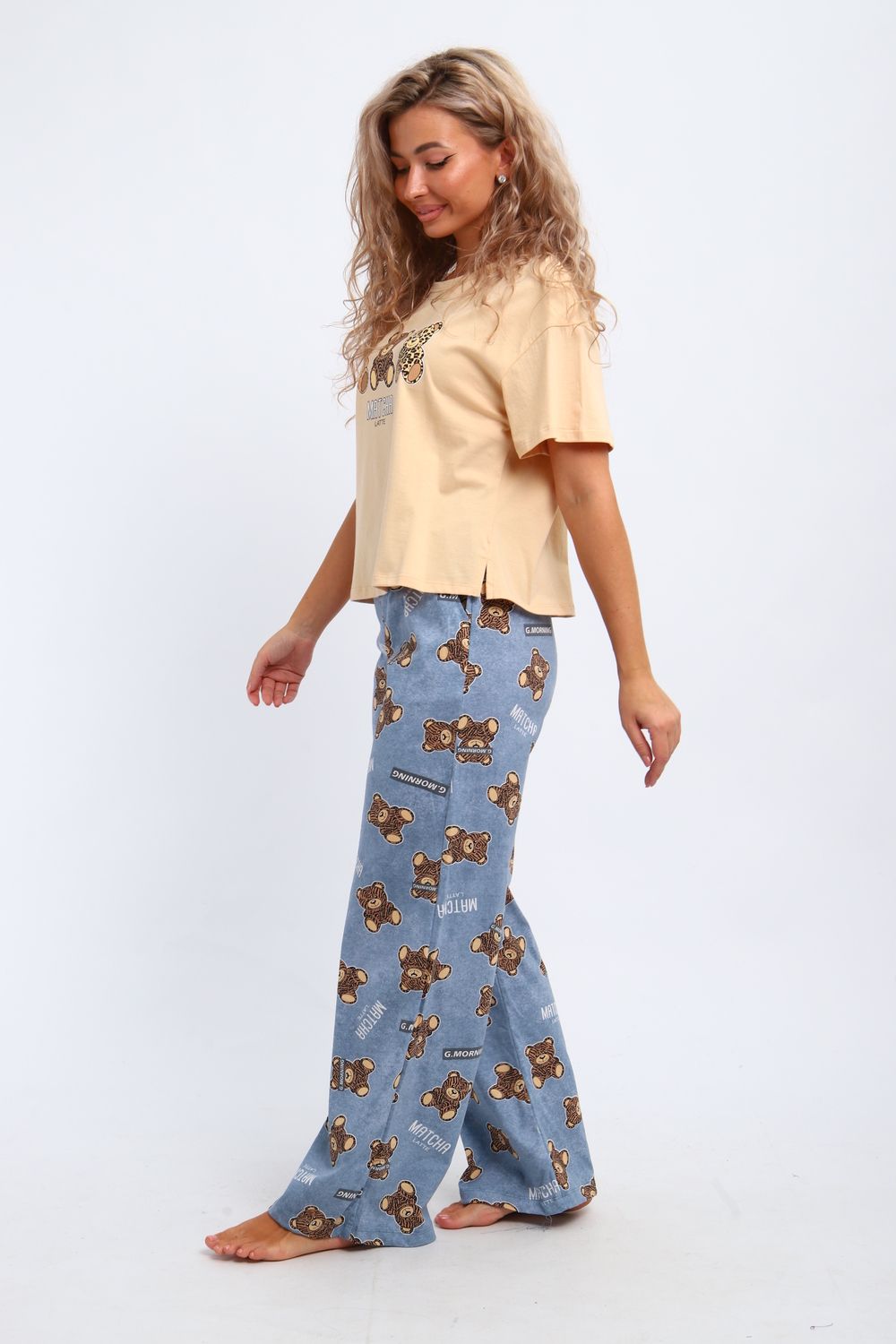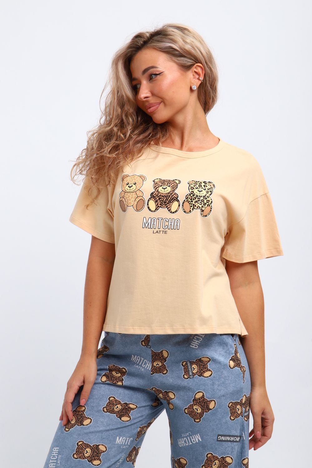 Костюм домашний арт. КД-00-007 - бежевый/медведь-тигр