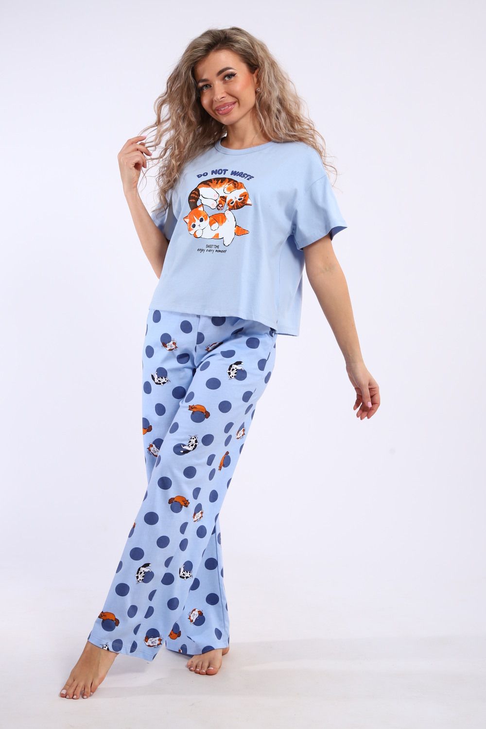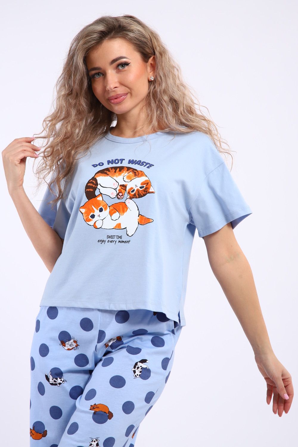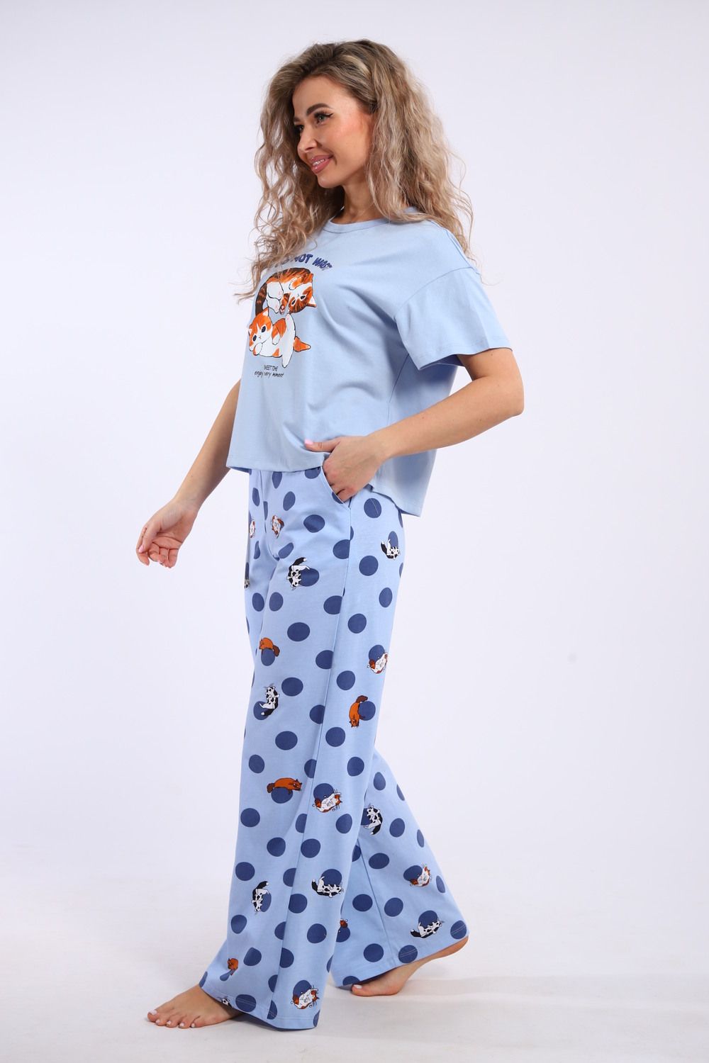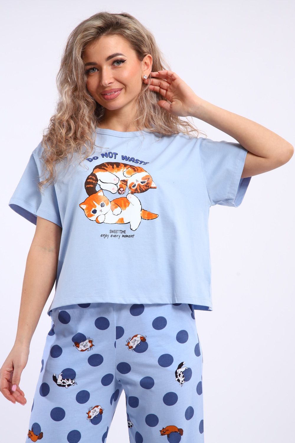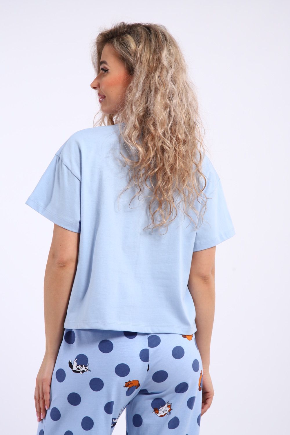 Костюм домашний арт. КД-00-007 - голубой/котята-горошки