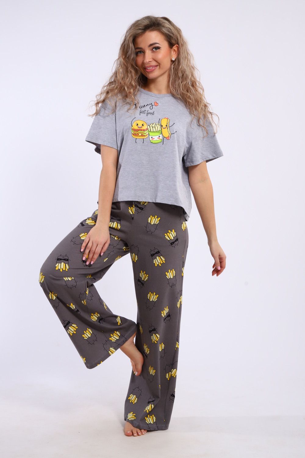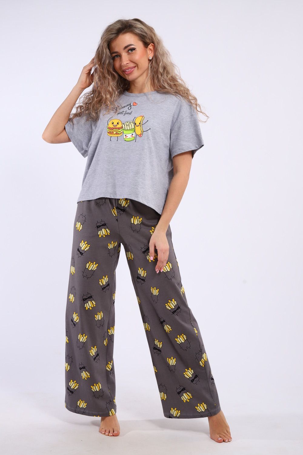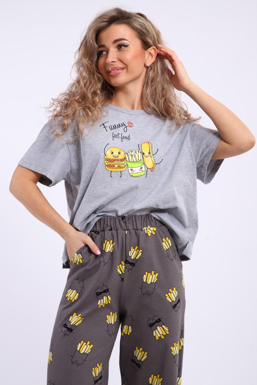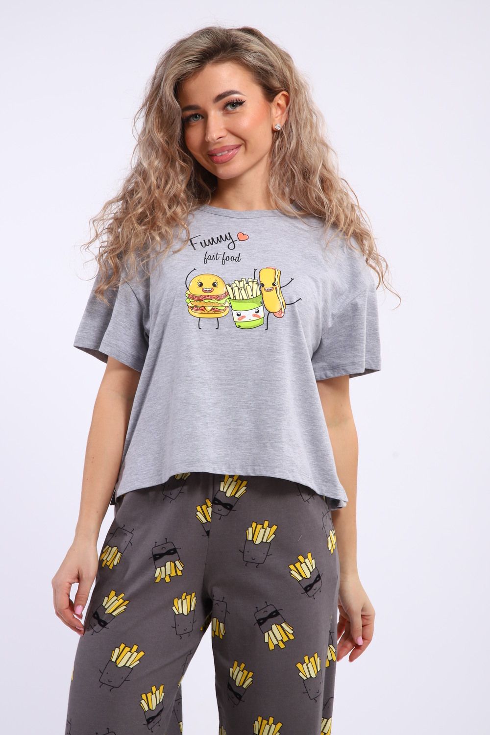 Костюм домашний арт. КД-00-007 - серый меланж/картошка фри