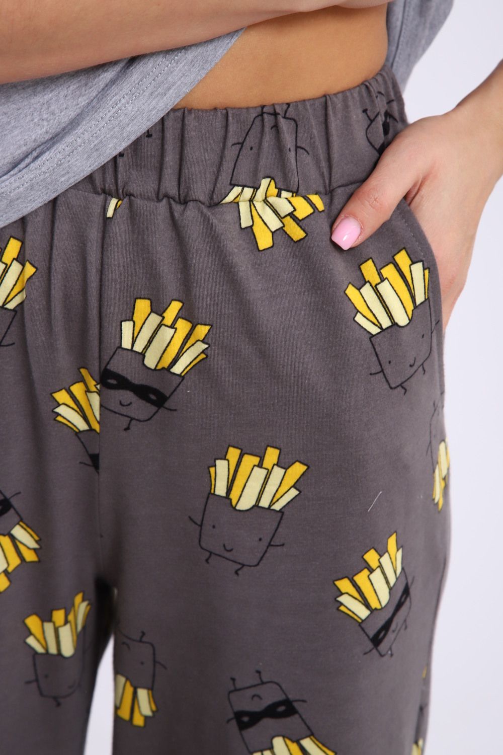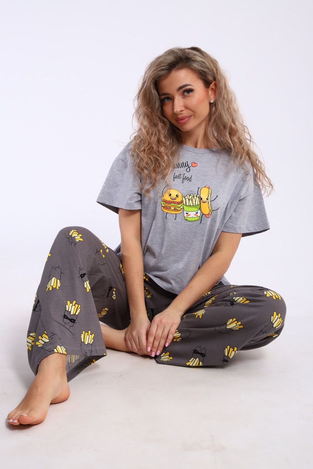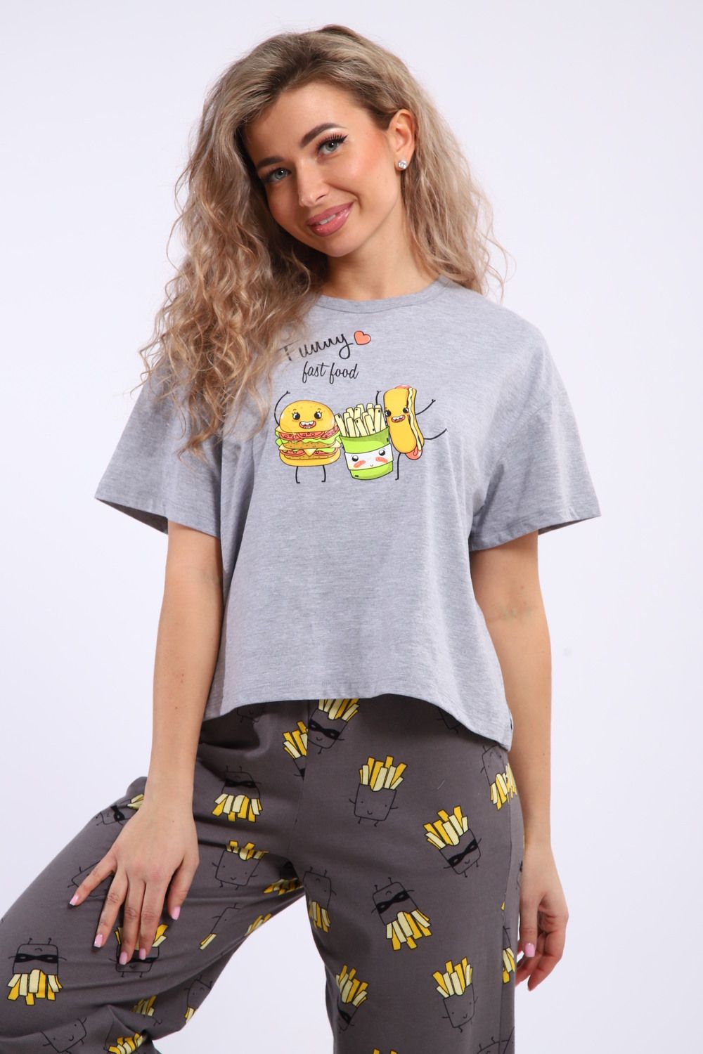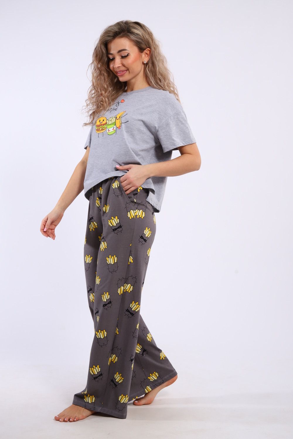 Костюм домашний арт. КД-00-007 - серый меланж/картошка фри