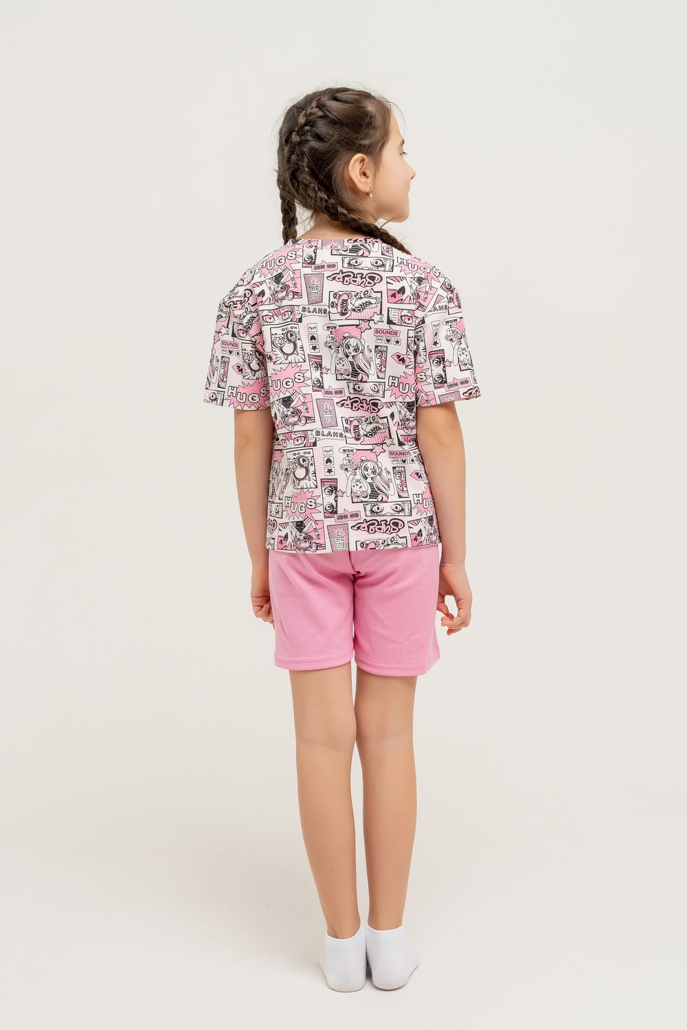 Представляем Вашему вниманию стильный домашний костюм для девочки в аниме-стиле, идеальный выбор для уютных вечеров дома или времяпрепровождения с друзьями. Этот комплект включает в себя комфортную футболку и шорты, выполненные из мягкого и приятного на ощупь материала, обеспечивающего отличную посадку и свободу движений. Уникальный дизайн с аниме-расцветками и яркими принтами порадует любого маленького фаната мультфильмов и комиксов.
