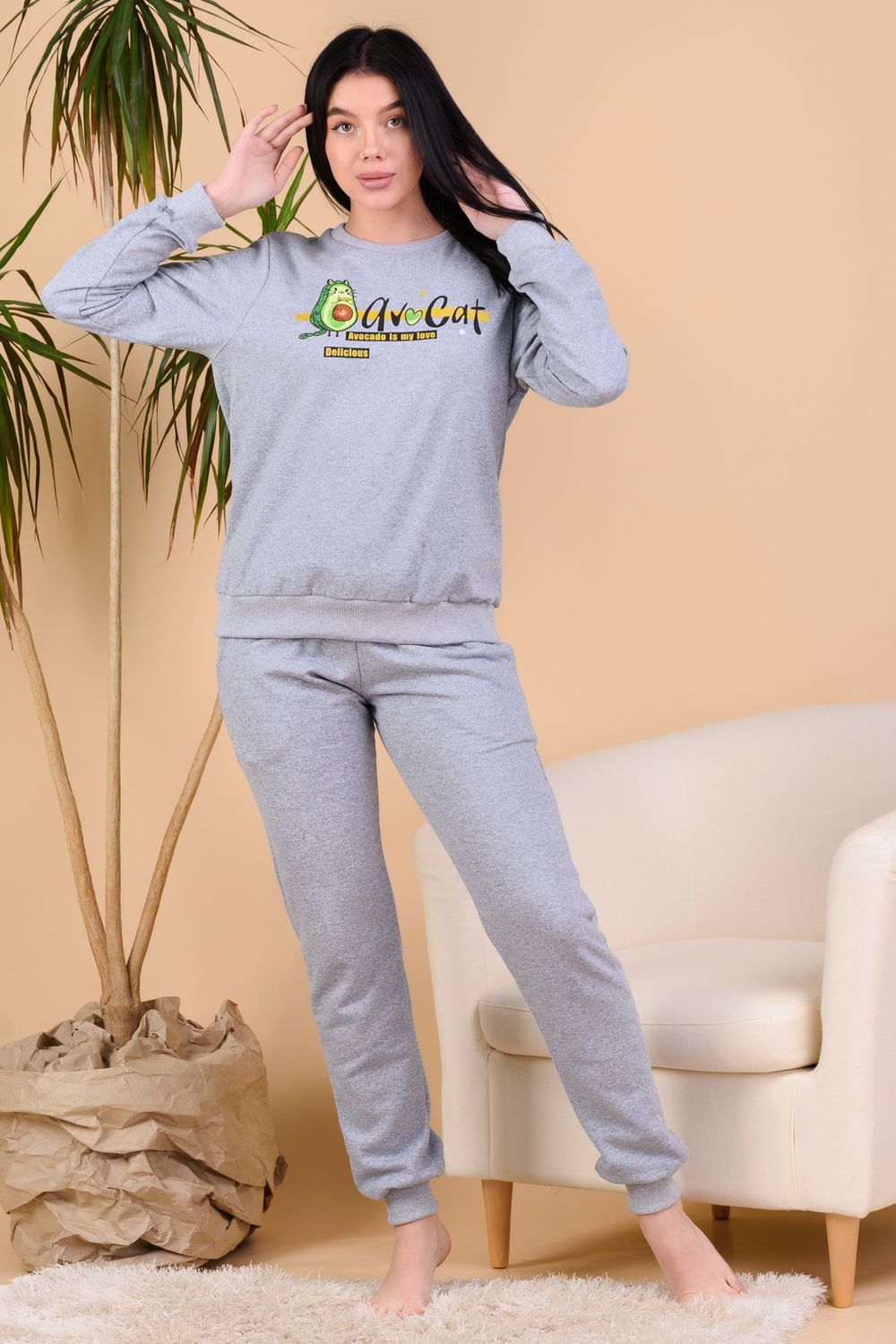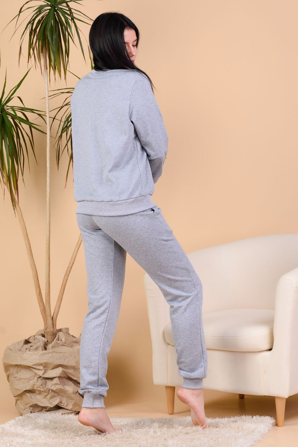 Костюм домашний из тёплого футера с начёсом, состоящий из свитшота и брюк с карманами. Стильный и привлекательный. Дома стоит одеваться красиво, ведь на нас смотрят близкие и любимые люди. Отличный вариант тёплой удобной домашней одежды. Свободный крой. Манжеты и горловина выполнены из качественной ткани кашкорсе. Благодаря в наличии состава 20% п/э ткань не будет деформироваться, поэтому костюм легко примет любую форму. В нём удобно заниматься домашней работой или просто читать книгу в кресле.